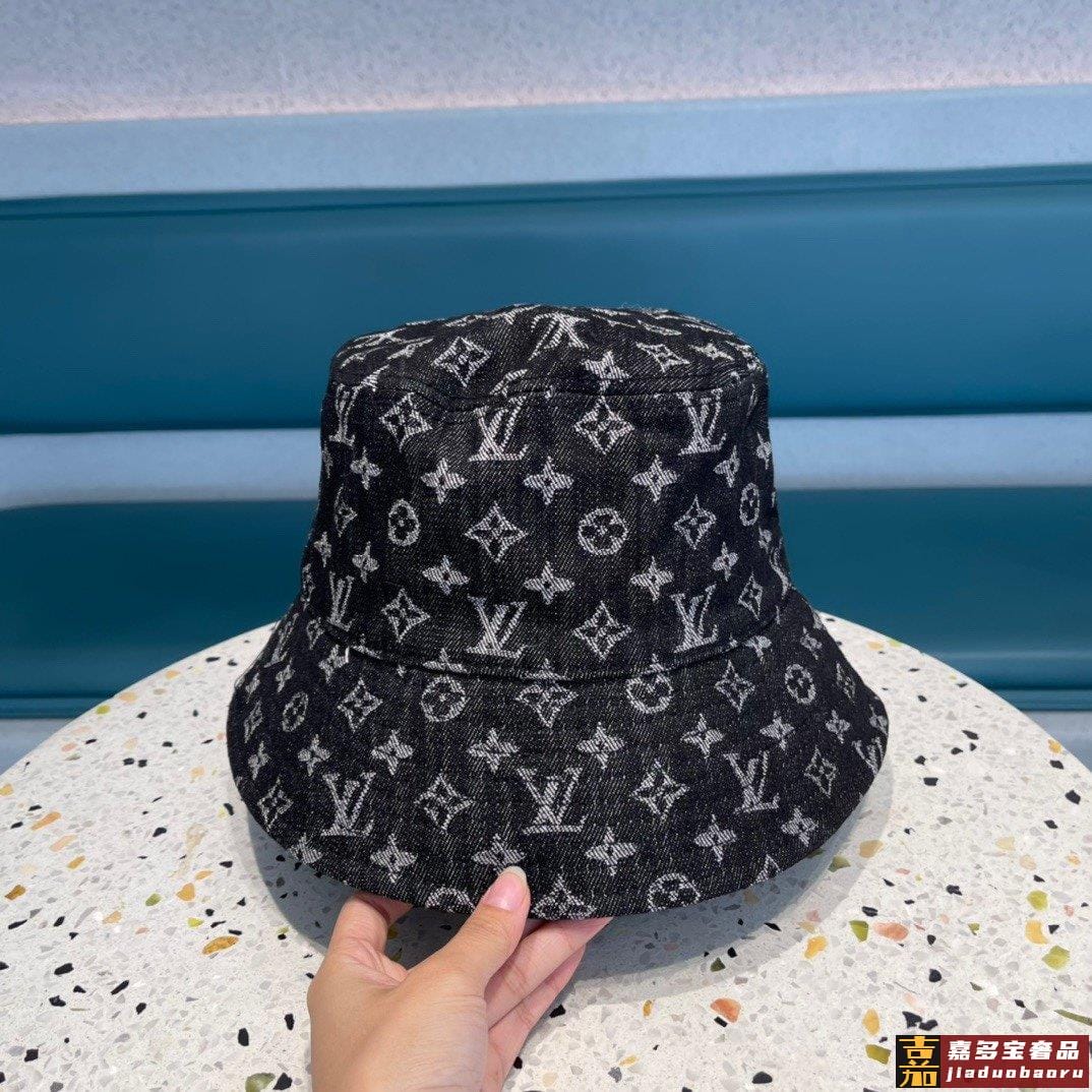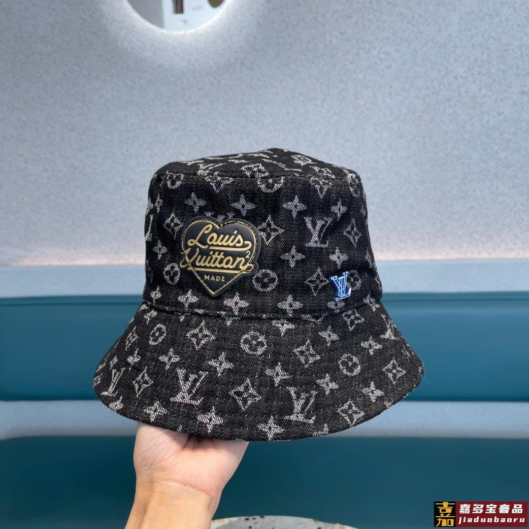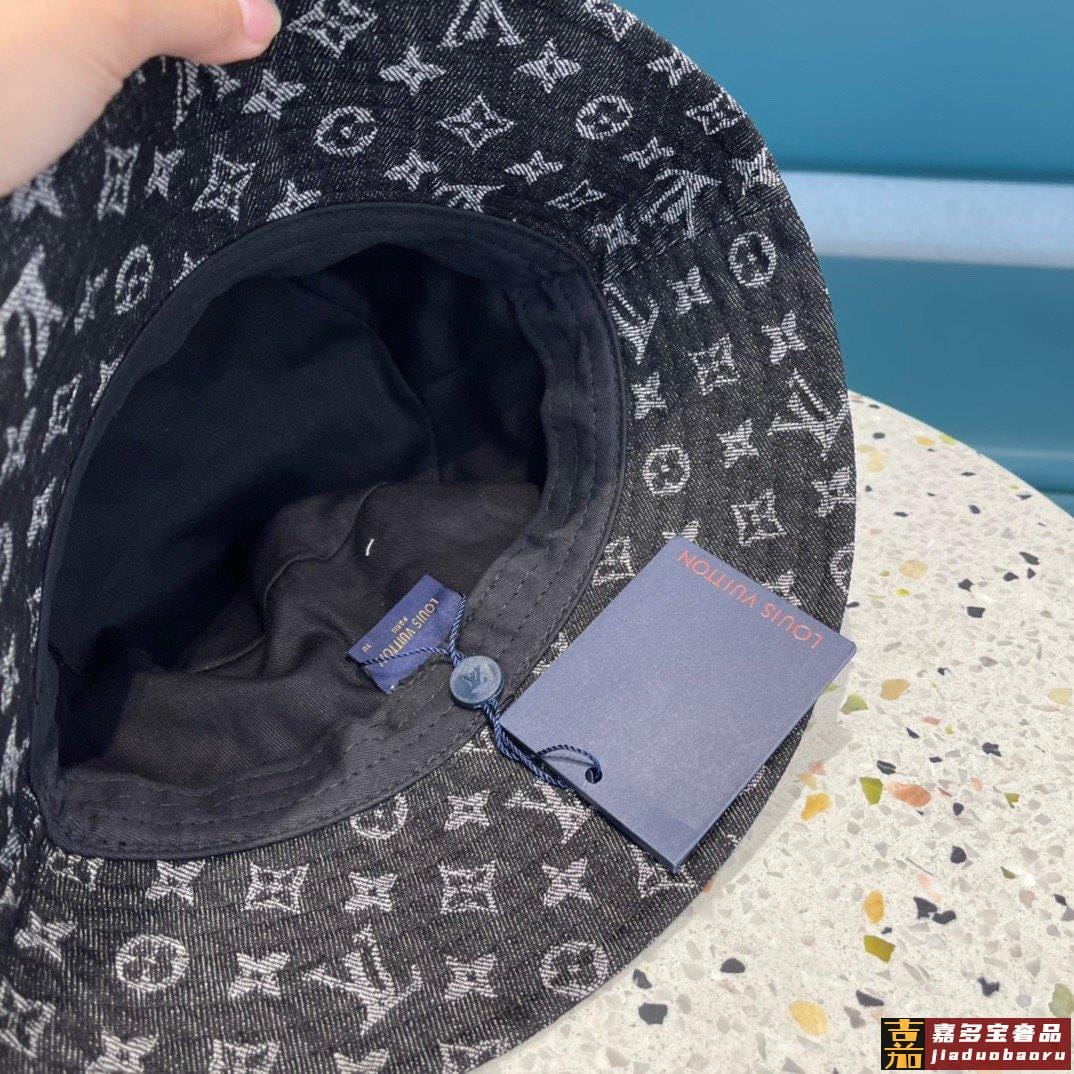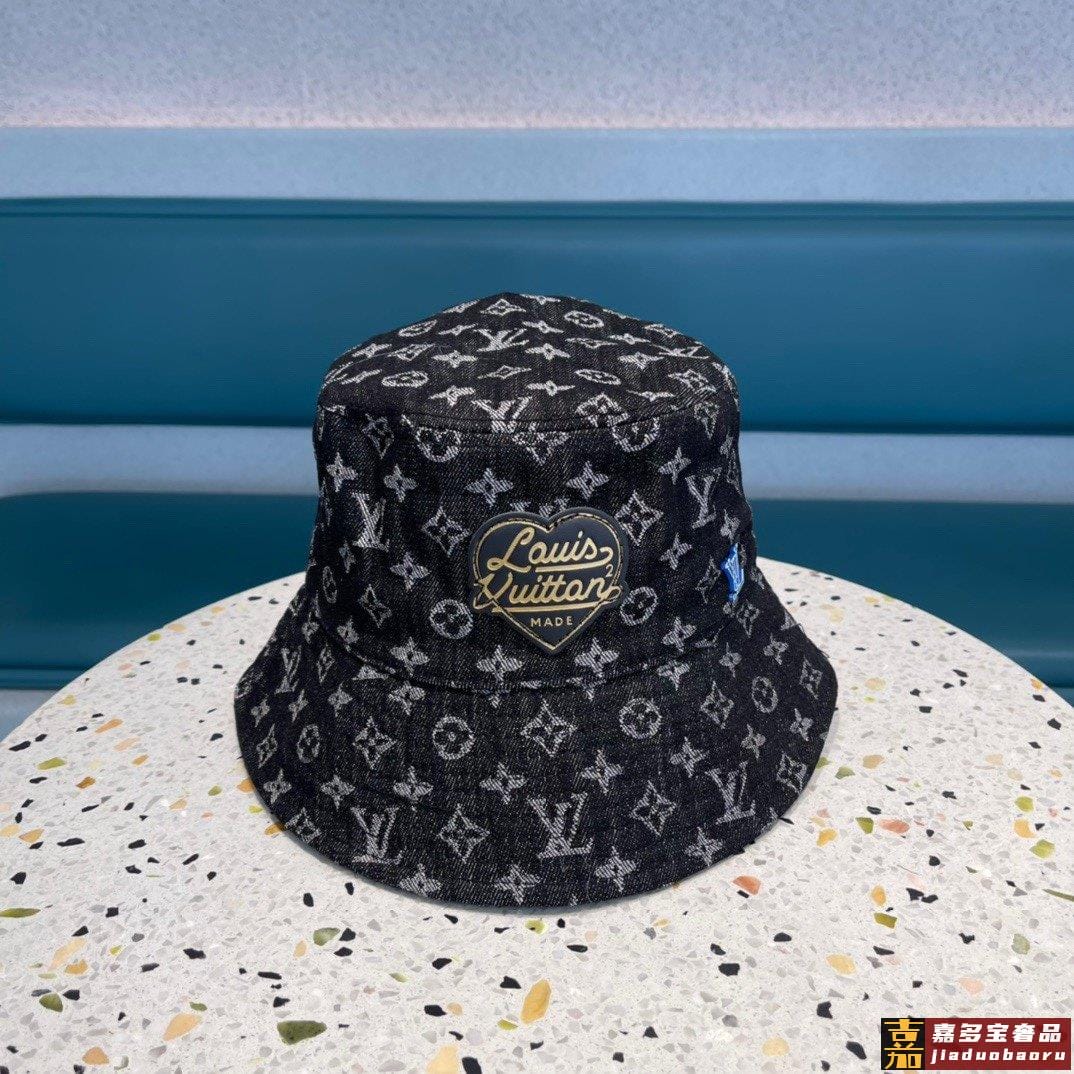 专柜新款路易威登家皮质渔夫帽简单大方男女通用遮阳帽