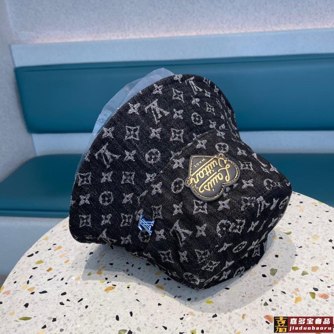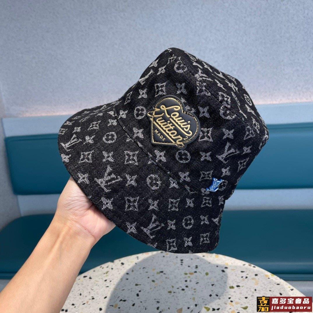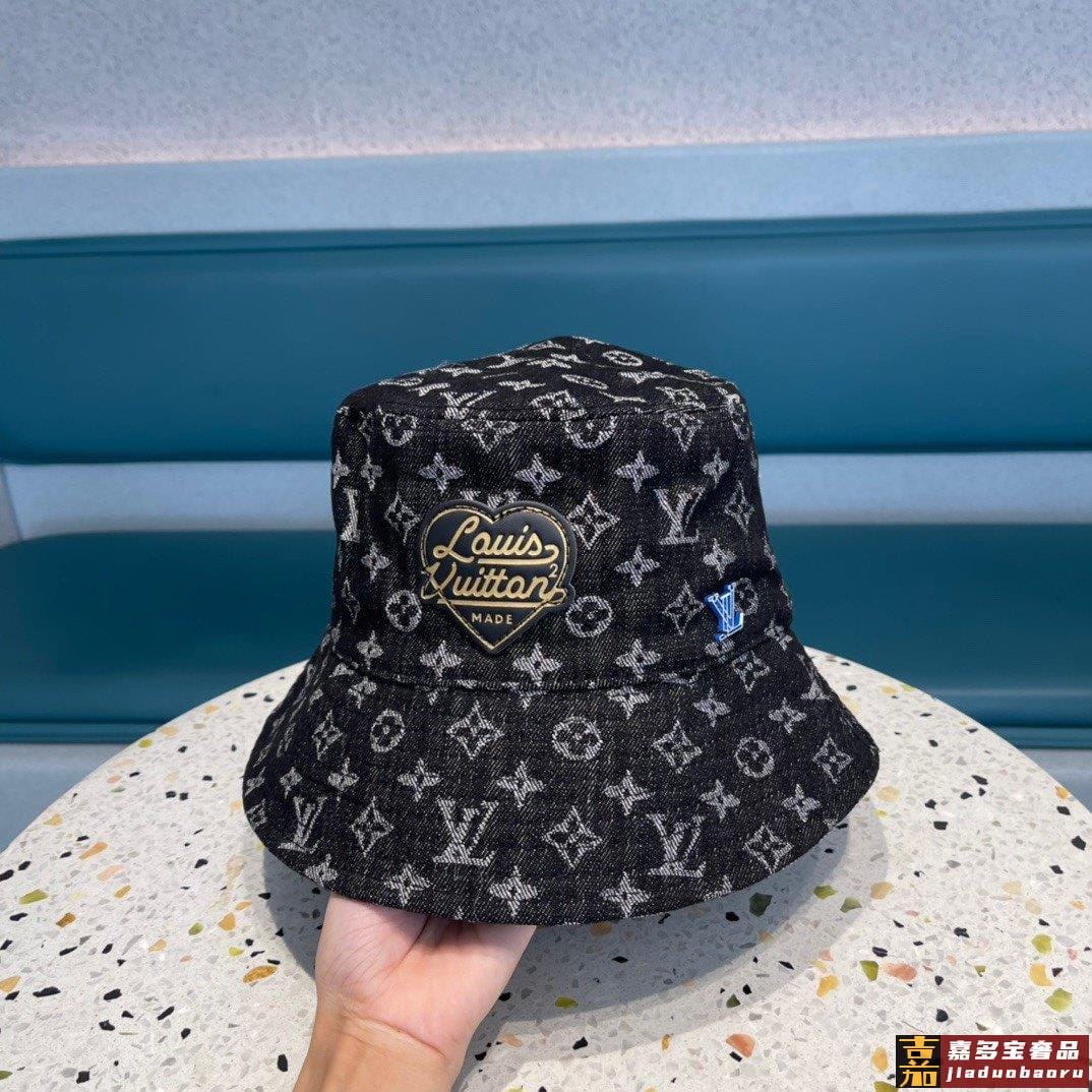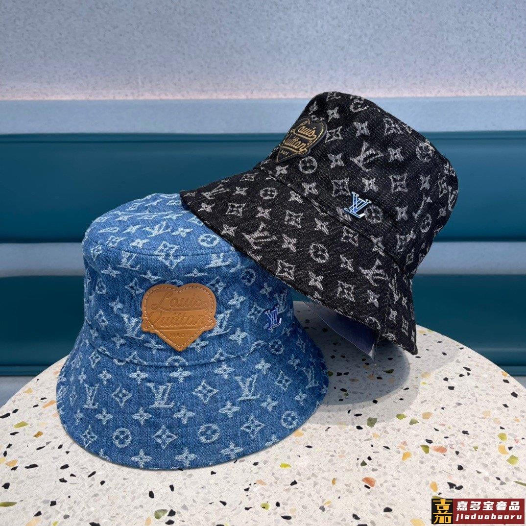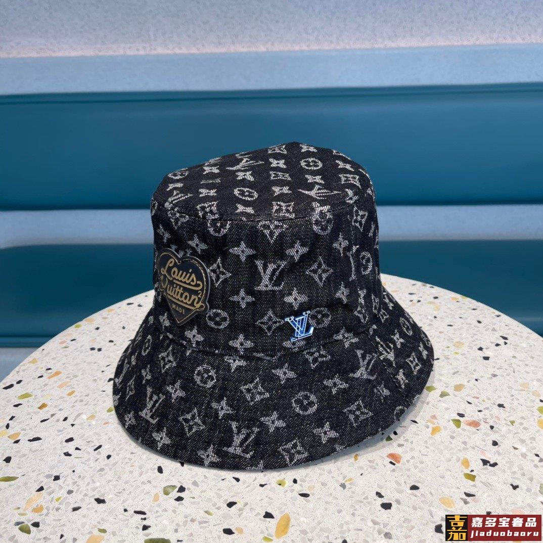 专柜新款路易威登家皮质渔夫帽简单大方男女通用遮阳帽