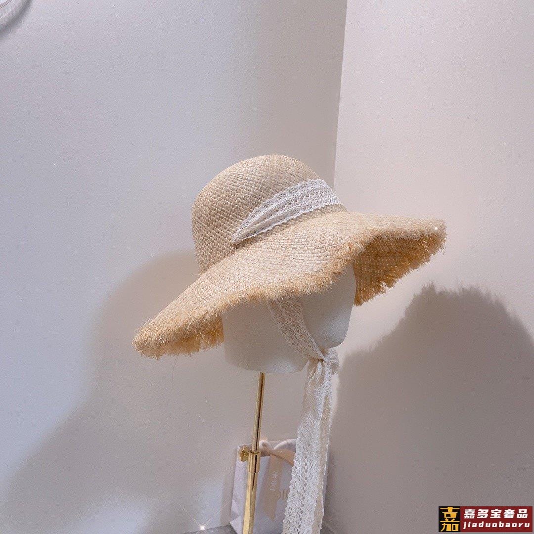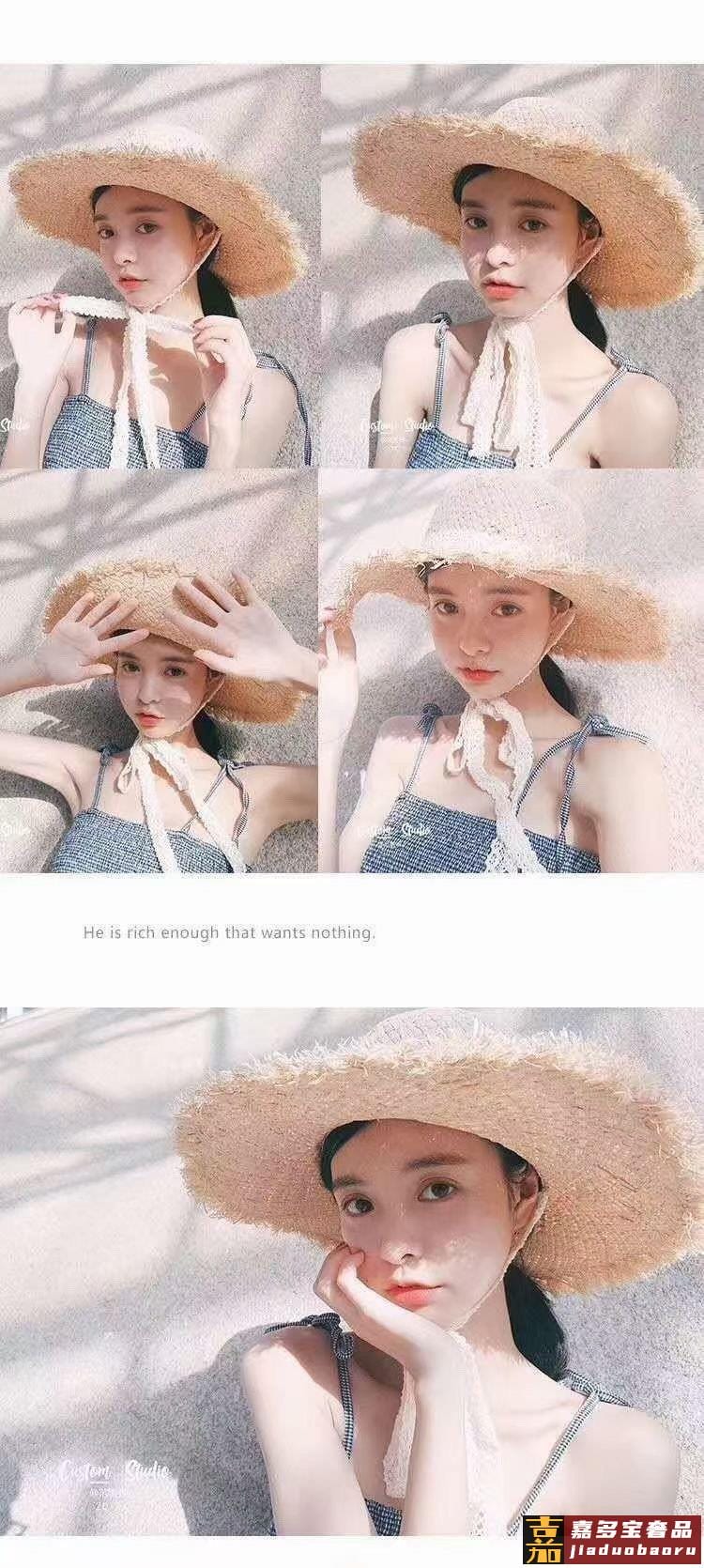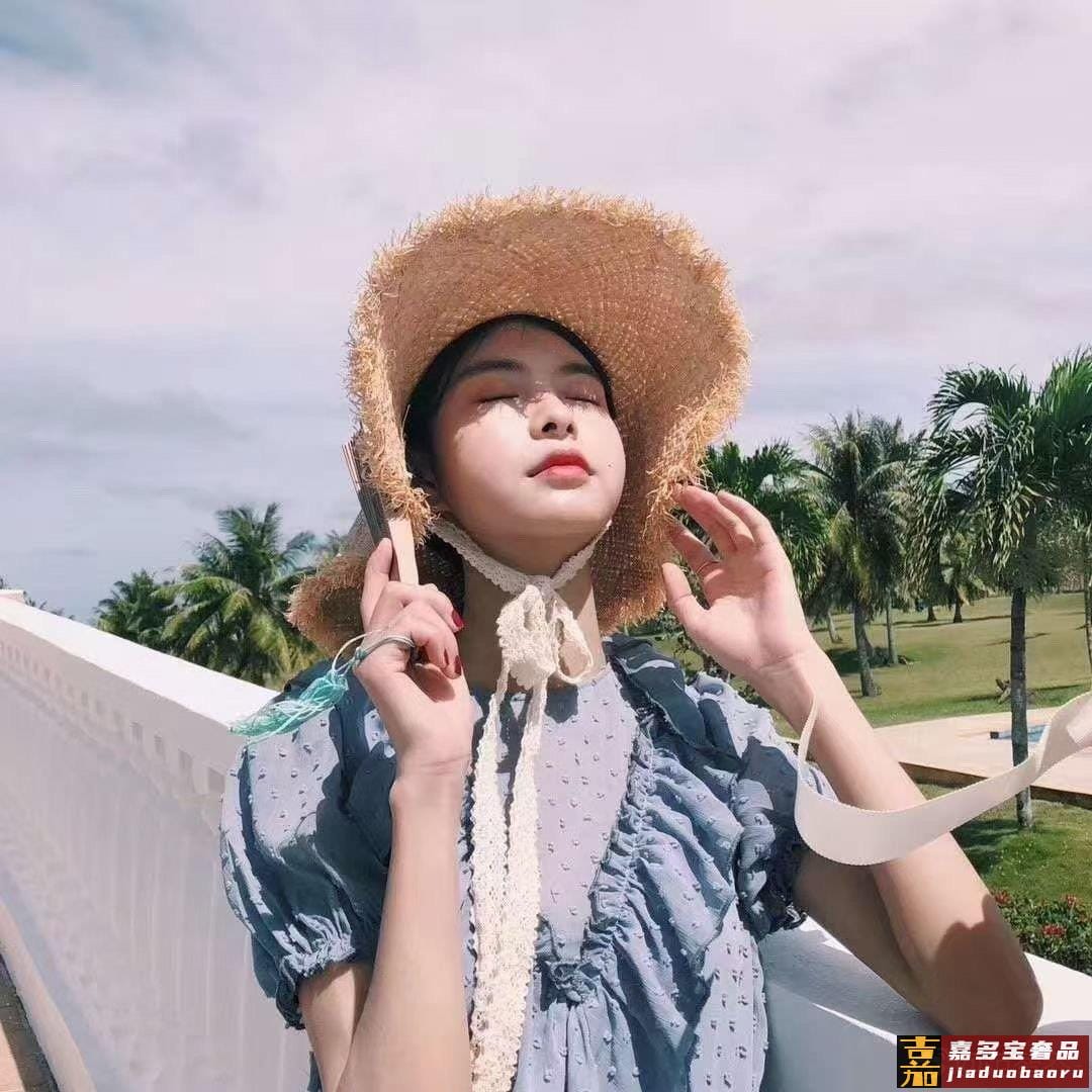 香奶奶新款拉菲草花边带草帽拉菲草编织散边草帽米色织带可自由飘