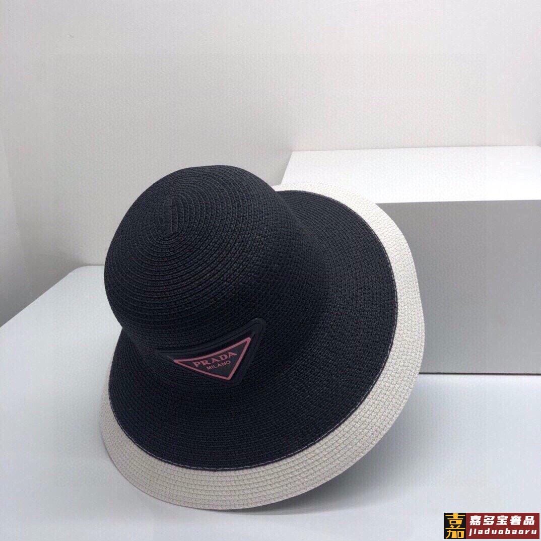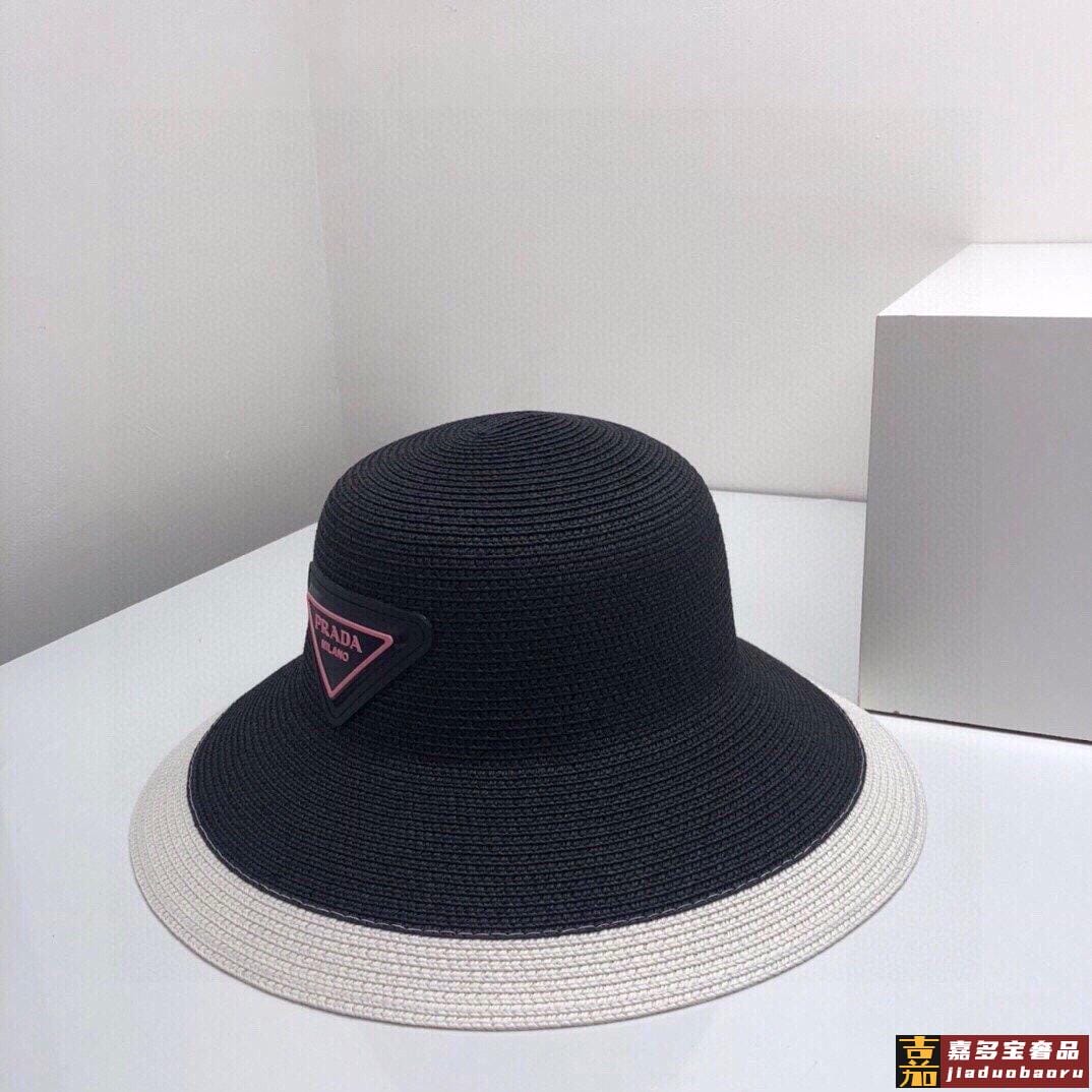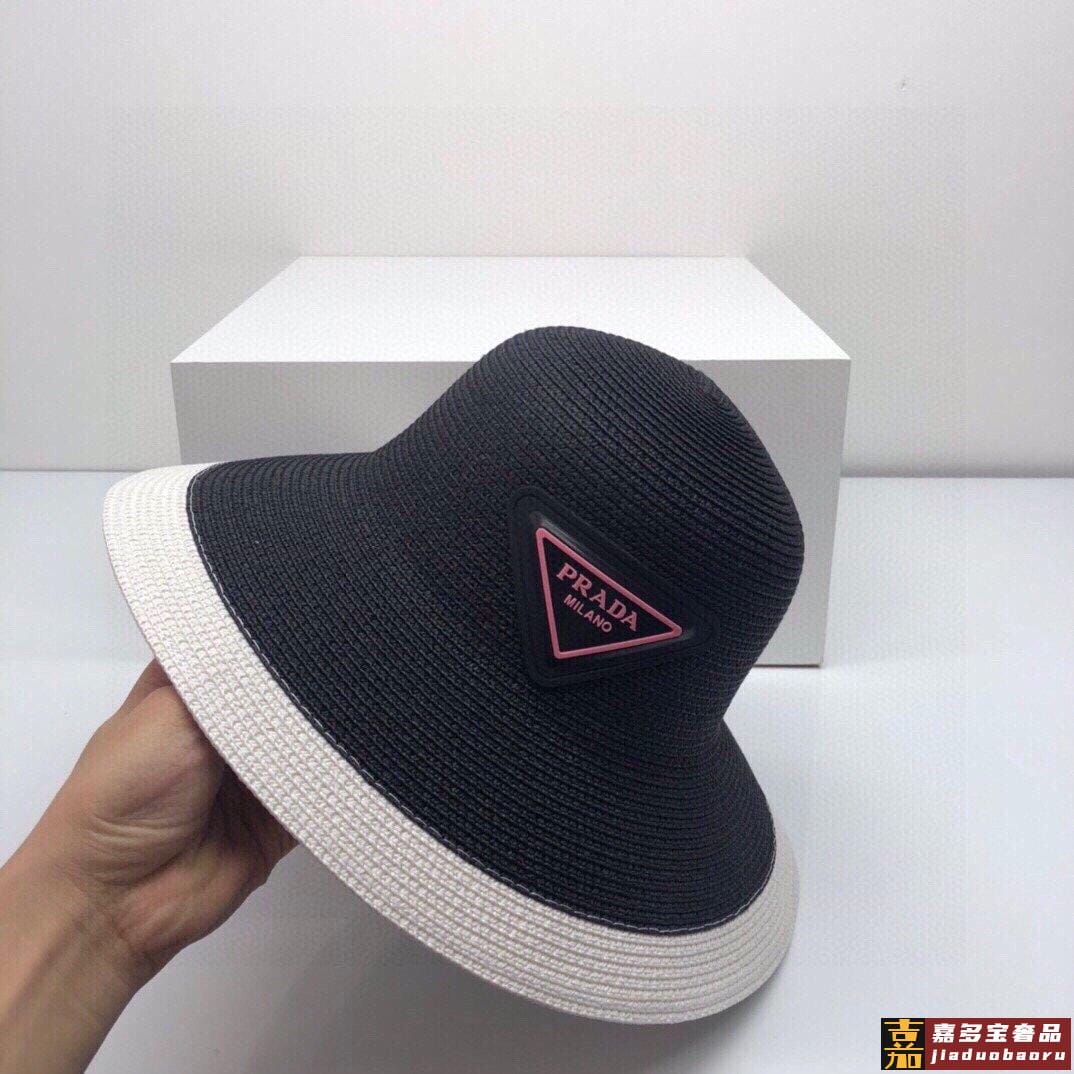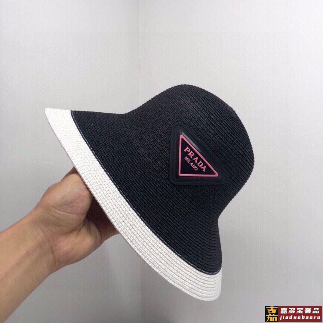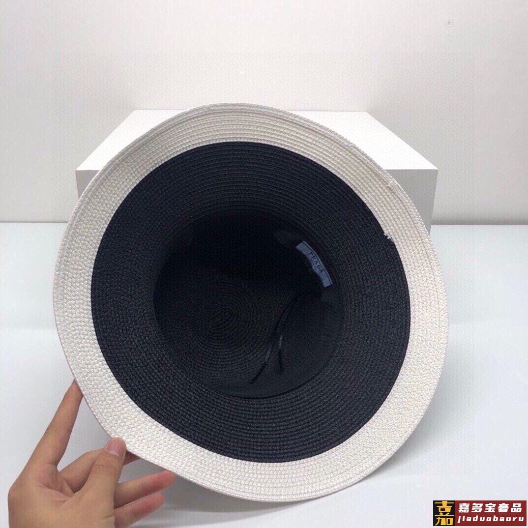 普拉达大帽檐长假必备新款草编遮阳草帽盆帽沙滩风简约大方百搭单