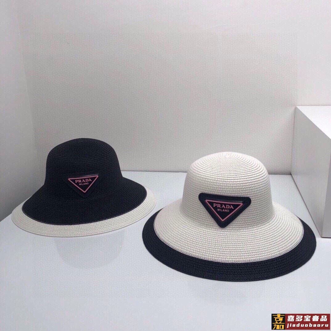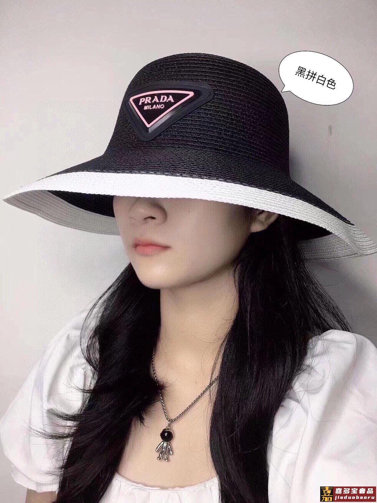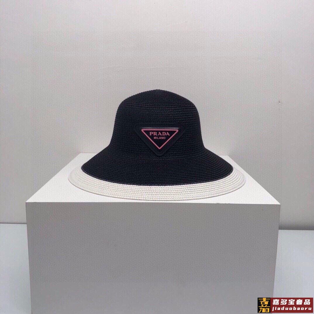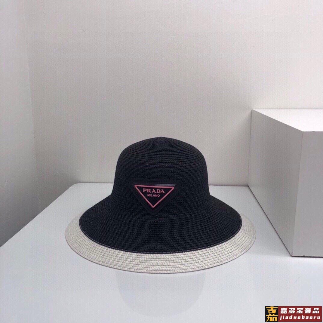 普拉达大帽檐长假必备新款草编遮阳草帽盆帽沙滩风简约大方百搭单