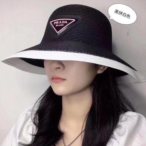 普拉达大帽檐长假必备新款草编遮阳草帽盆帽沙滩风简约大方百搭单