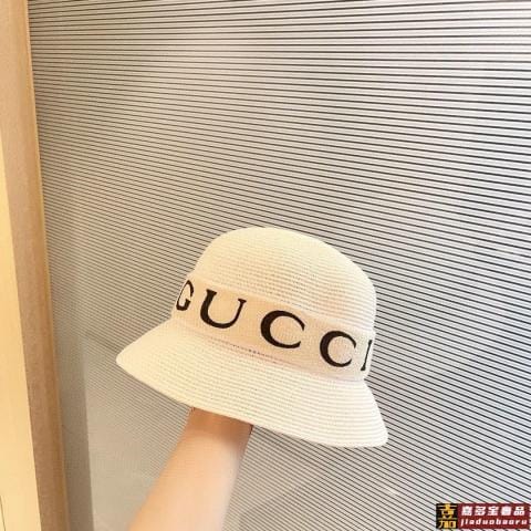 特配防尘袋古奇新款草编遮阳草帽盆帽沙滩风简约大方百搭单品出街