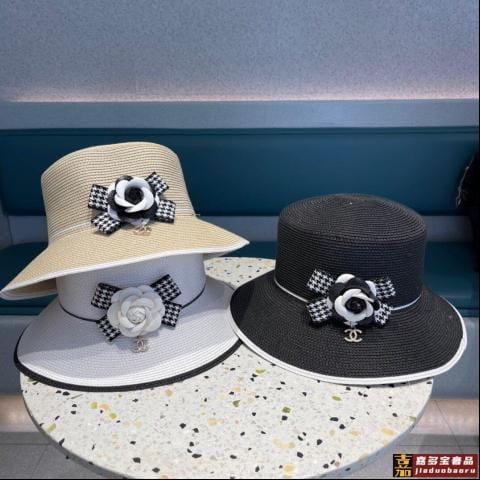 香奈儿春夏新款大帽檐山茶花草帽大帽沿出游必备
