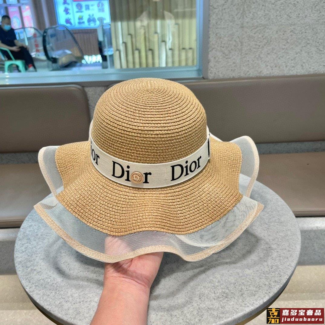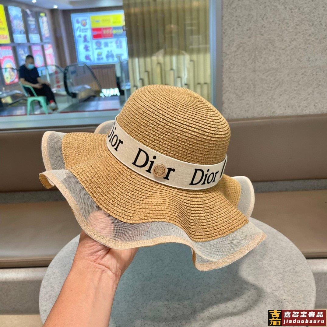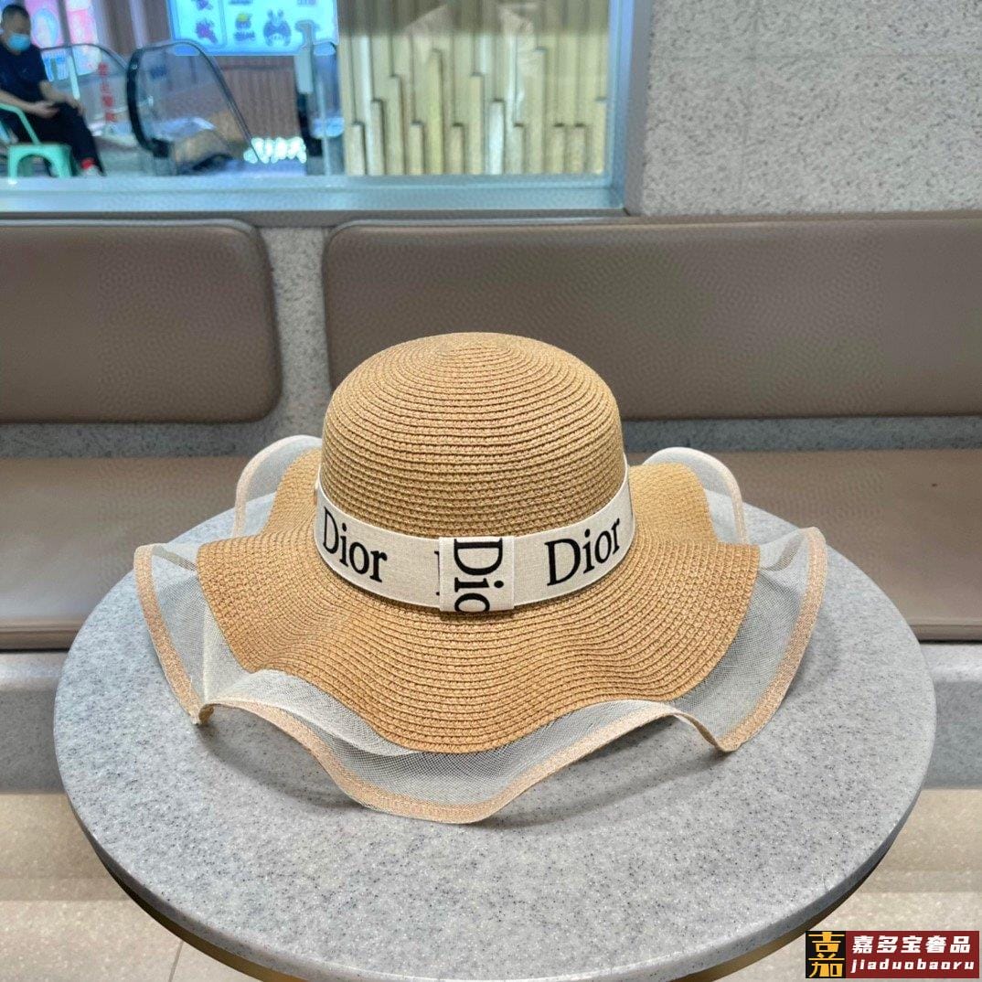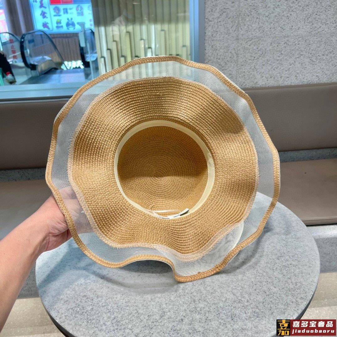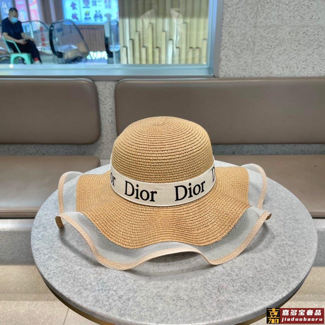迪奥早春新款韩版休闲大帽檐波浪经款草编遮阳草帽沙滩风简约大方
