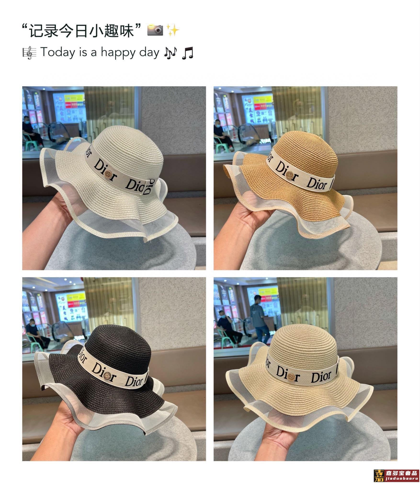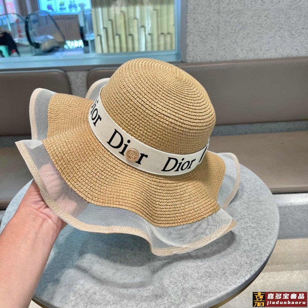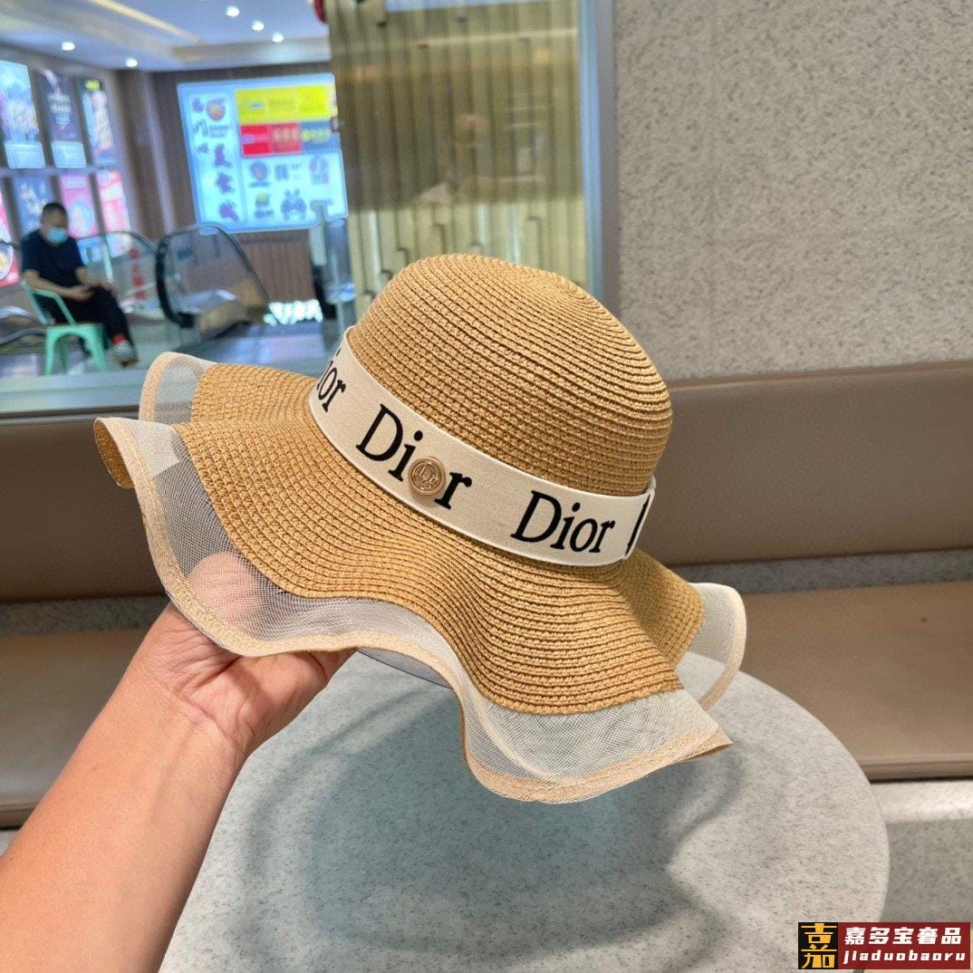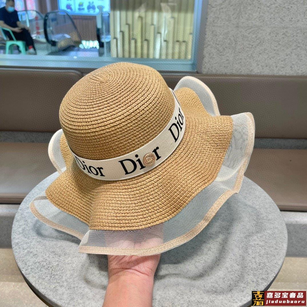 迪奥早春新款韩版休闲大帽檐波浪经款草编遮阳草帽沙滩风简约大方