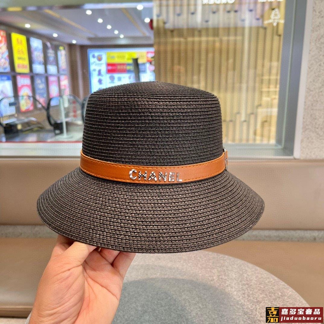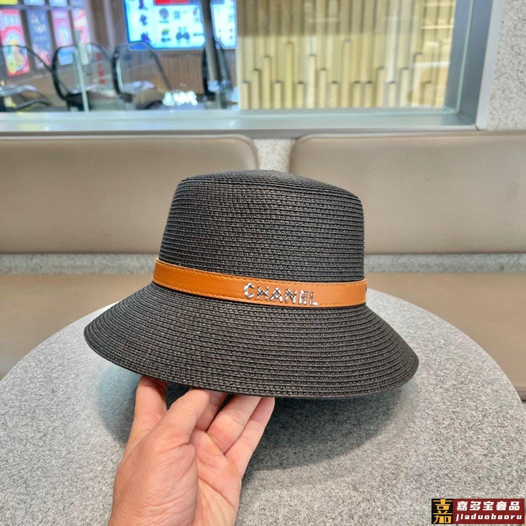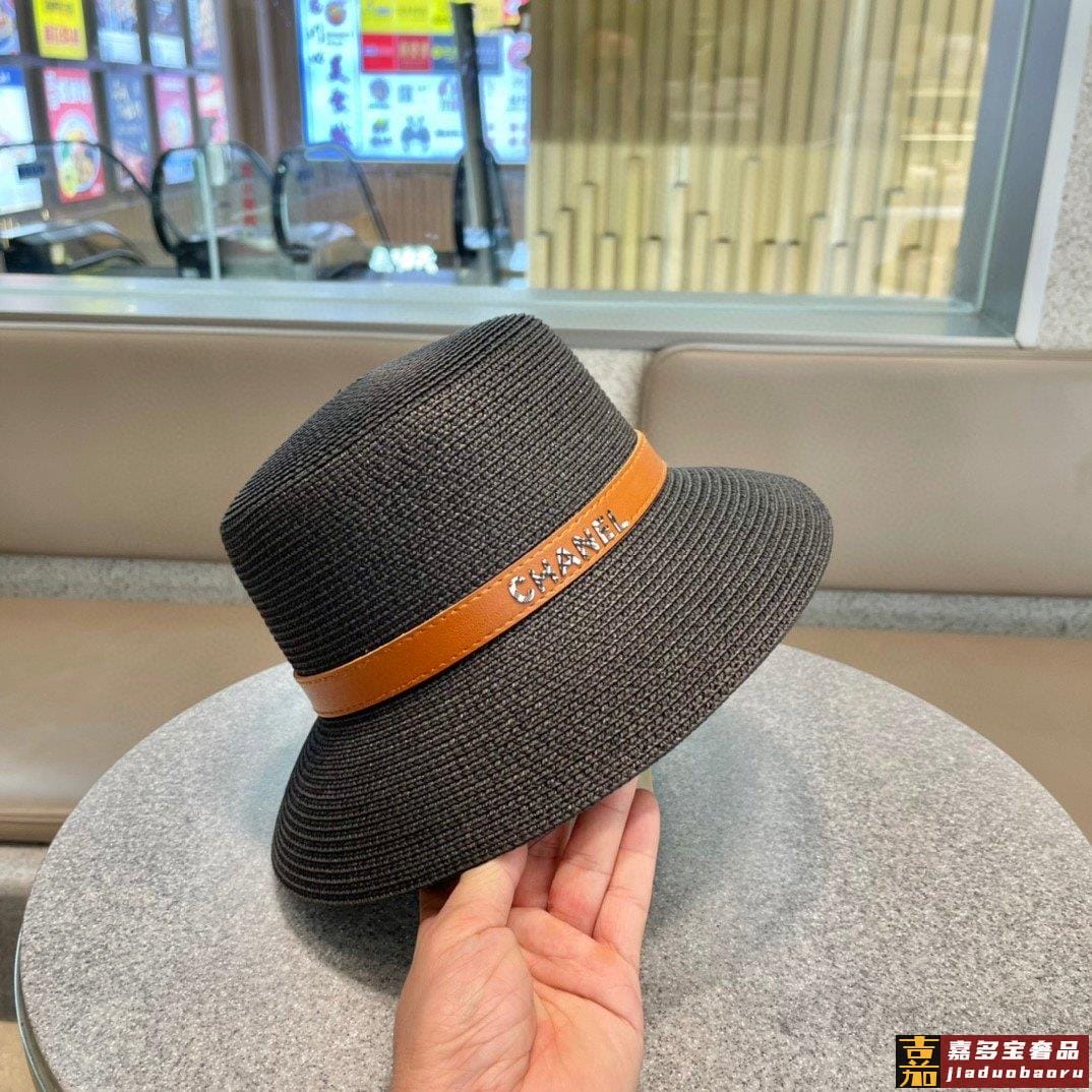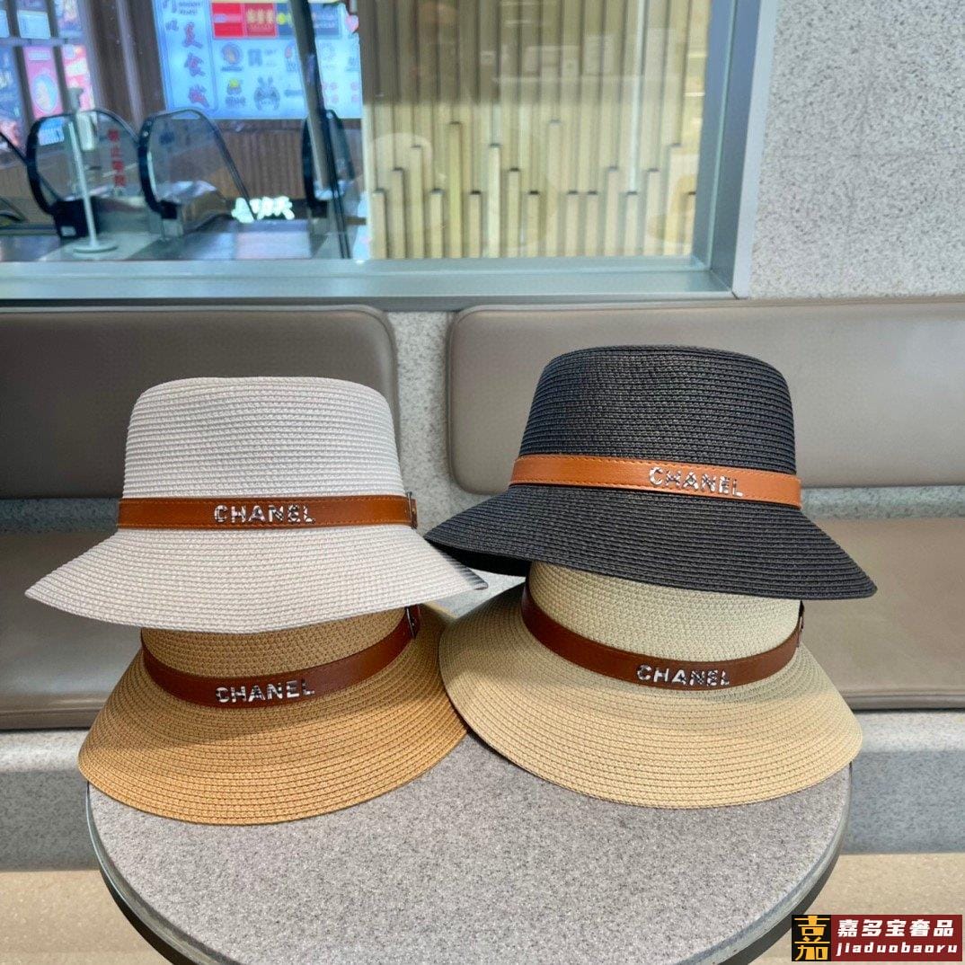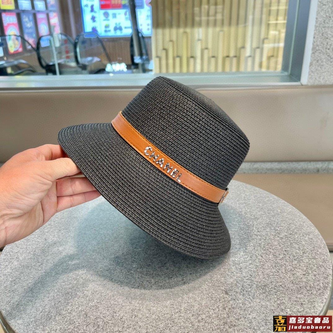 香奈儿早春新款草编皮带草帽盆帽沙滩风简约大方百搭单品出街首选