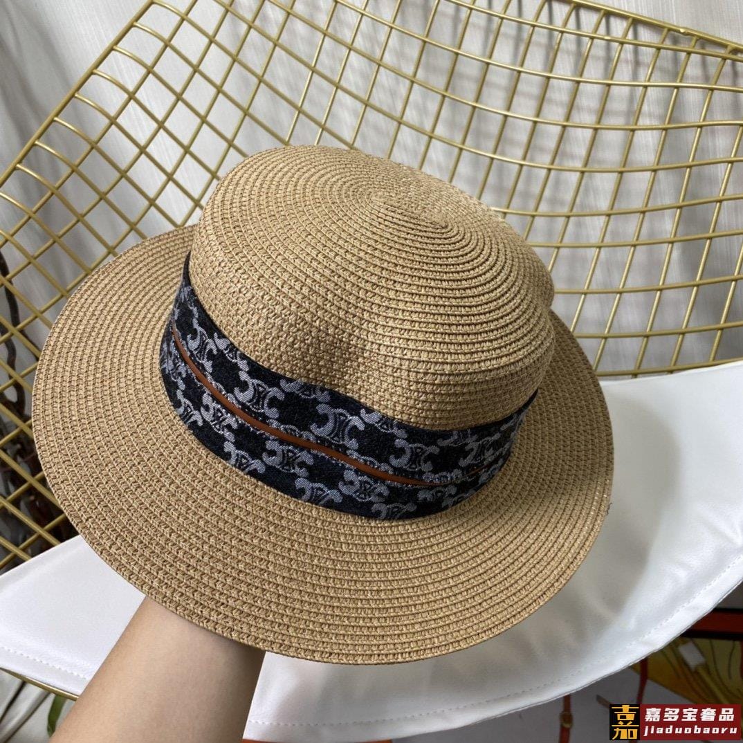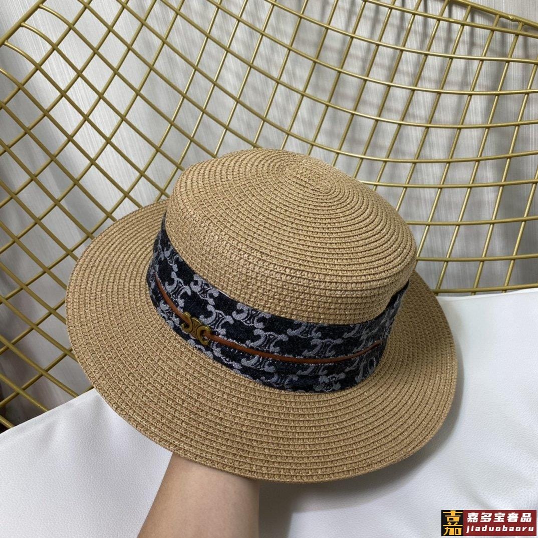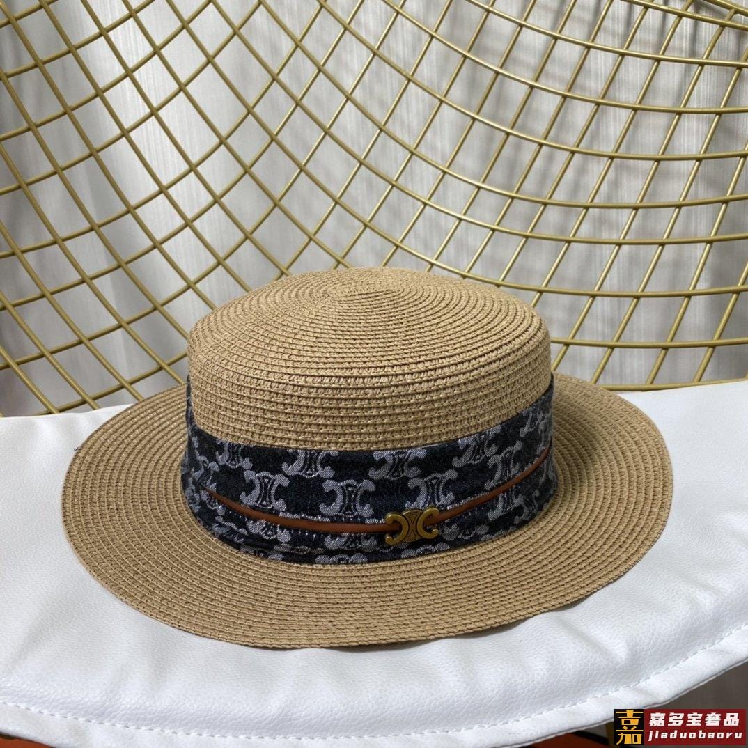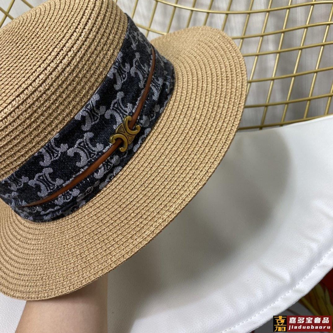 赛琳新款草编遮阳平顶帽沙滩风简约大方百搭单品出街首选新款帽型