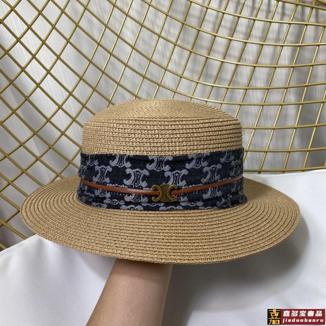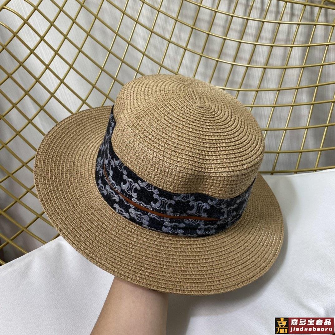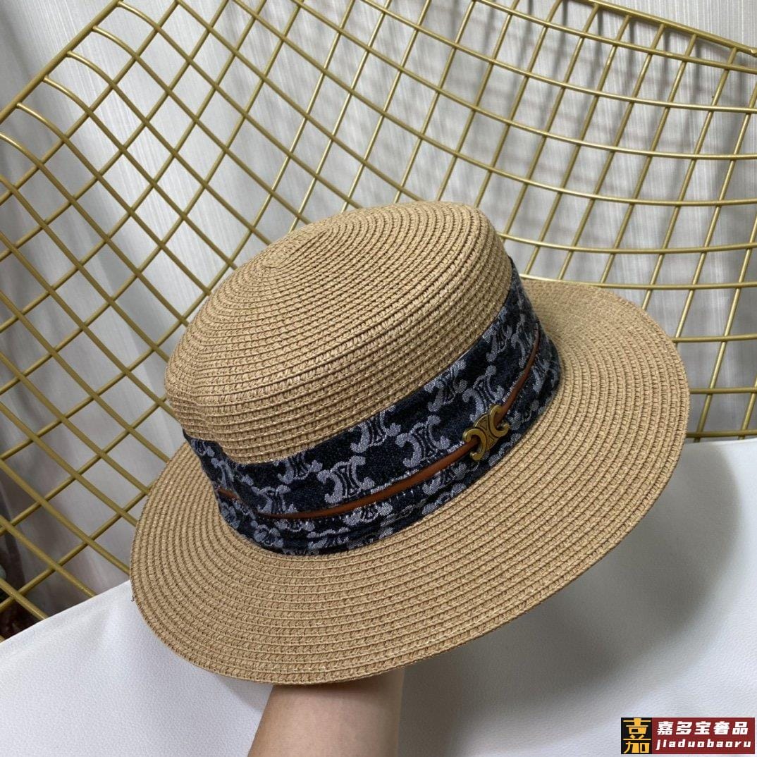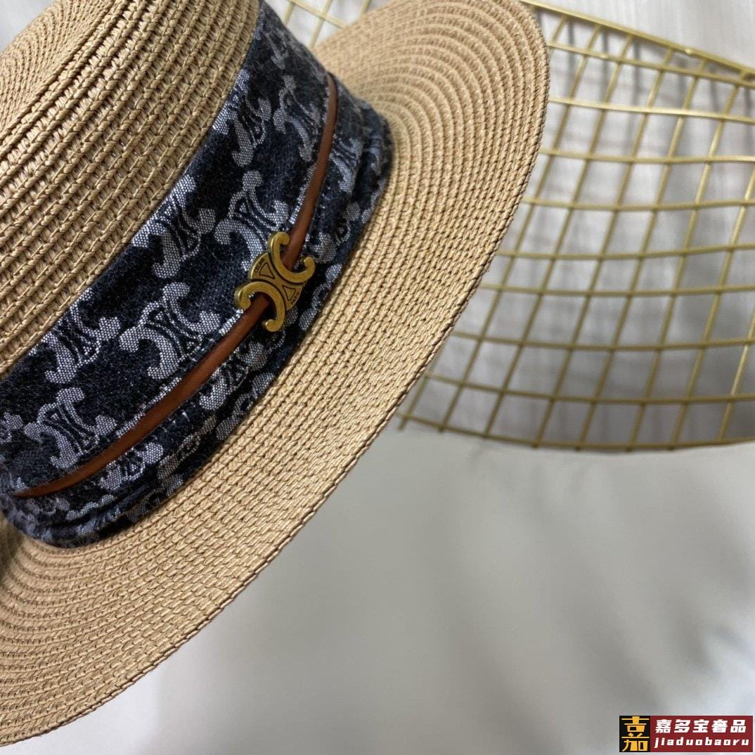 赛琳新款草编遮阳平顶帽沙滩风简约大方百搭单品出街首选新款帽型