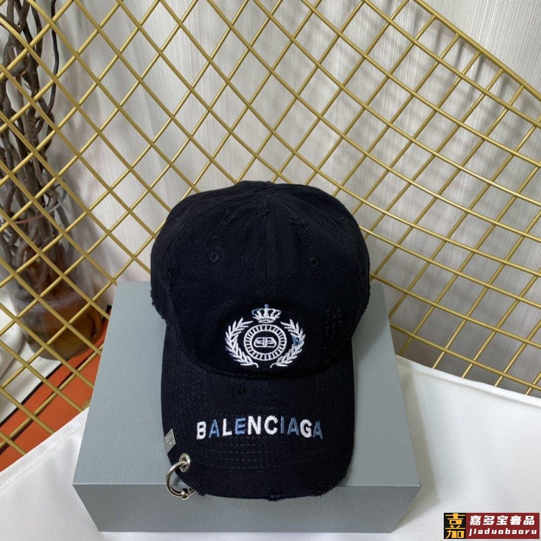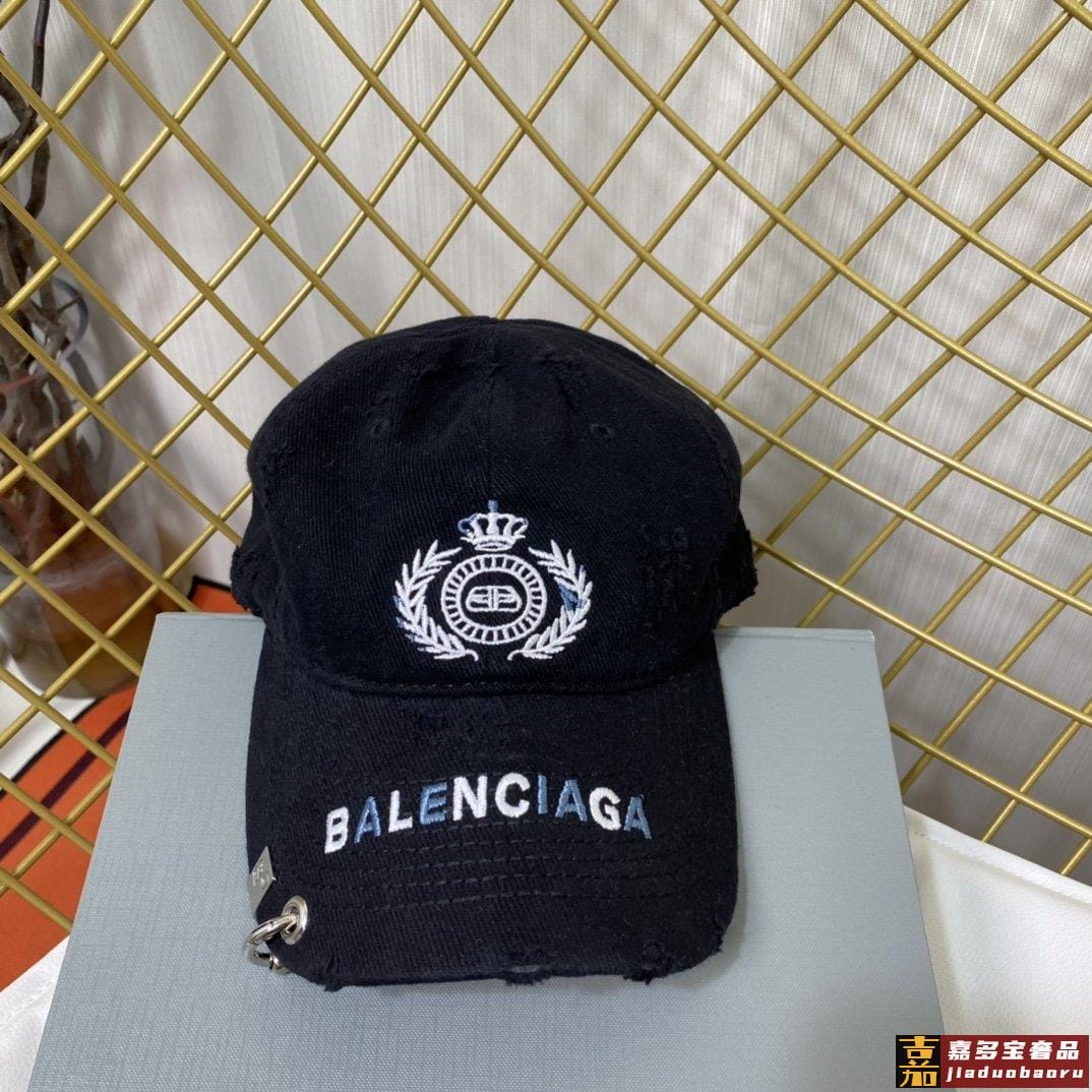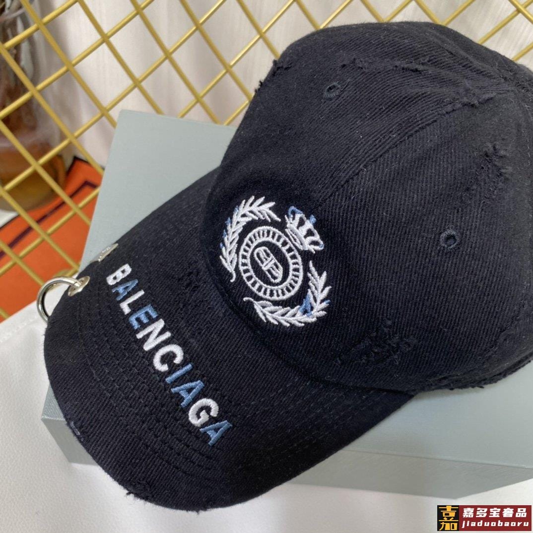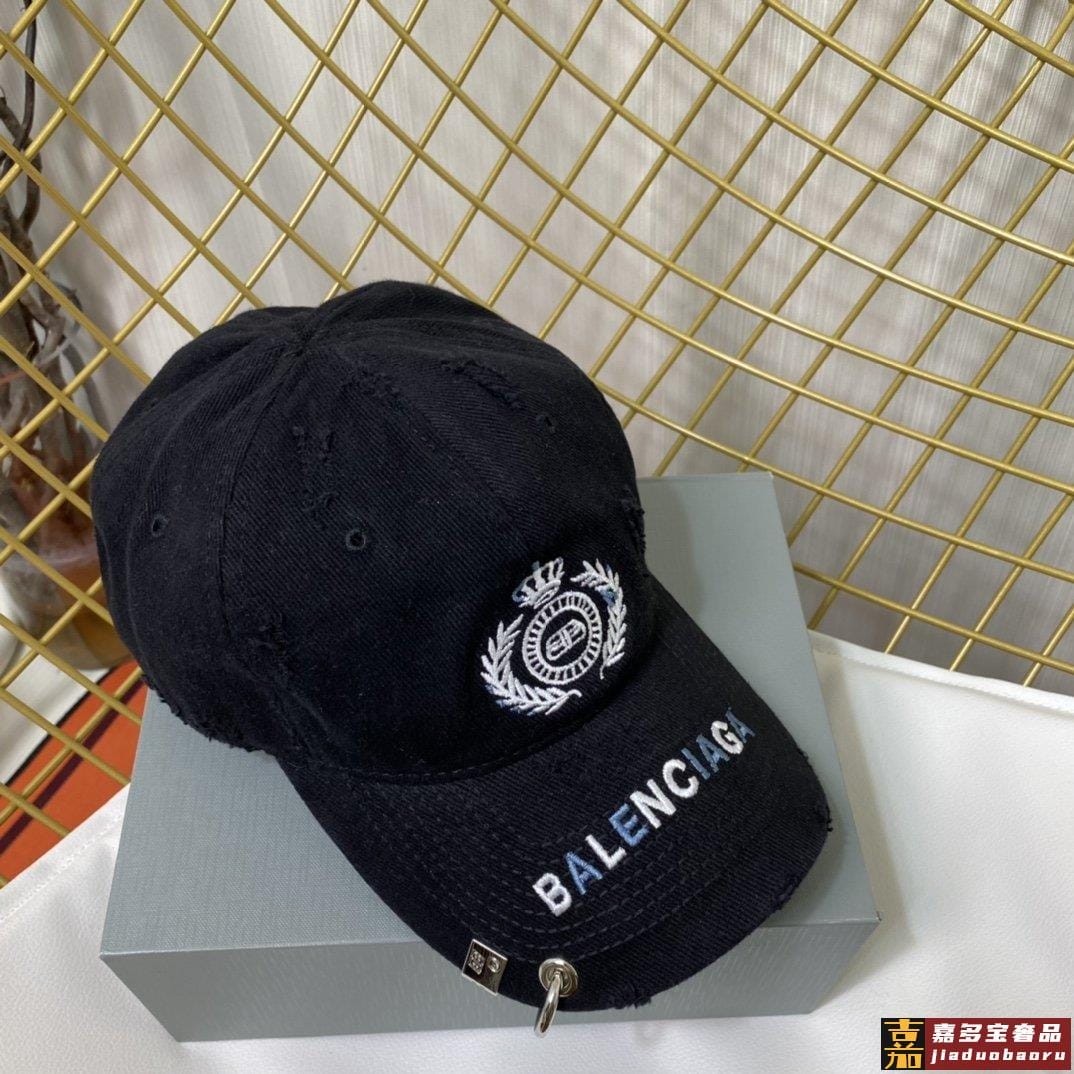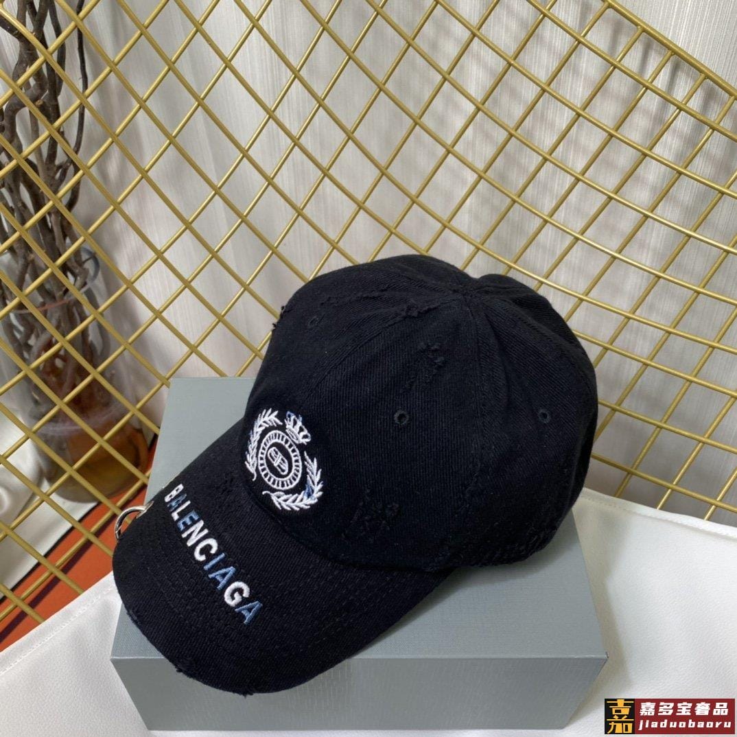 巴黎世家新款徽章图案字母男女同款做旧款棒球帽重工洗破做旧麦穗