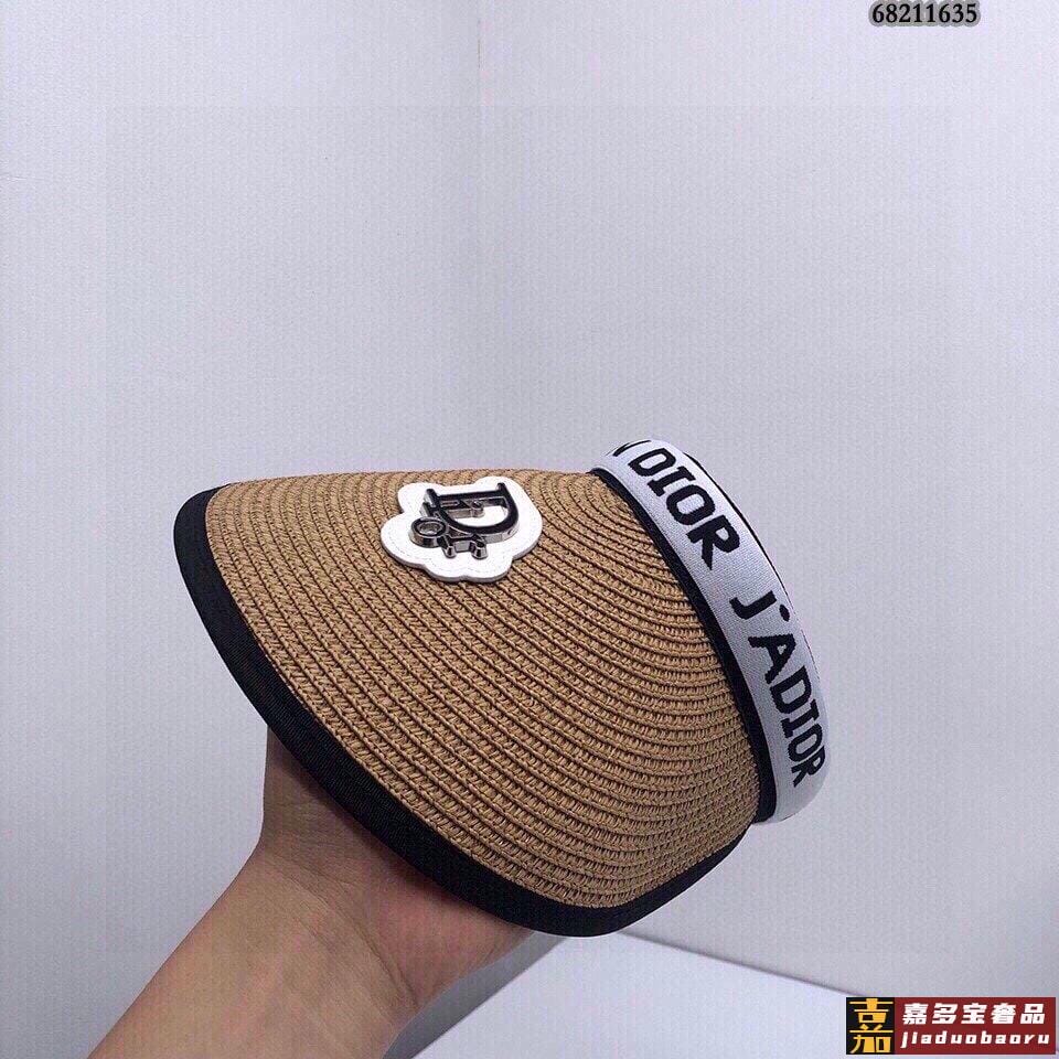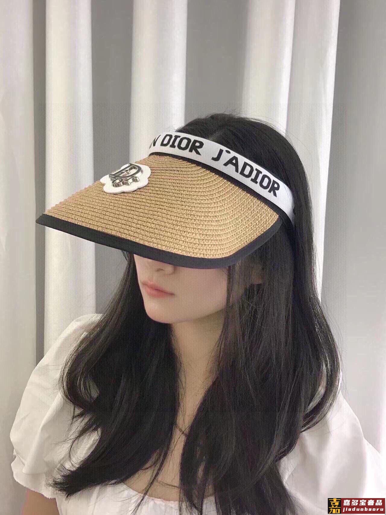 迪奥新款空顶帽草帽重工定制手工缝制欧美范透气休闲遮阳防晒必备