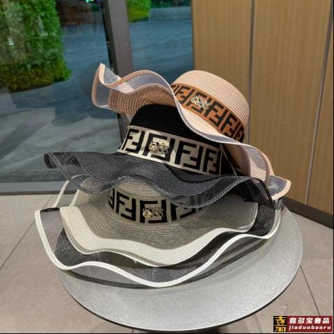 芬迪早春波浪草帽新品原单拼接草帽波浪风爆款上市百搭时尚经典简