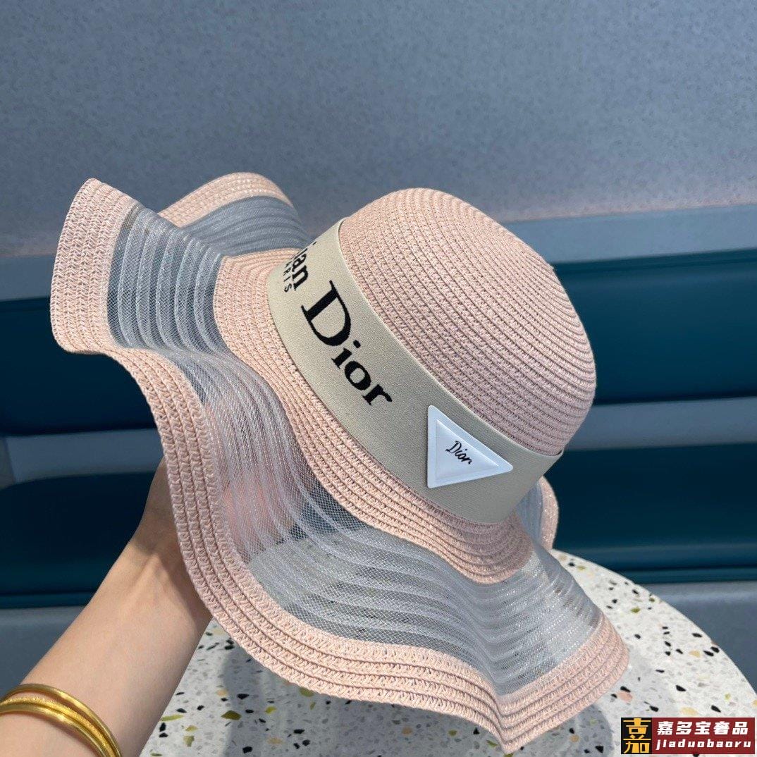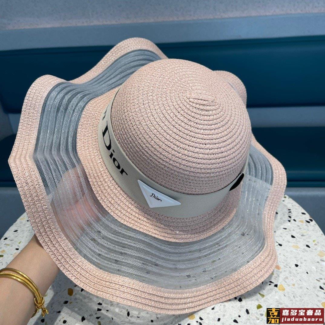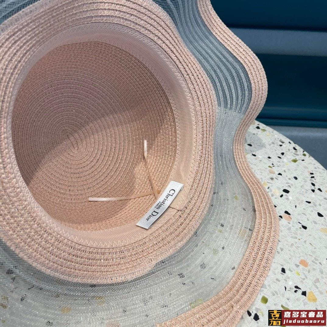 迪奥荷叶边草帽新款大帽檐草帽波浪大帽沿出游必备