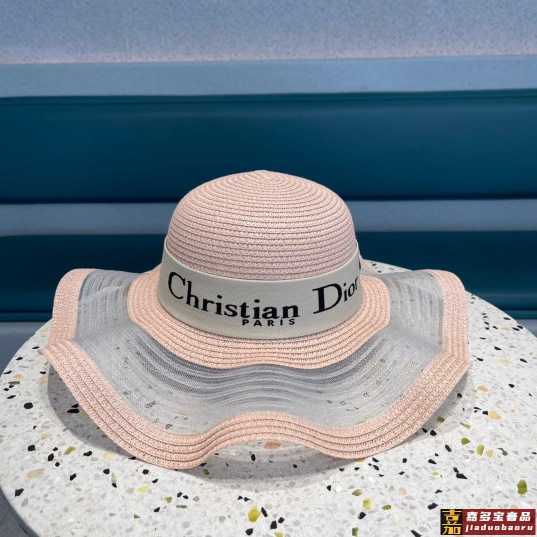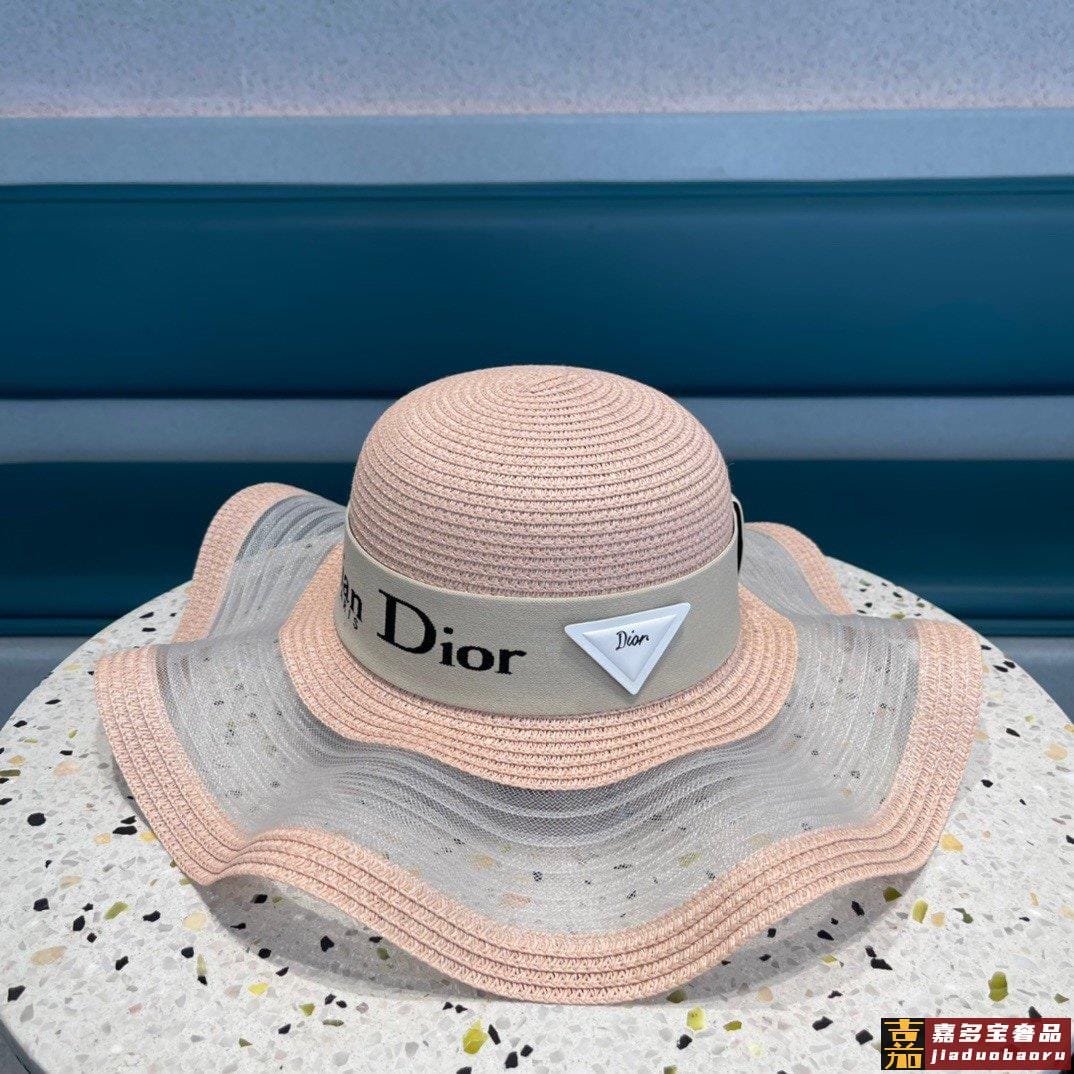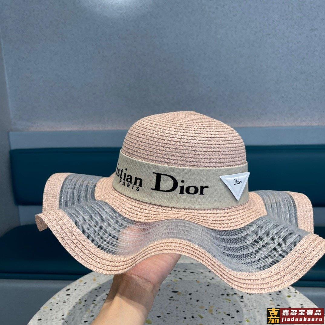 迪奥荷叶边草帽新款大帽檐草帽波浪大帽沿出游必备