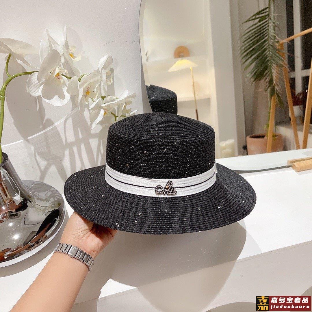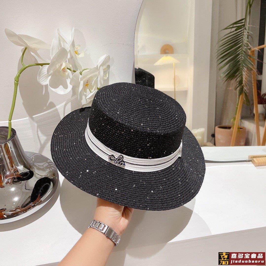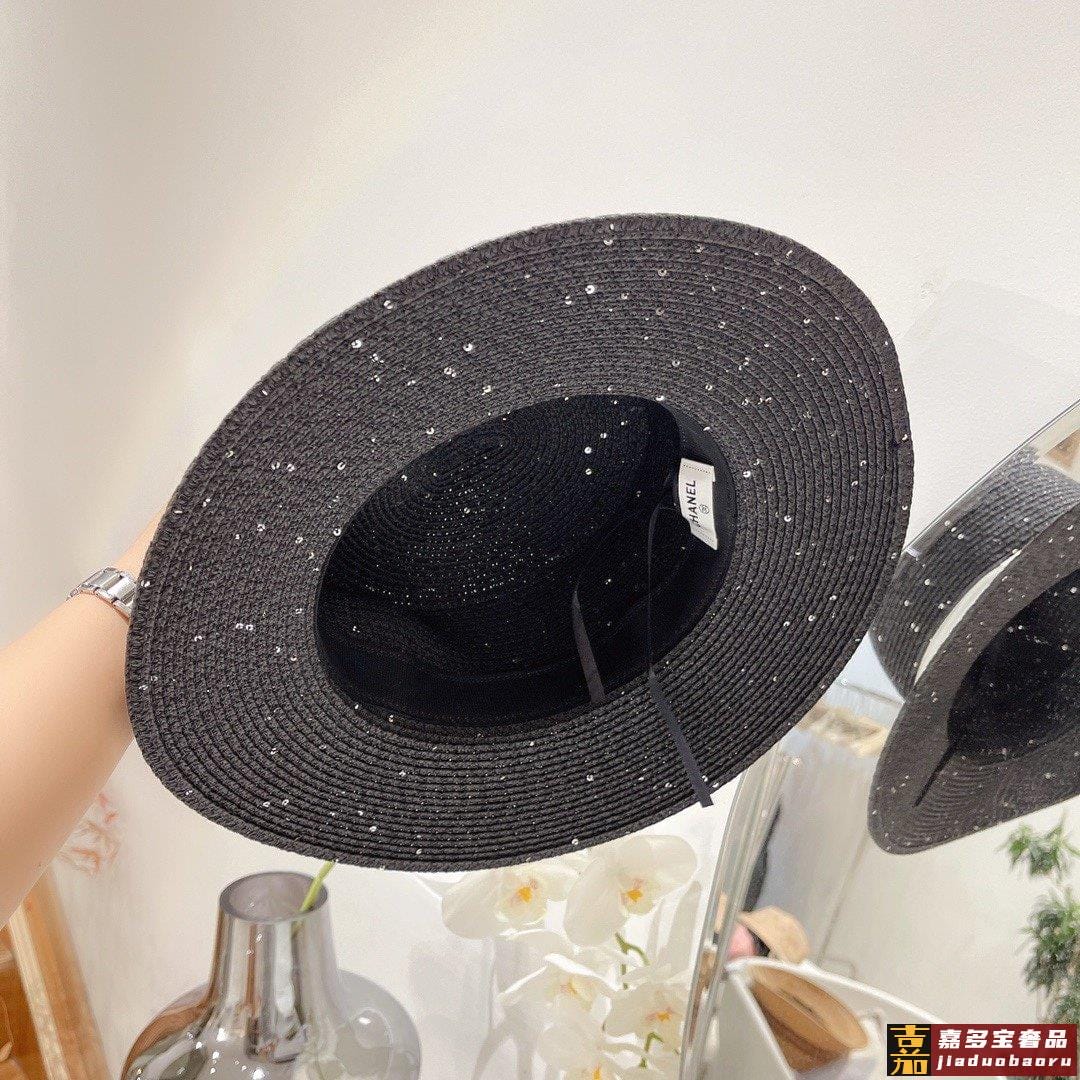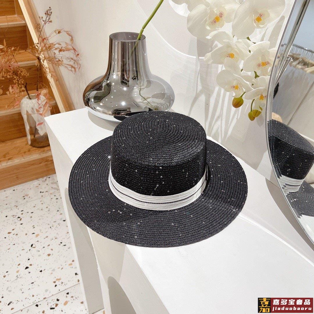 小香春夏亮片平顶礼帽高质量定制草帽型完美大帽檐遮阳很每个新款上架都是用心之作