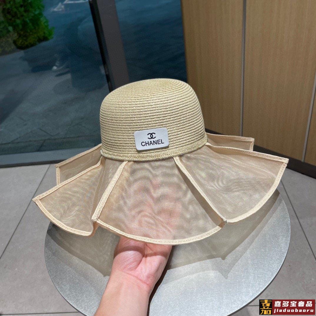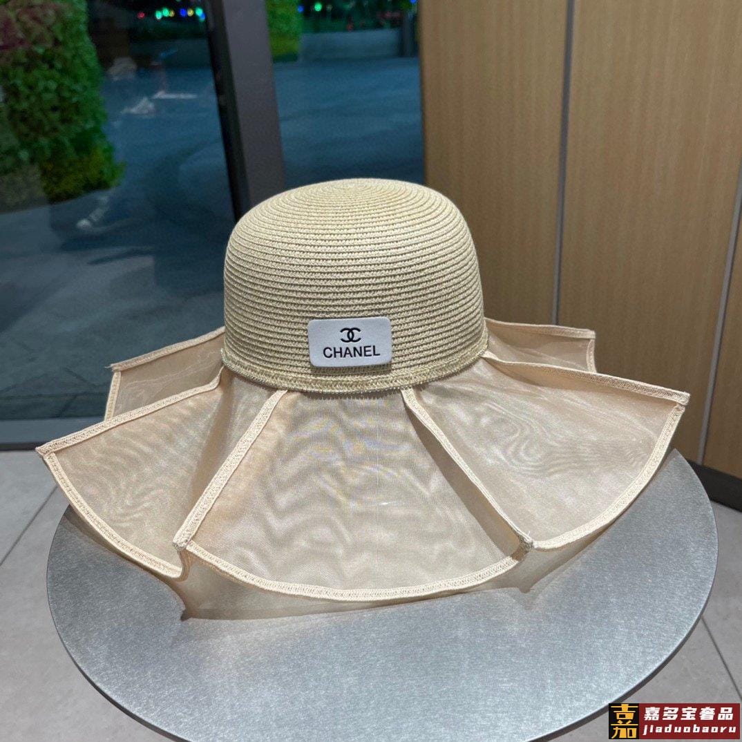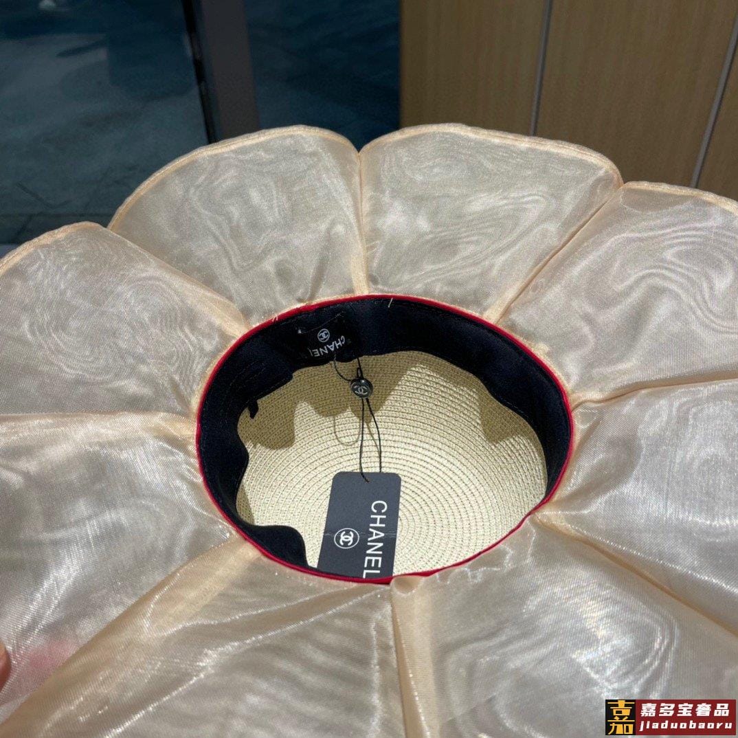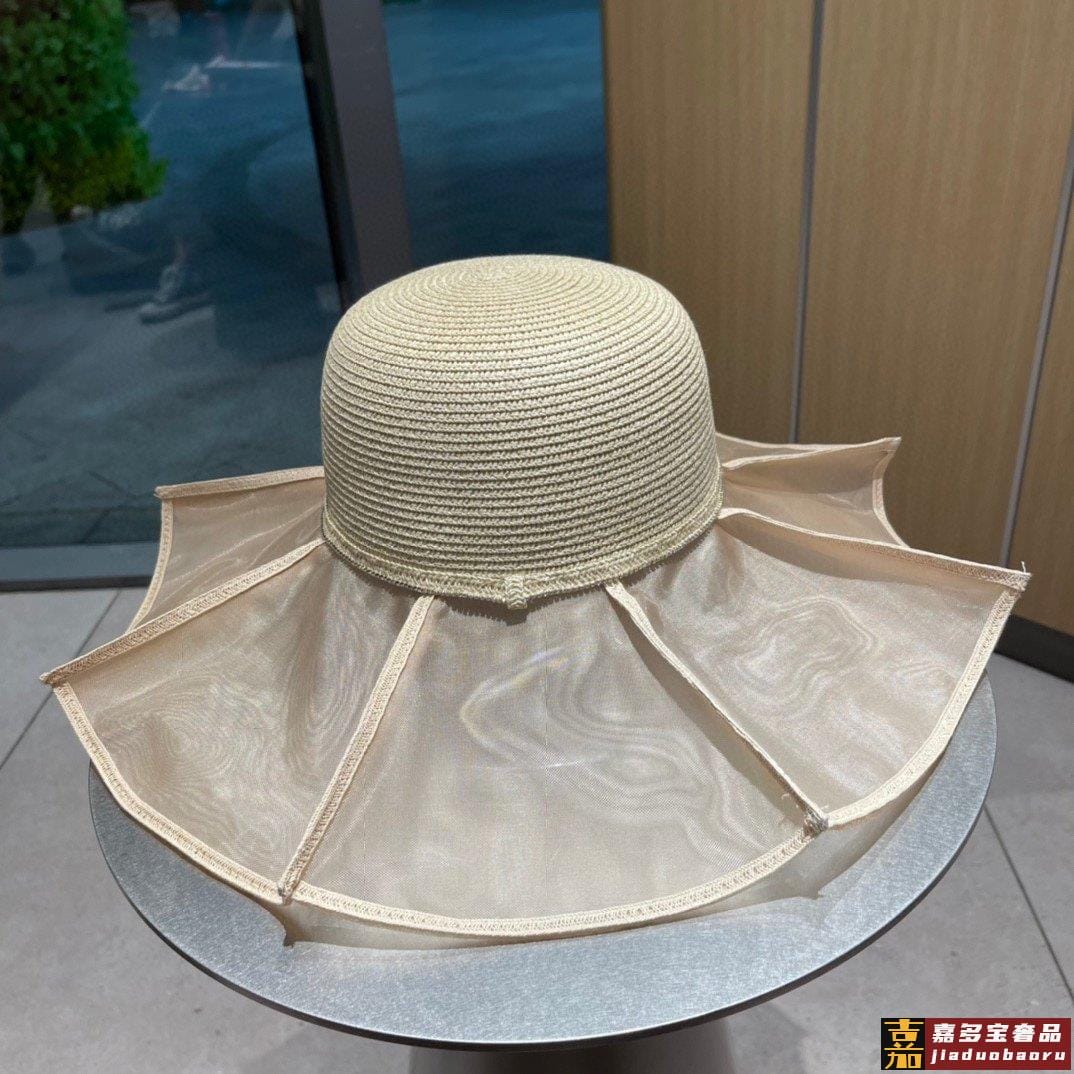 香奈儿小香风荷叶边草帽新款大帽檐草帽波浪大帽沿出游必备