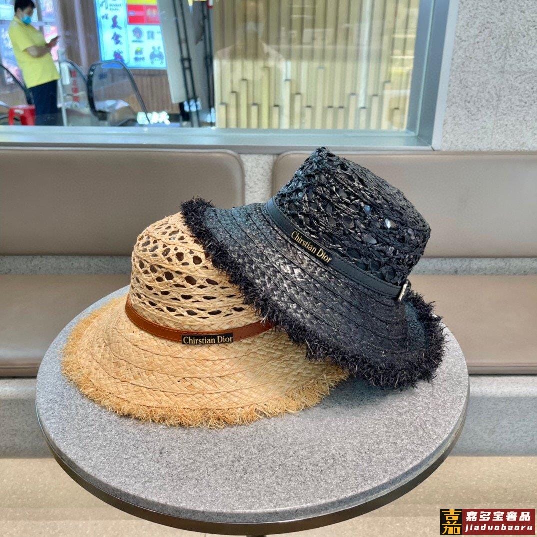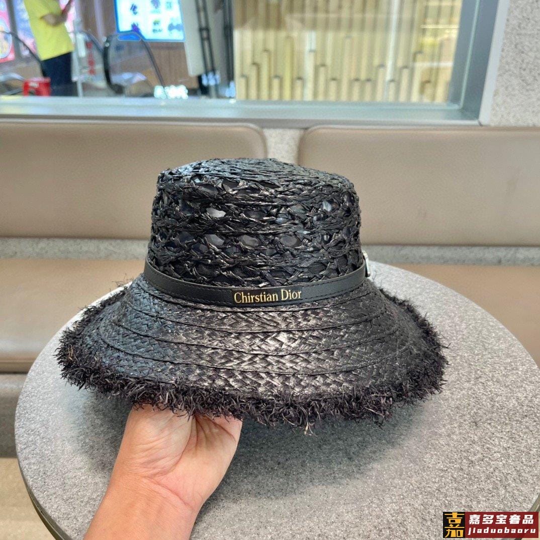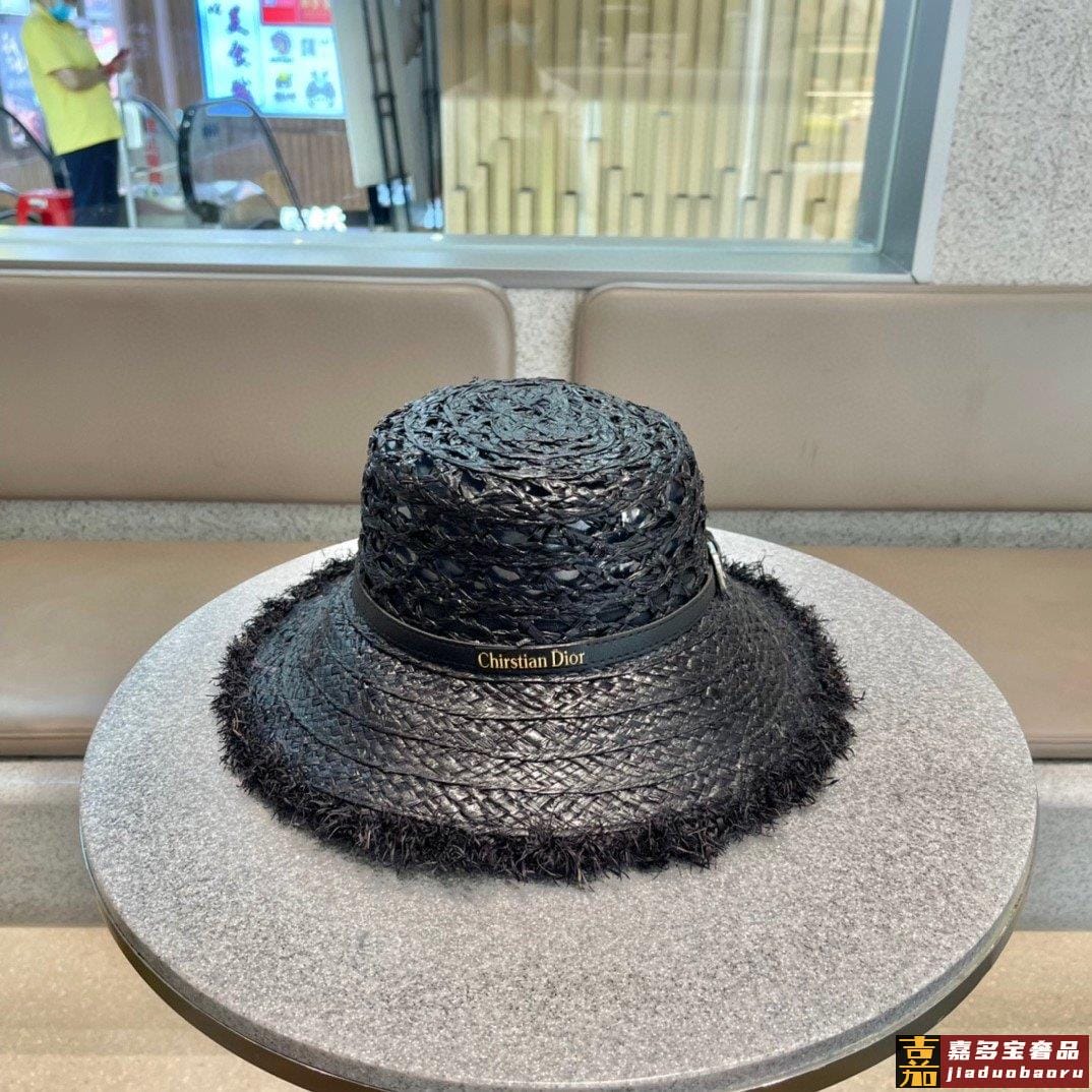 迪奥大帽檐长假必备新款草编遮阳草帽盆帽沙滩风简约大方百搭单品