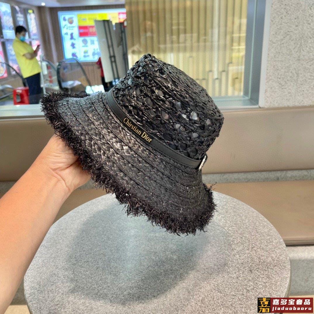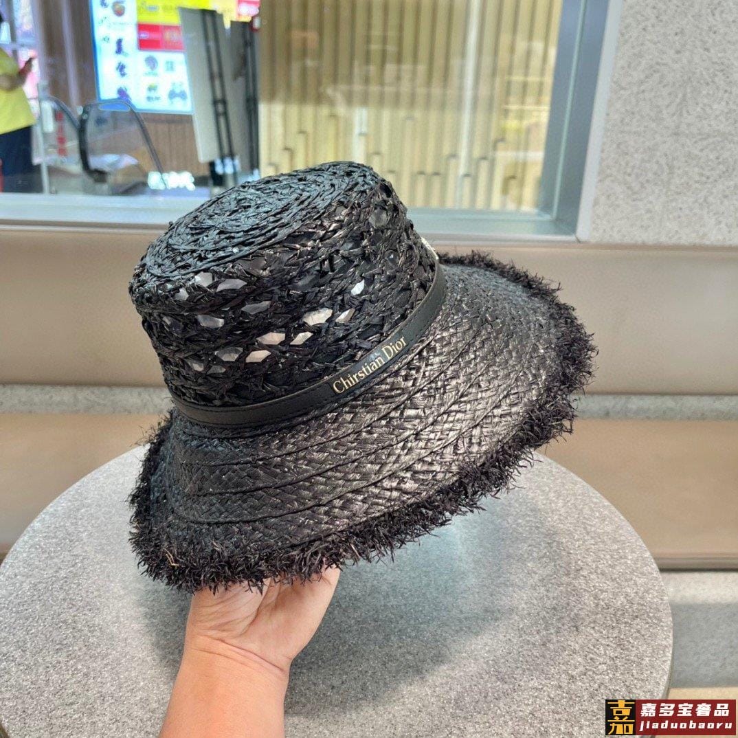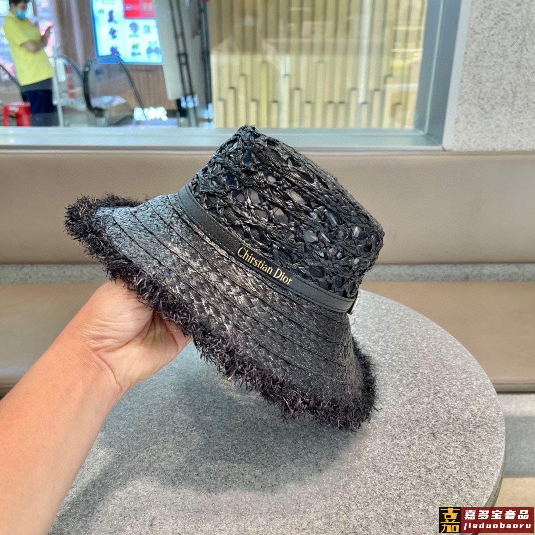 迪奥大帽檐长假必备新款草编遮阳草帽盆帽沙滩风简约大方百搭单品