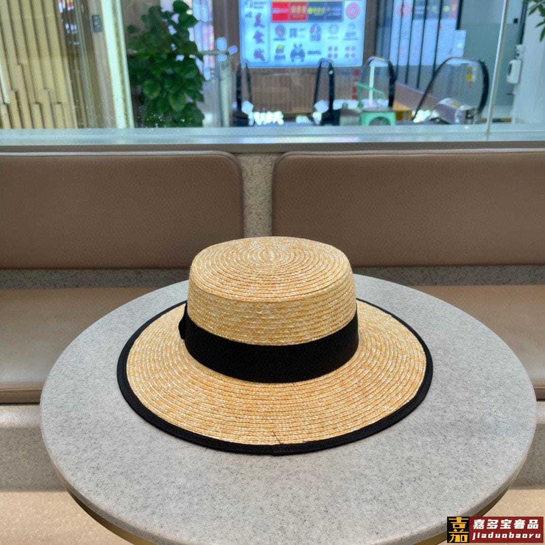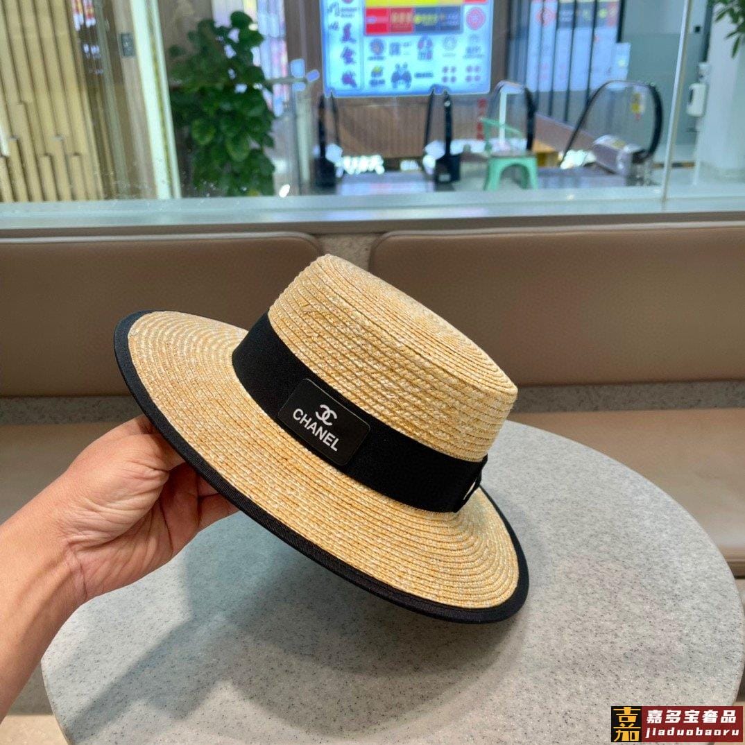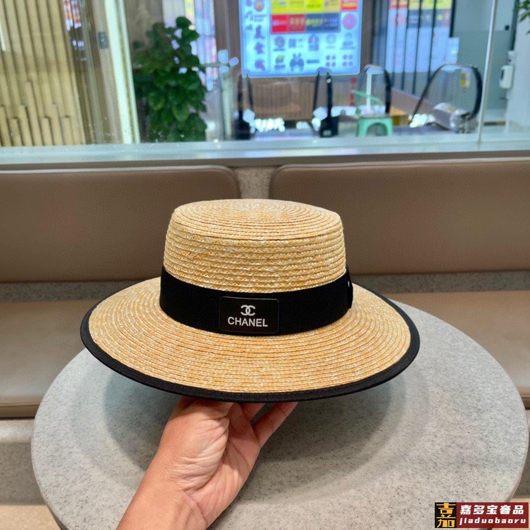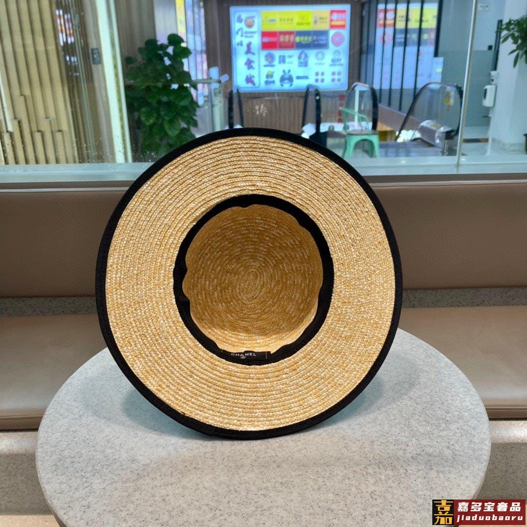 香奈儿早春新款韩版平顶布包边草帽质感非常好麦杆草重工制作非常