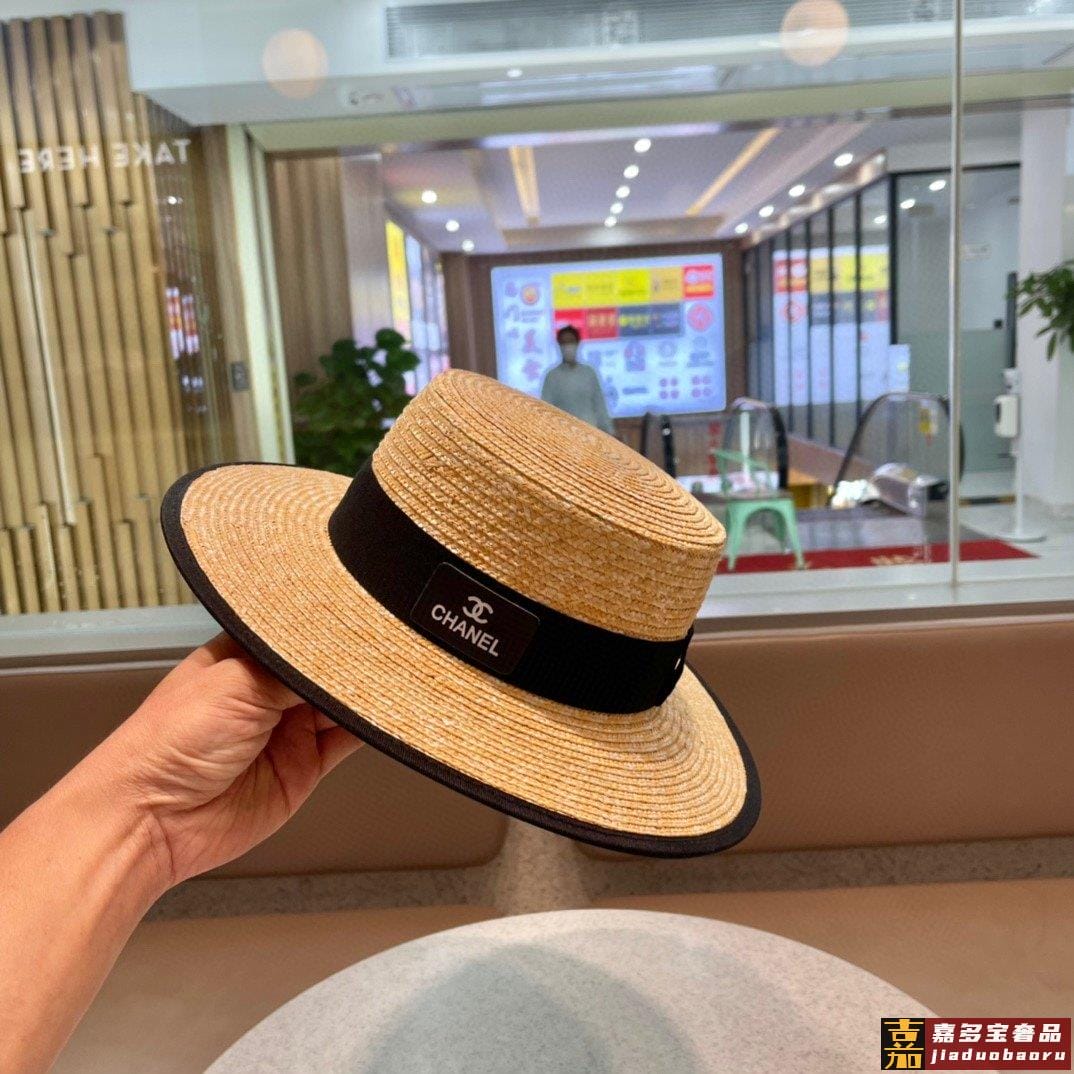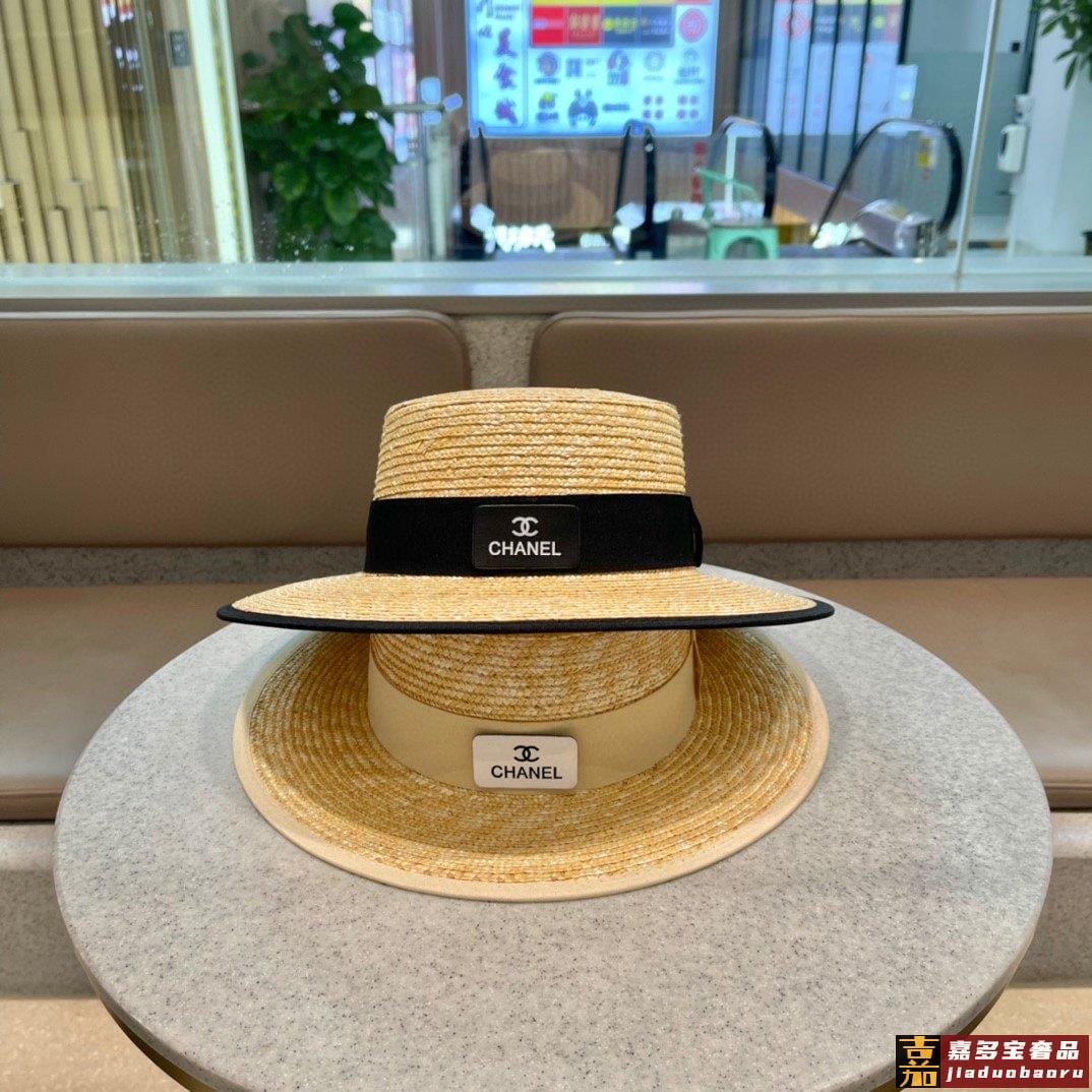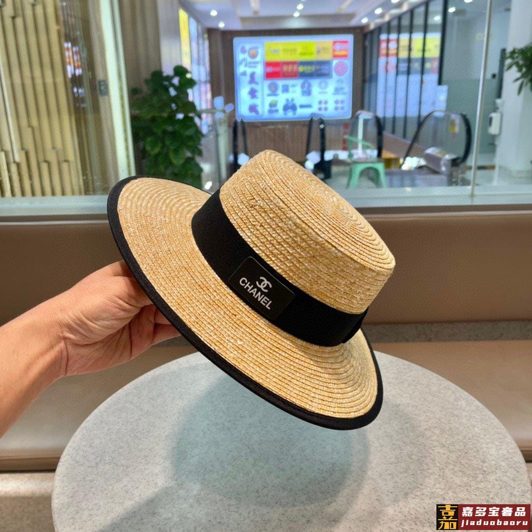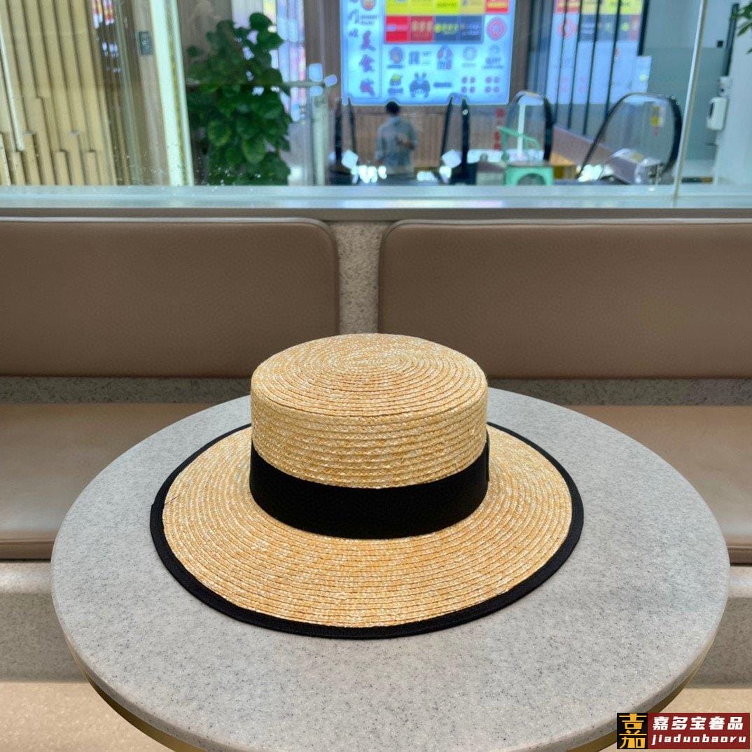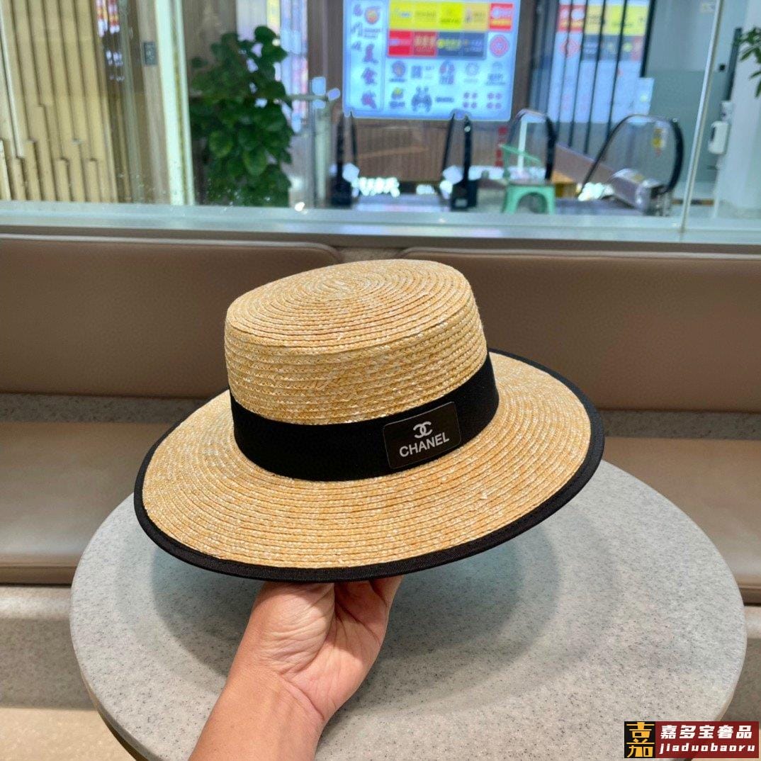 香奈儿早春新款韩版平顶布包边草帽质感非常好麦杆草重工制作非常