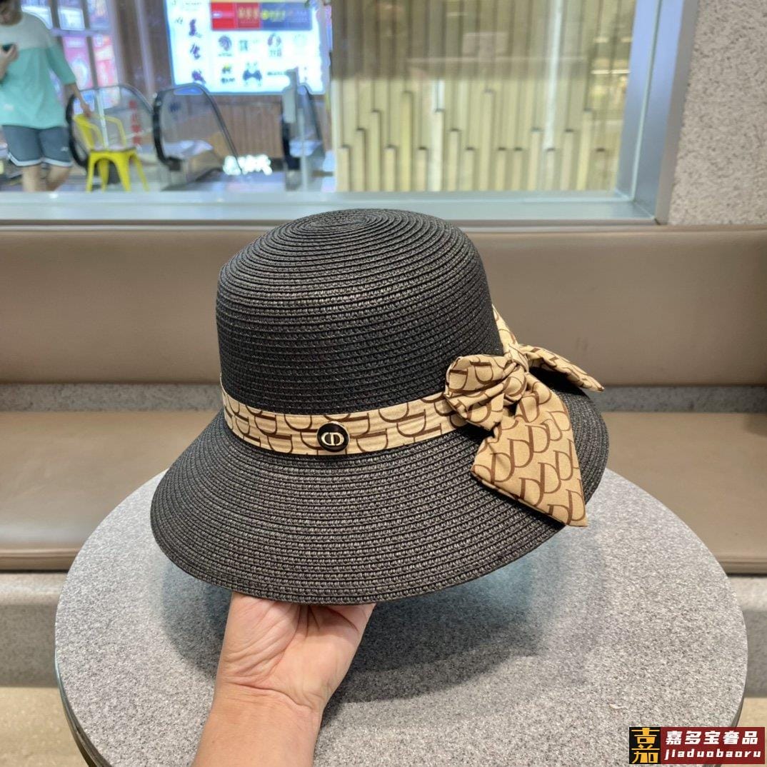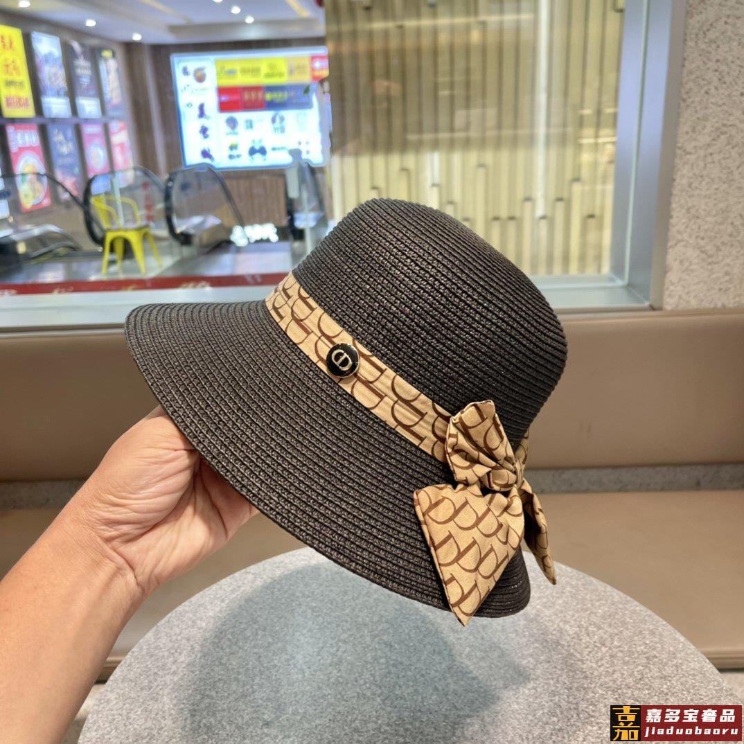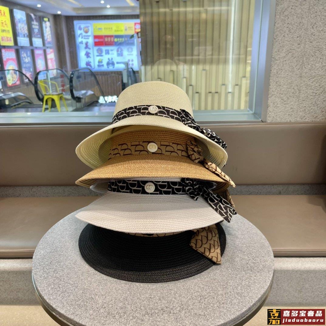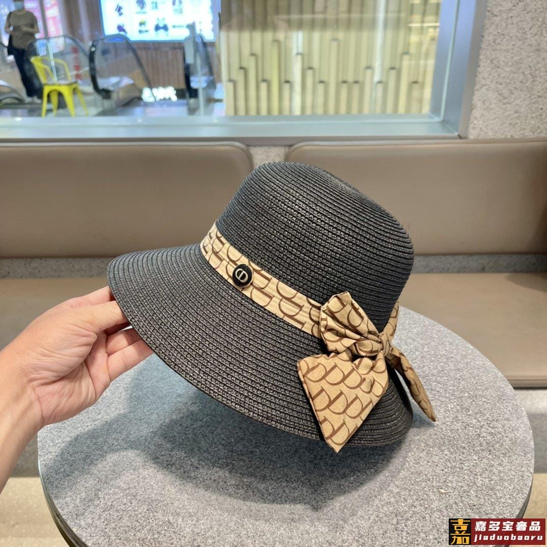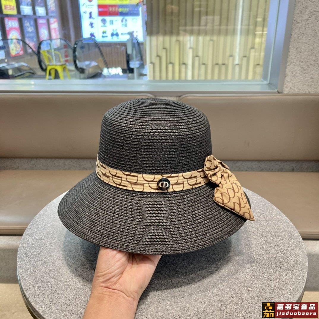 迪奥早春新款原单韩版休闲大帽檐草编遮阳草帽沙滩风简约大方百搭