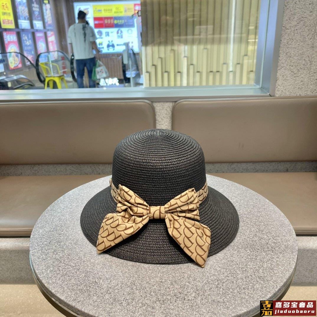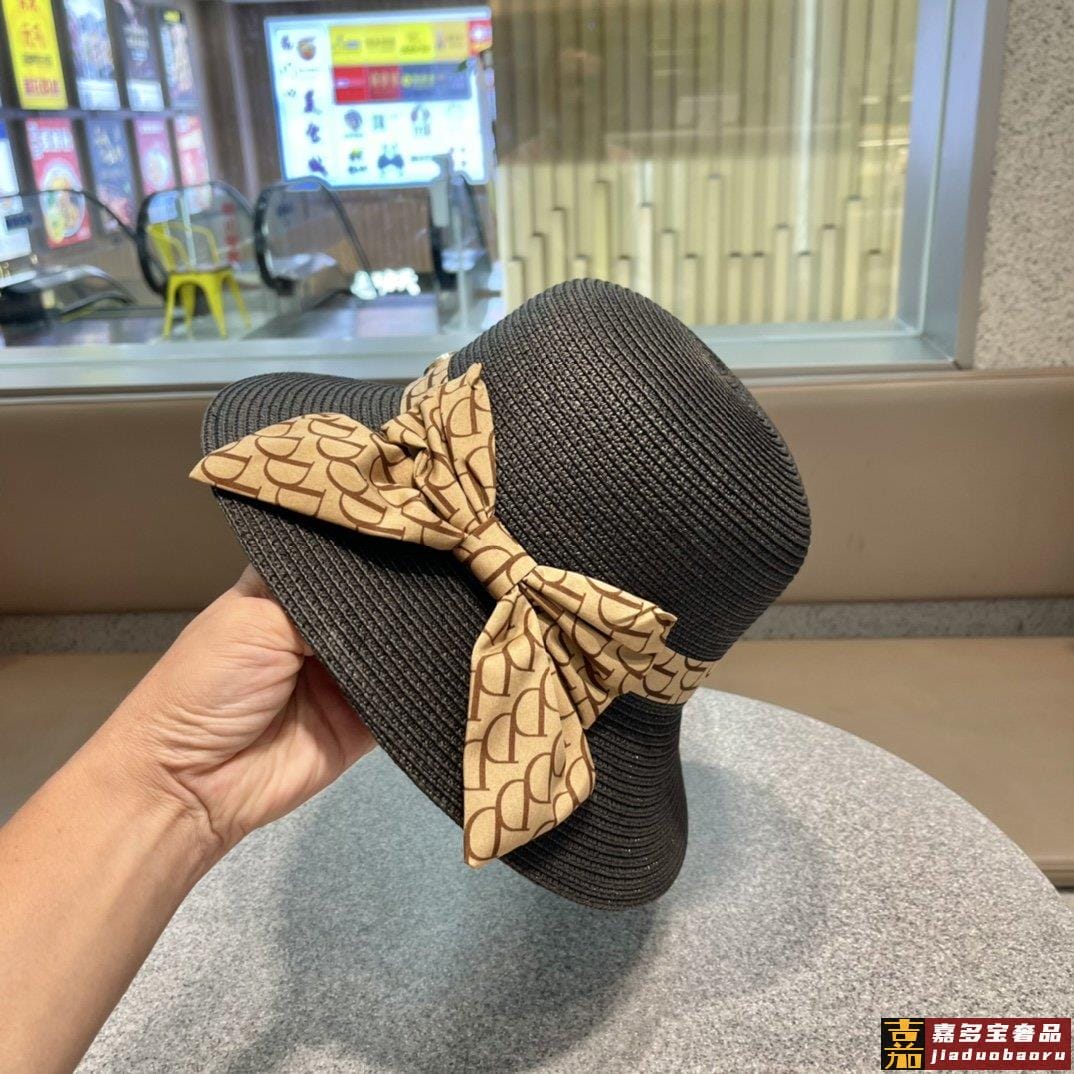 迪奥早春新款韩版休闲大帽檐蝴蝶结草编遮阳草帽沙滩风简约大方百