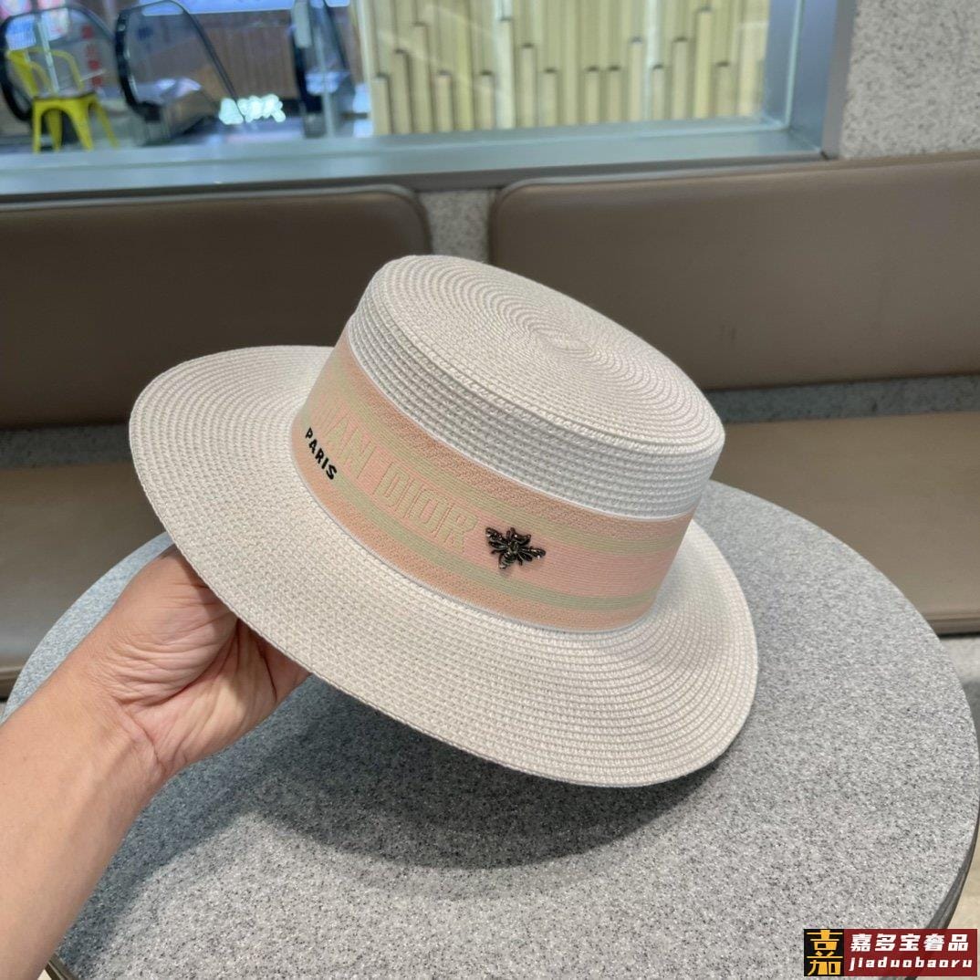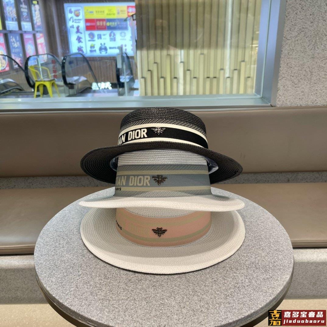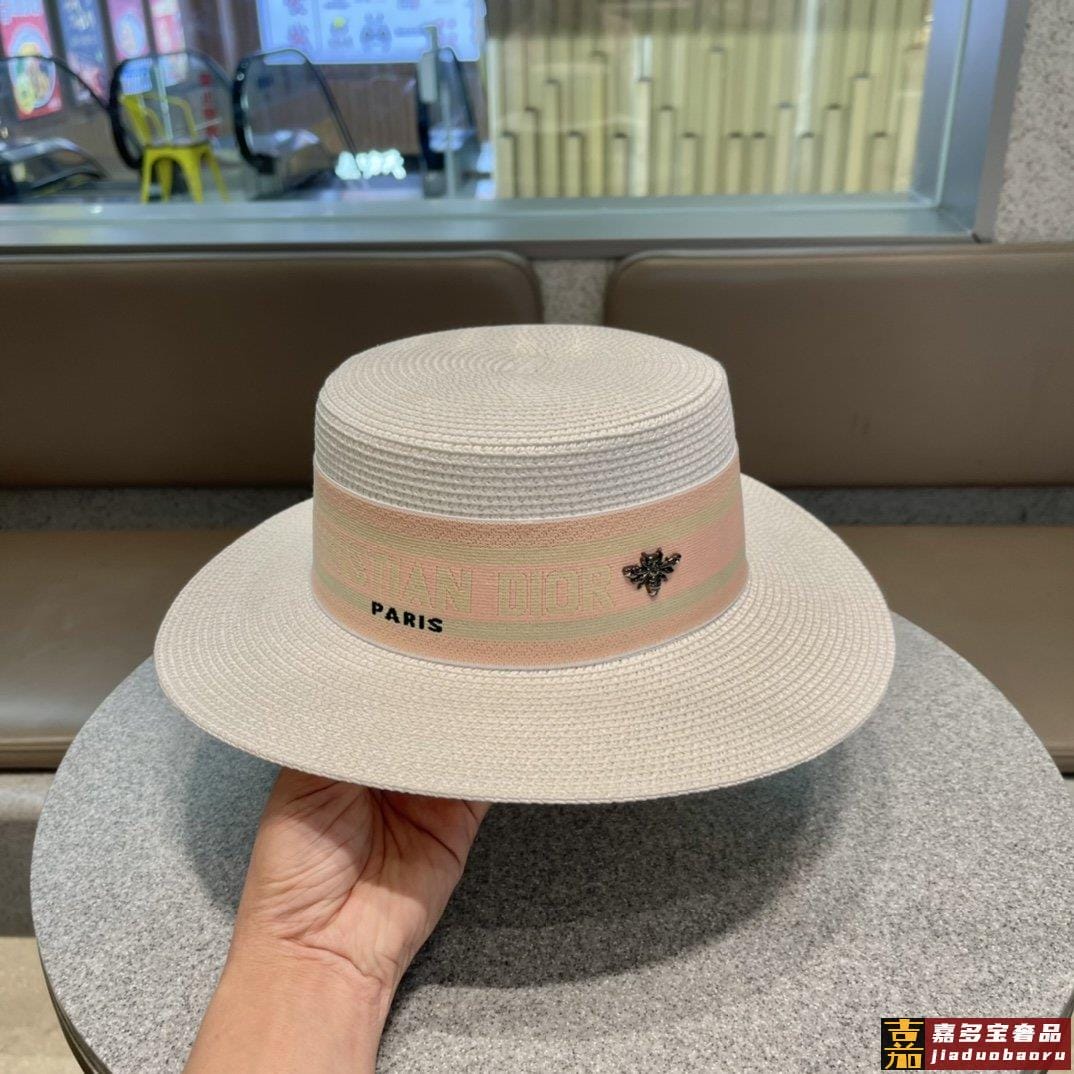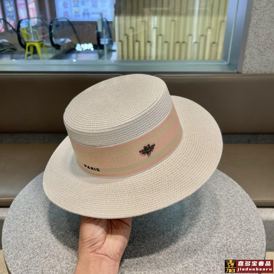 迪奥早春新款原单韩版休闲大帽檐草编遮阳草帽沙滩风简约大方百搭