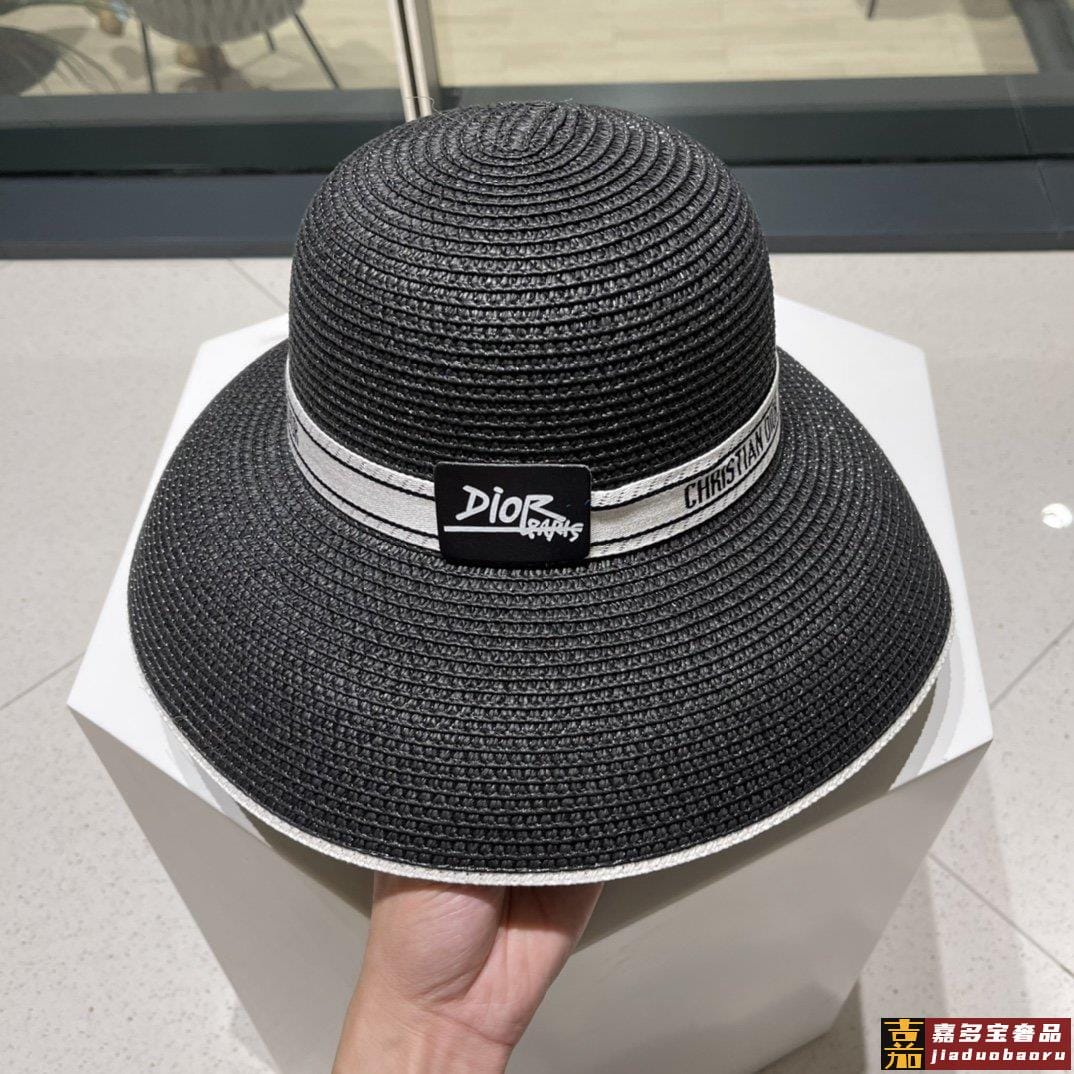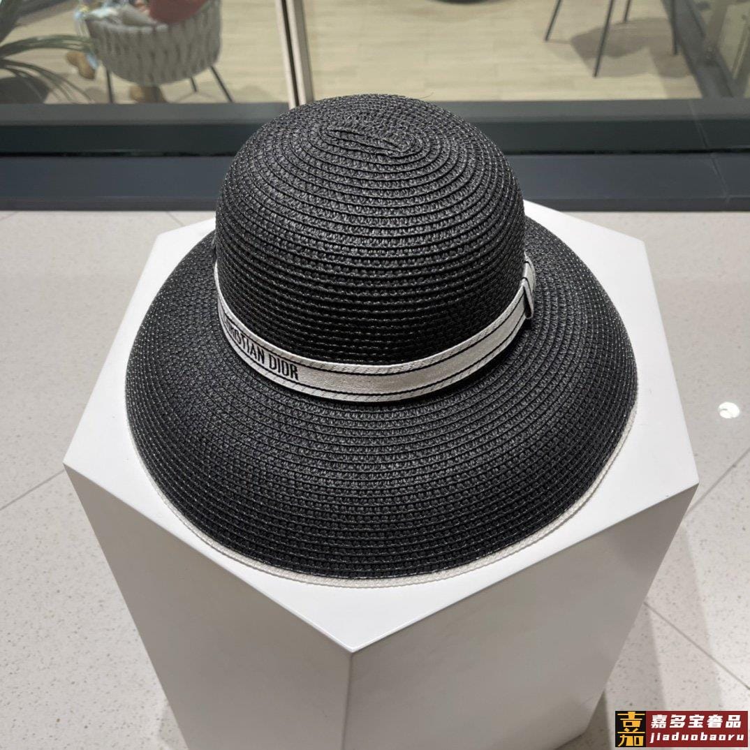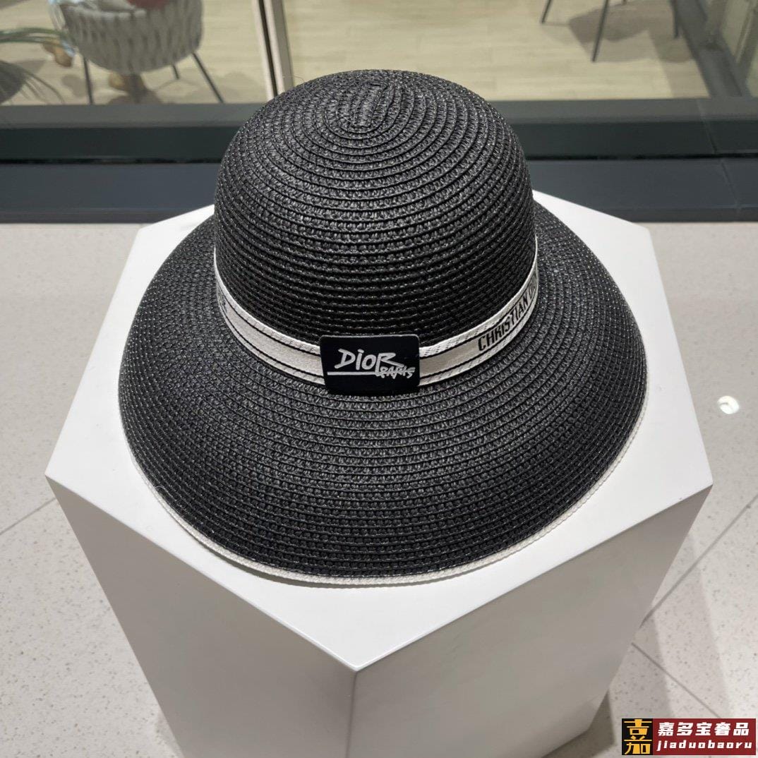 迪奥早春新款织带圆顶草帽赫本复古时尚女神气质单品出游必备 <