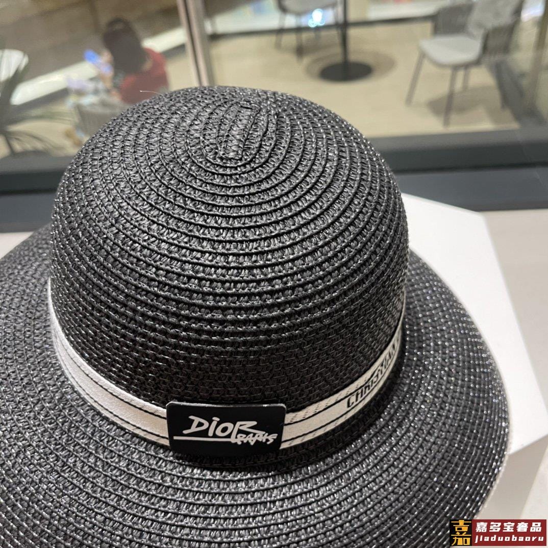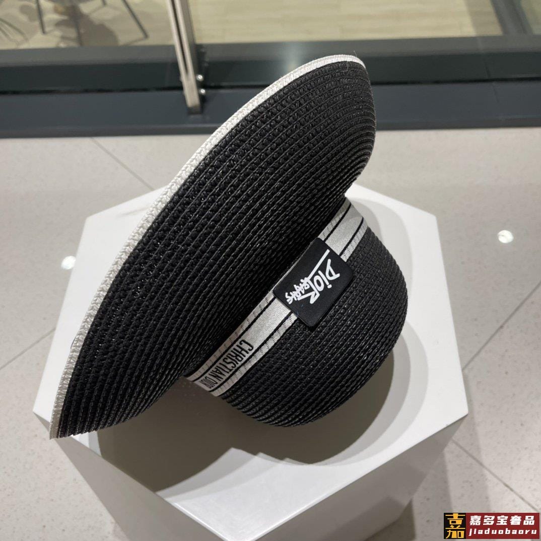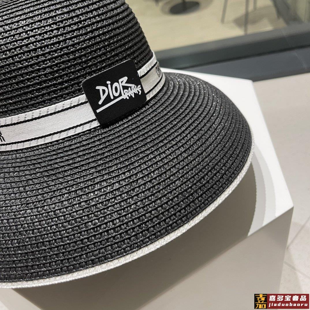 迪奥早春新款织带圆顶草帽赫本复古时尚女神气质单品出游必备 <