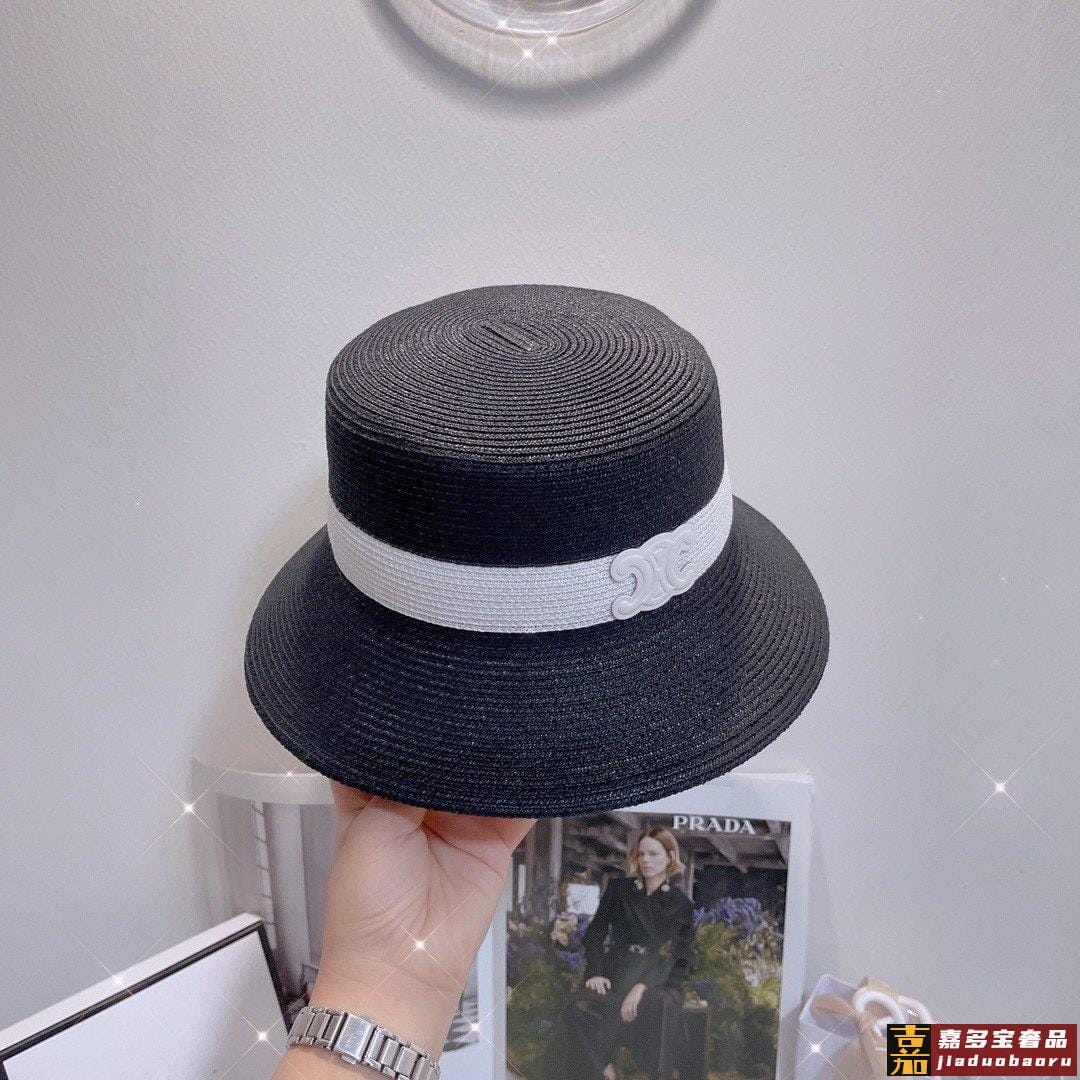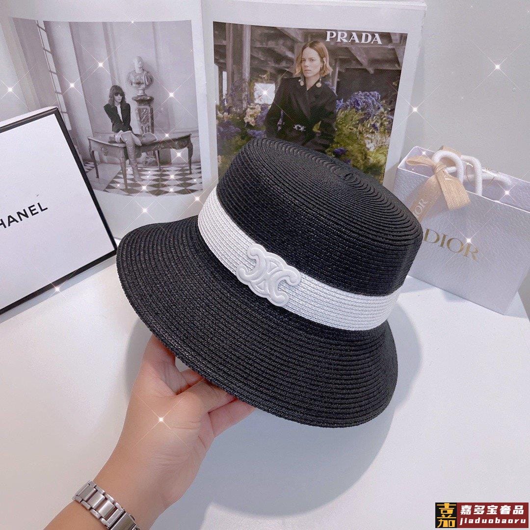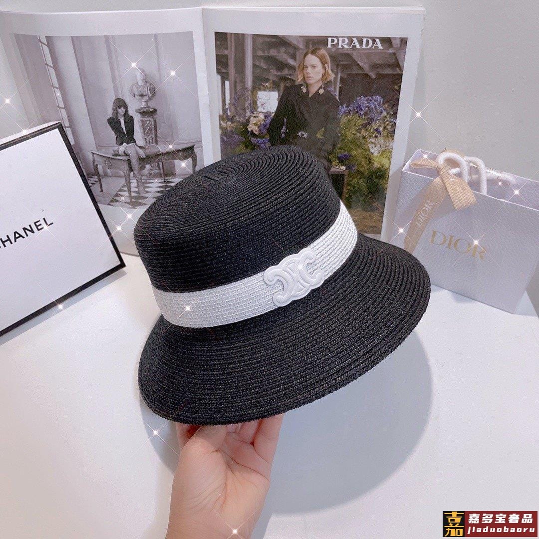 春夏拼色遮阳礼帽高品质定制细辫植草轻奢名媛风时尚洋气款日常聚