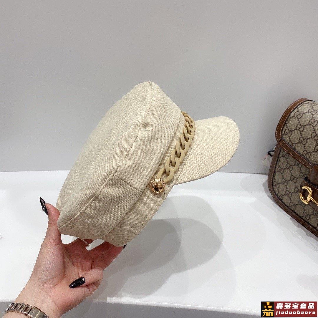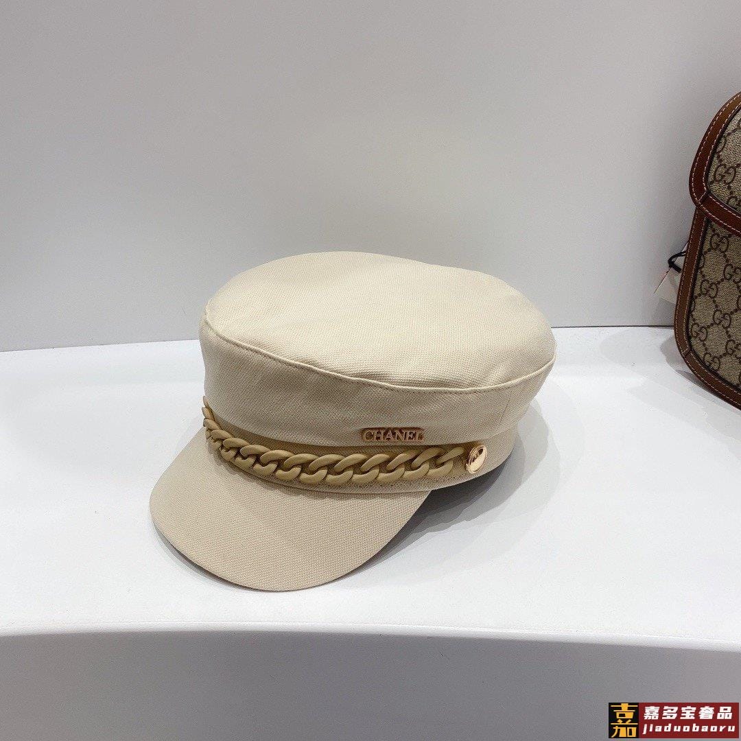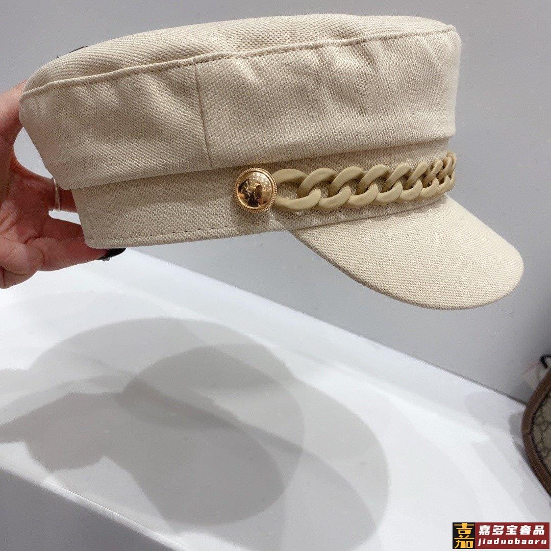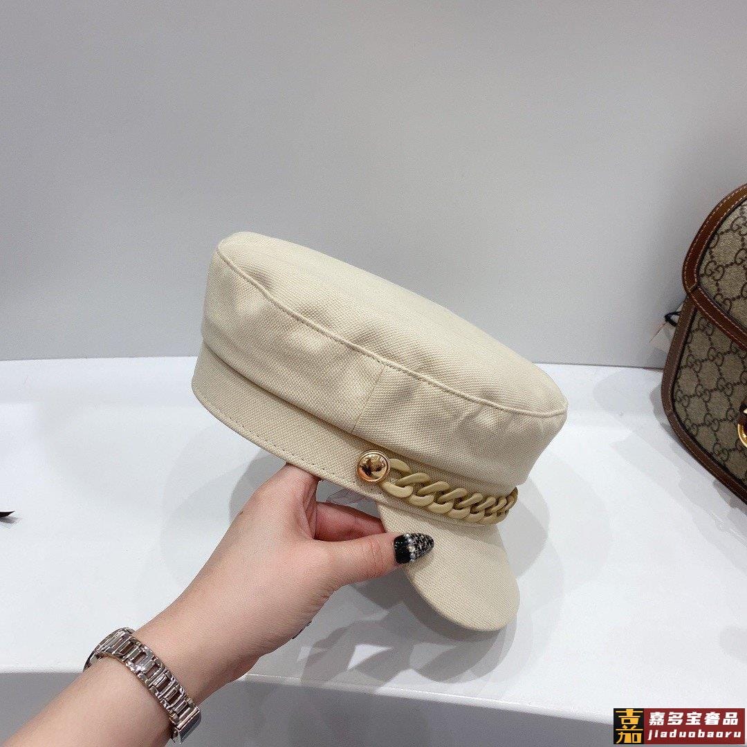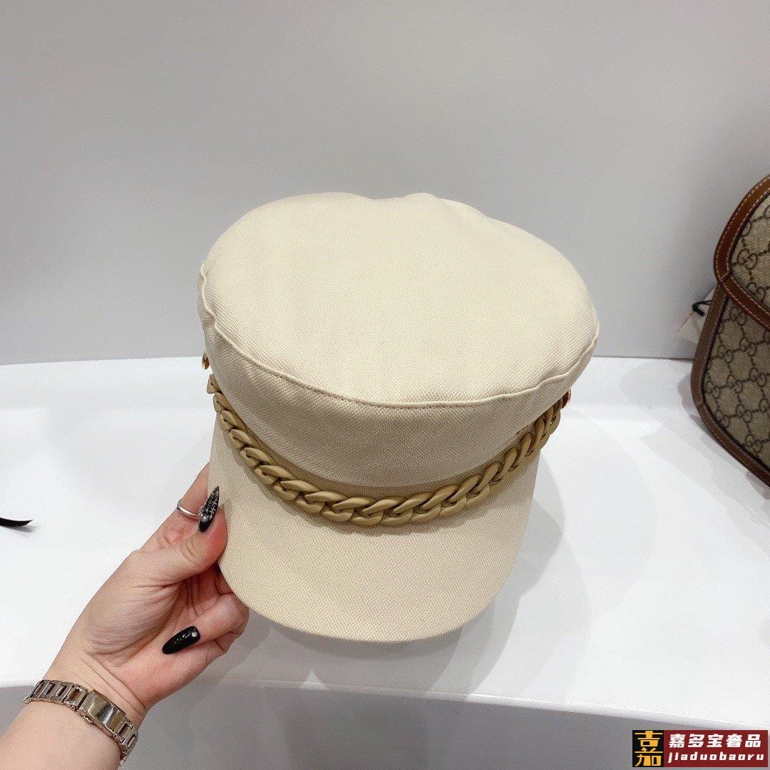 小香春夏新款磨砂果冻链条装饰纯棉军帽高档定制帆布爆款军帽颜色