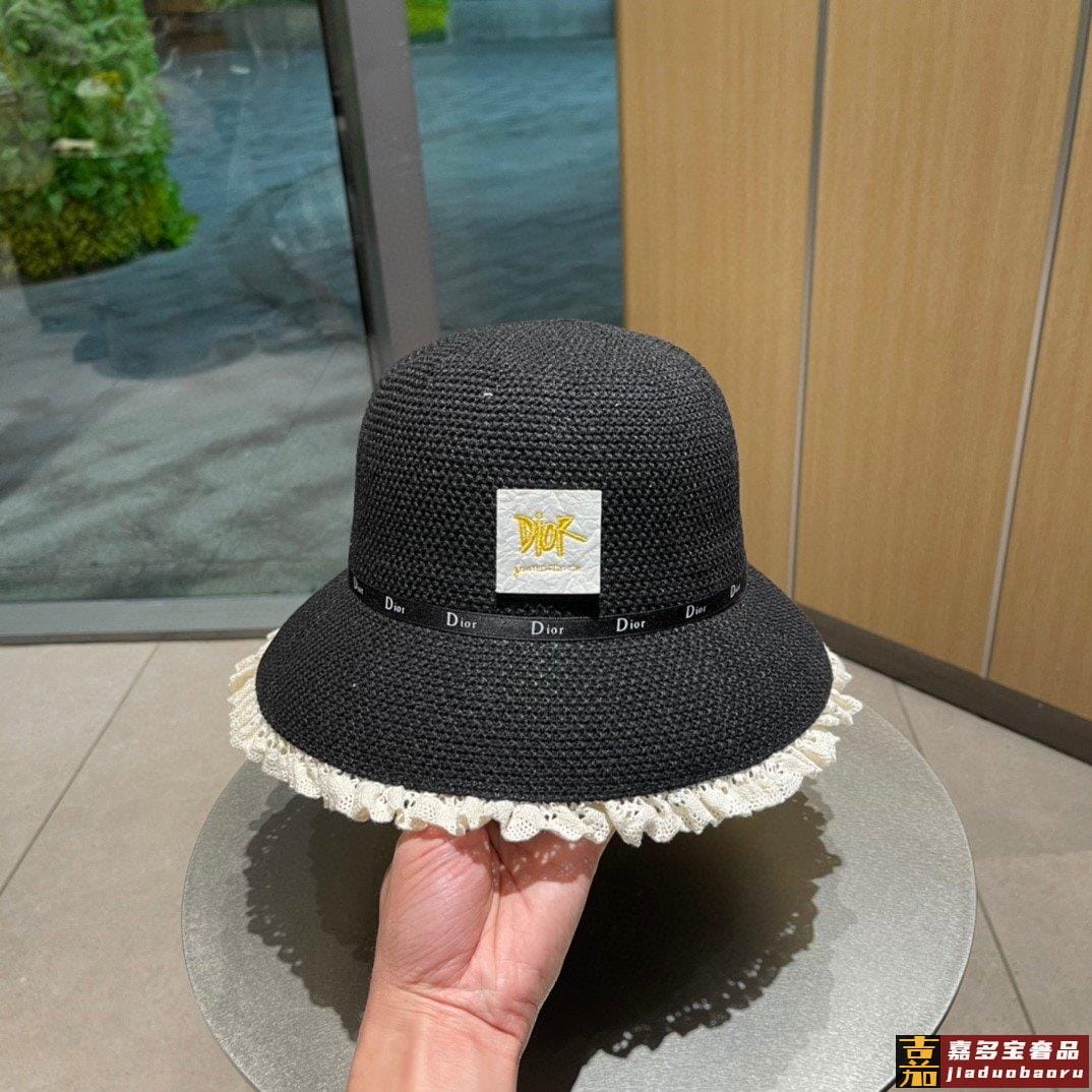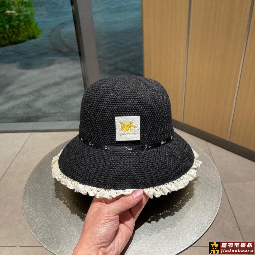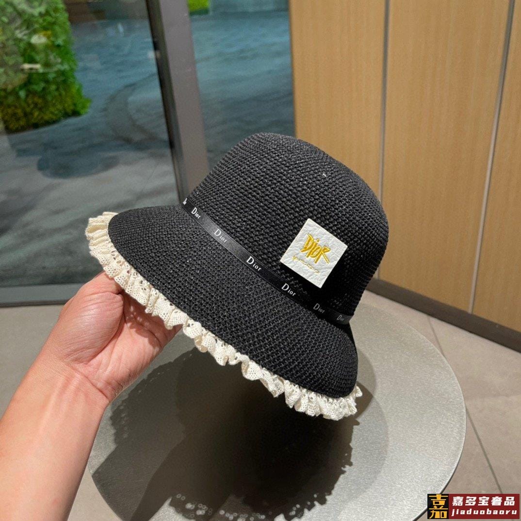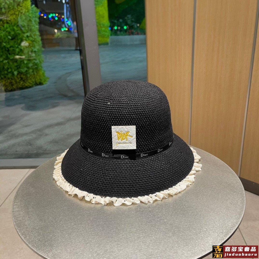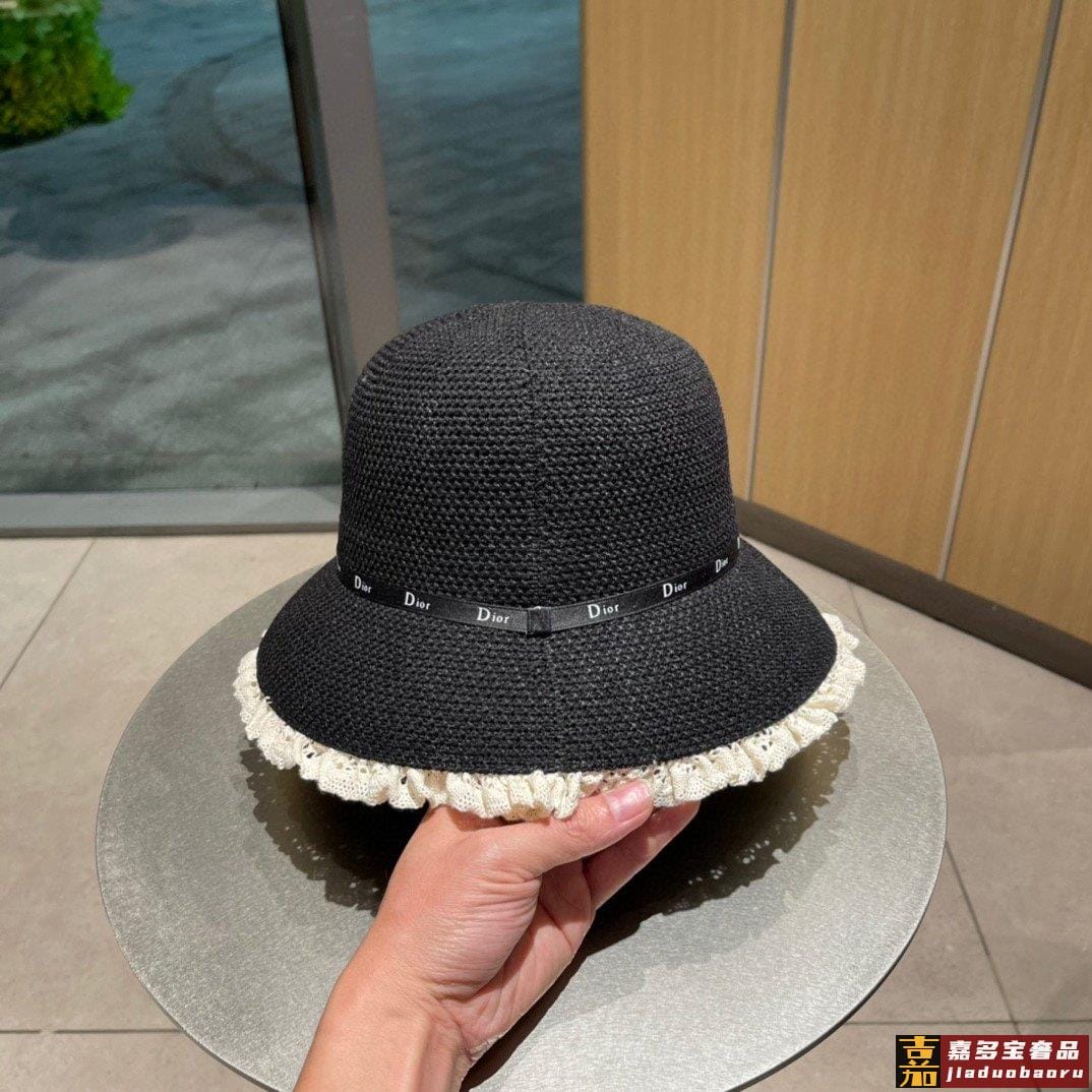 迪奥早春新款针织小礼帽渔夫帽呆萌小圆帽超嗲蕾丝边设计秋季百搭