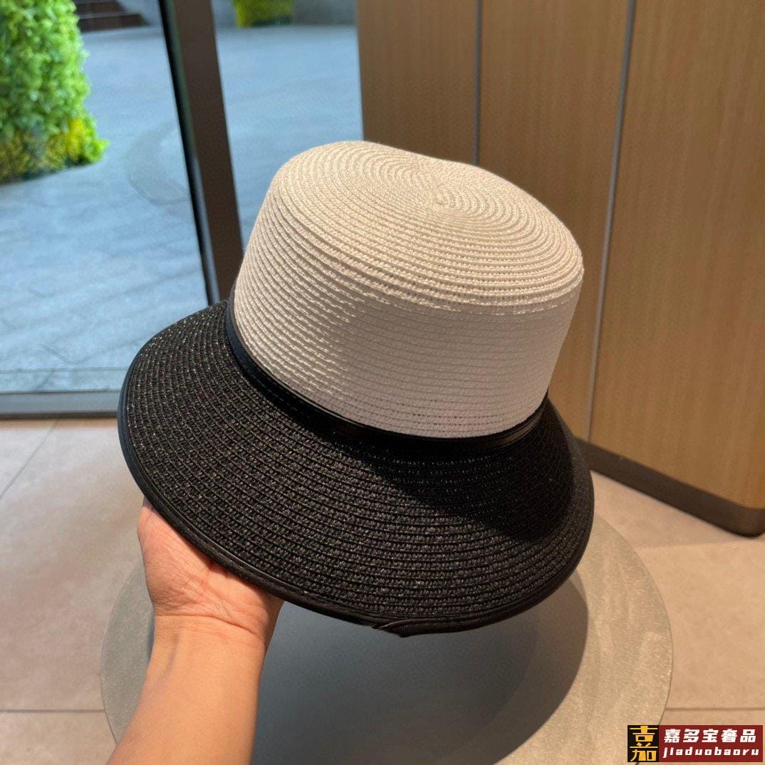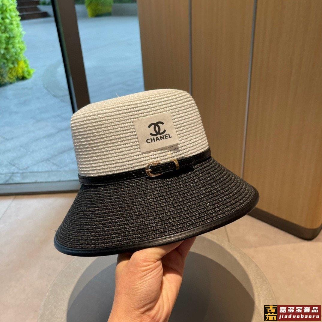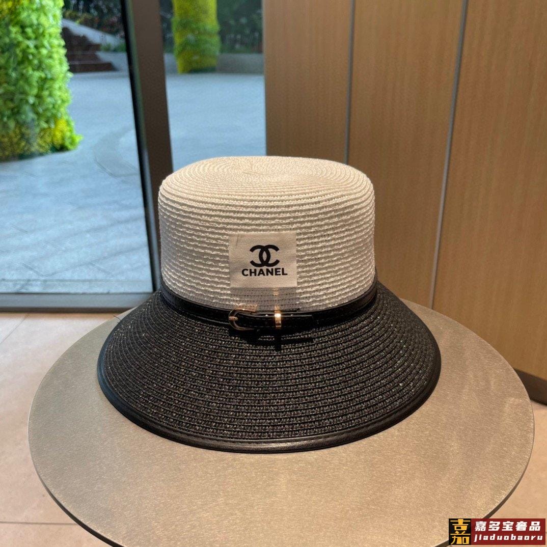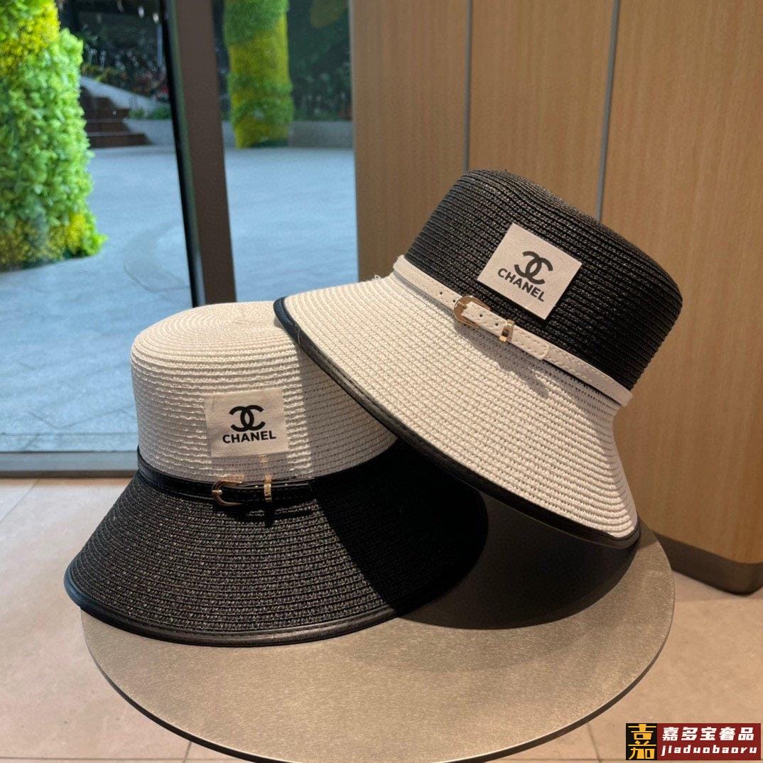 香奈儿新款草编拼色款盆帽草帽礼帽细节控简约大方百搭单品出街首
