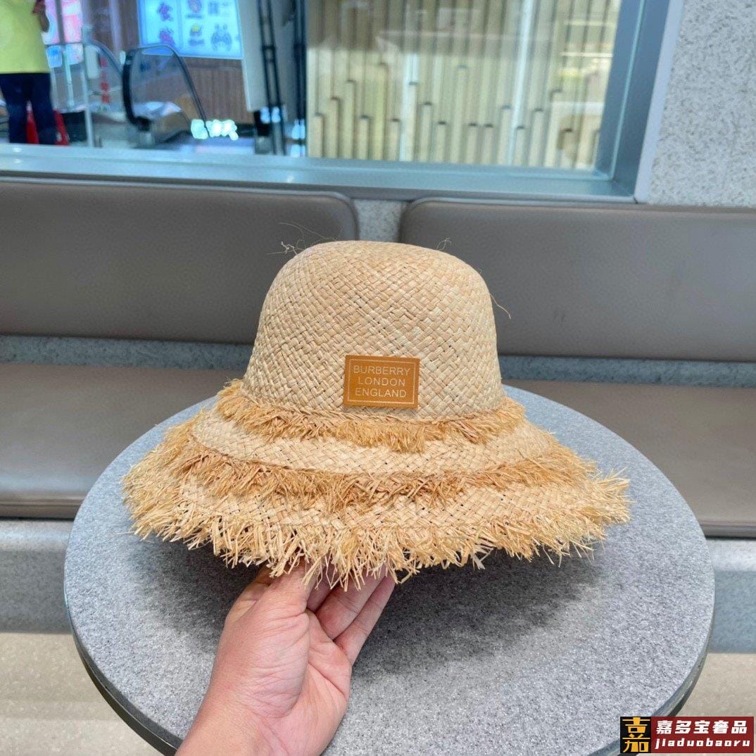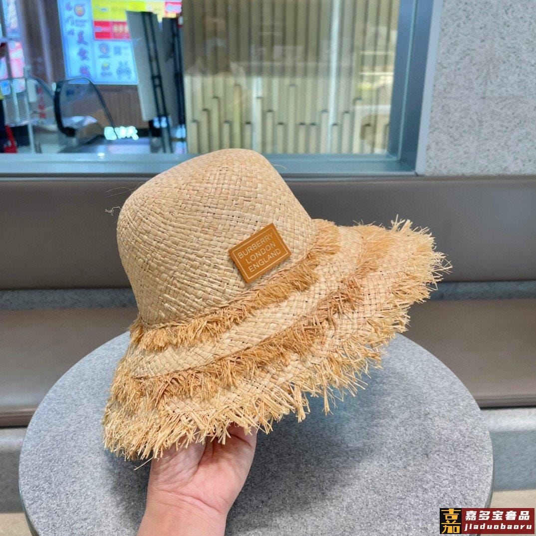 巴宝莉早春新款麦秆大帽檐草帽手工钩针制作非常秀气遮阳舒适风欧