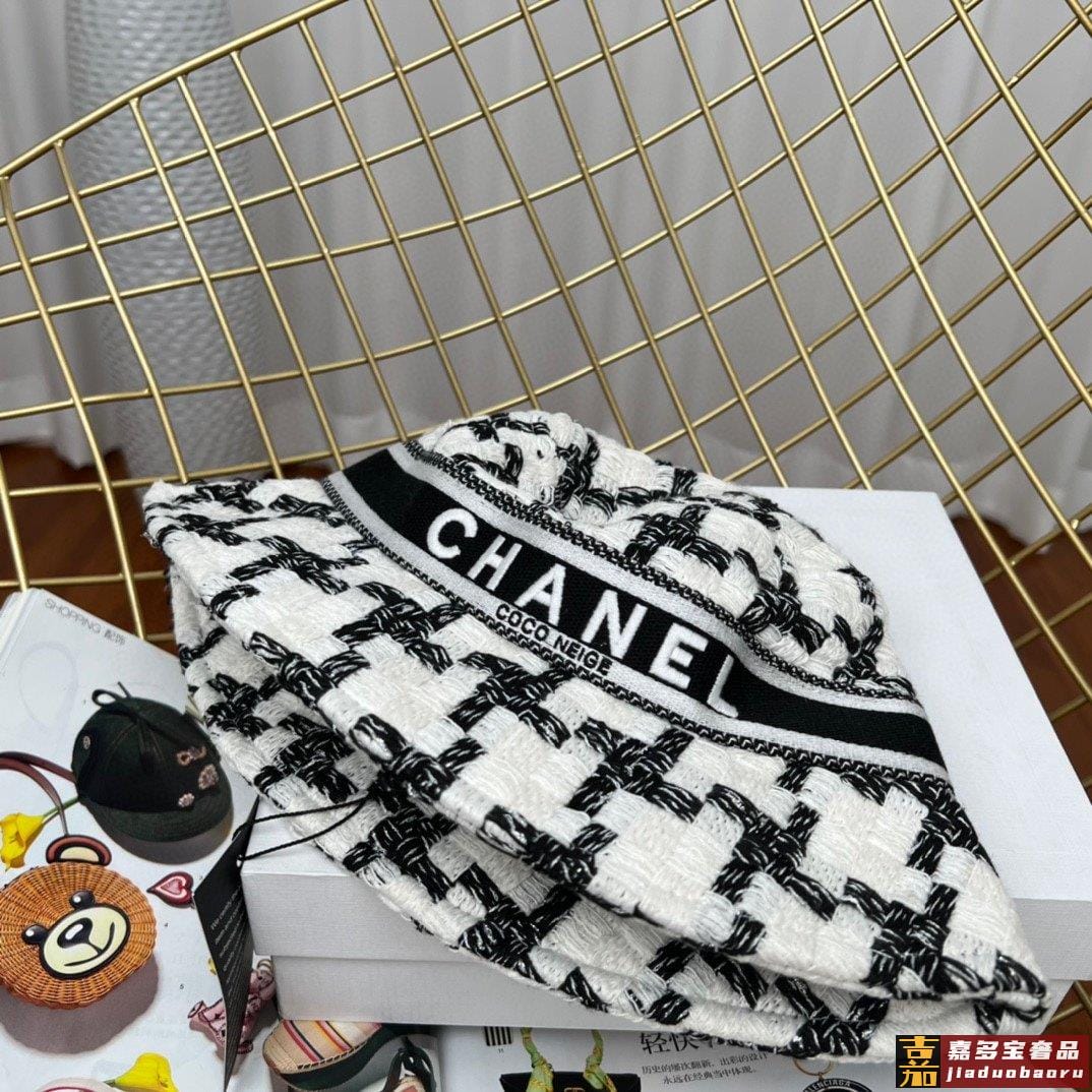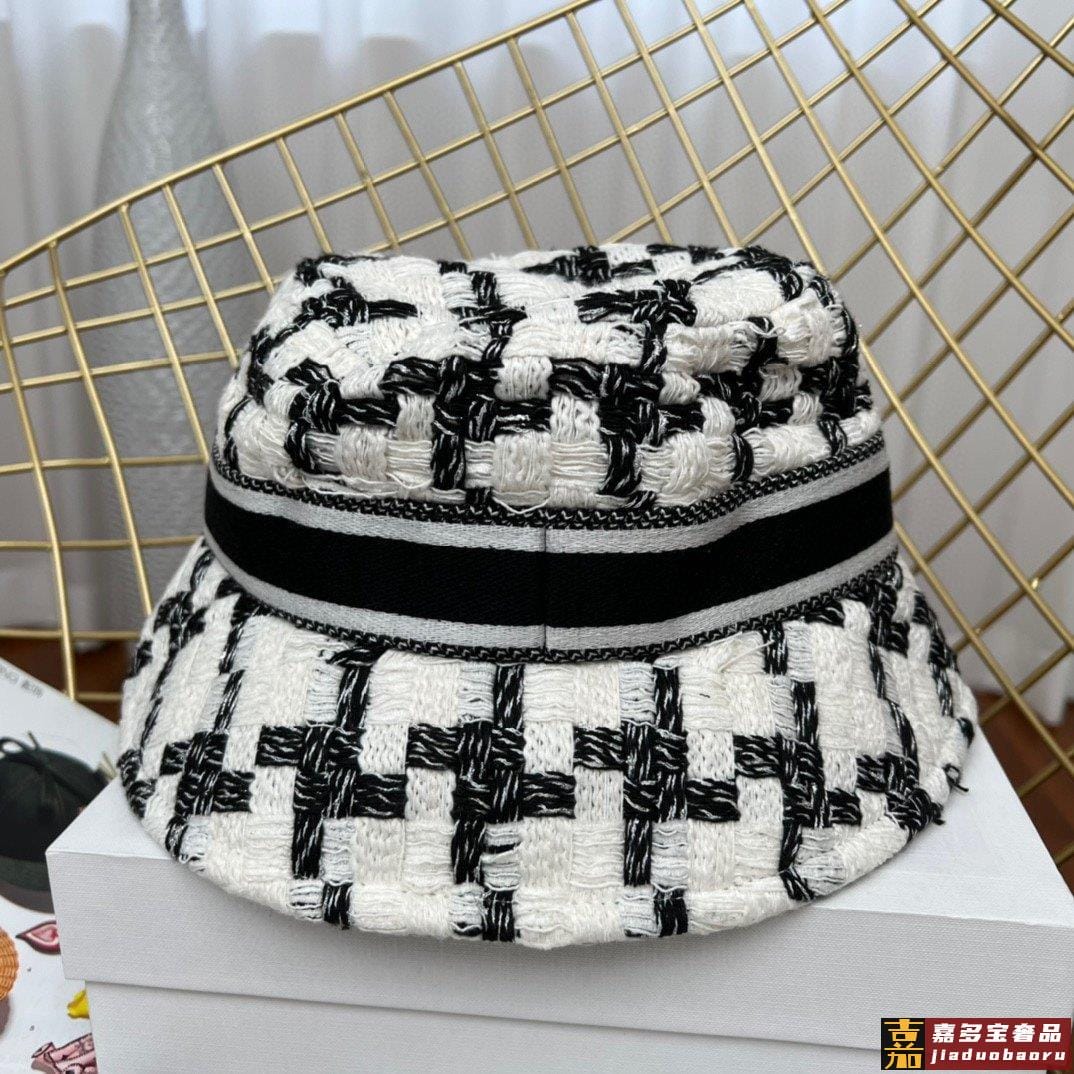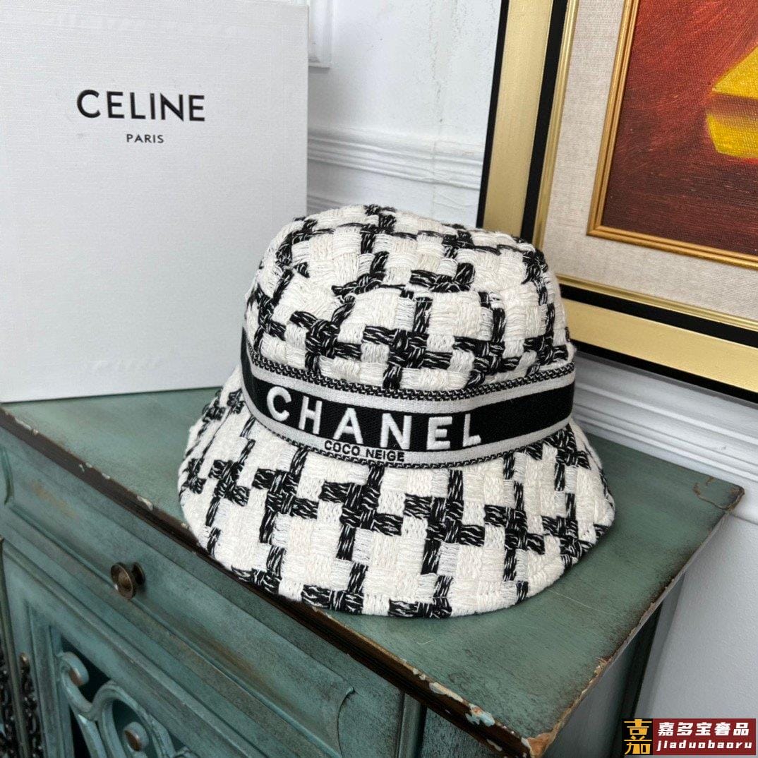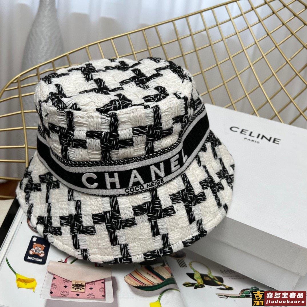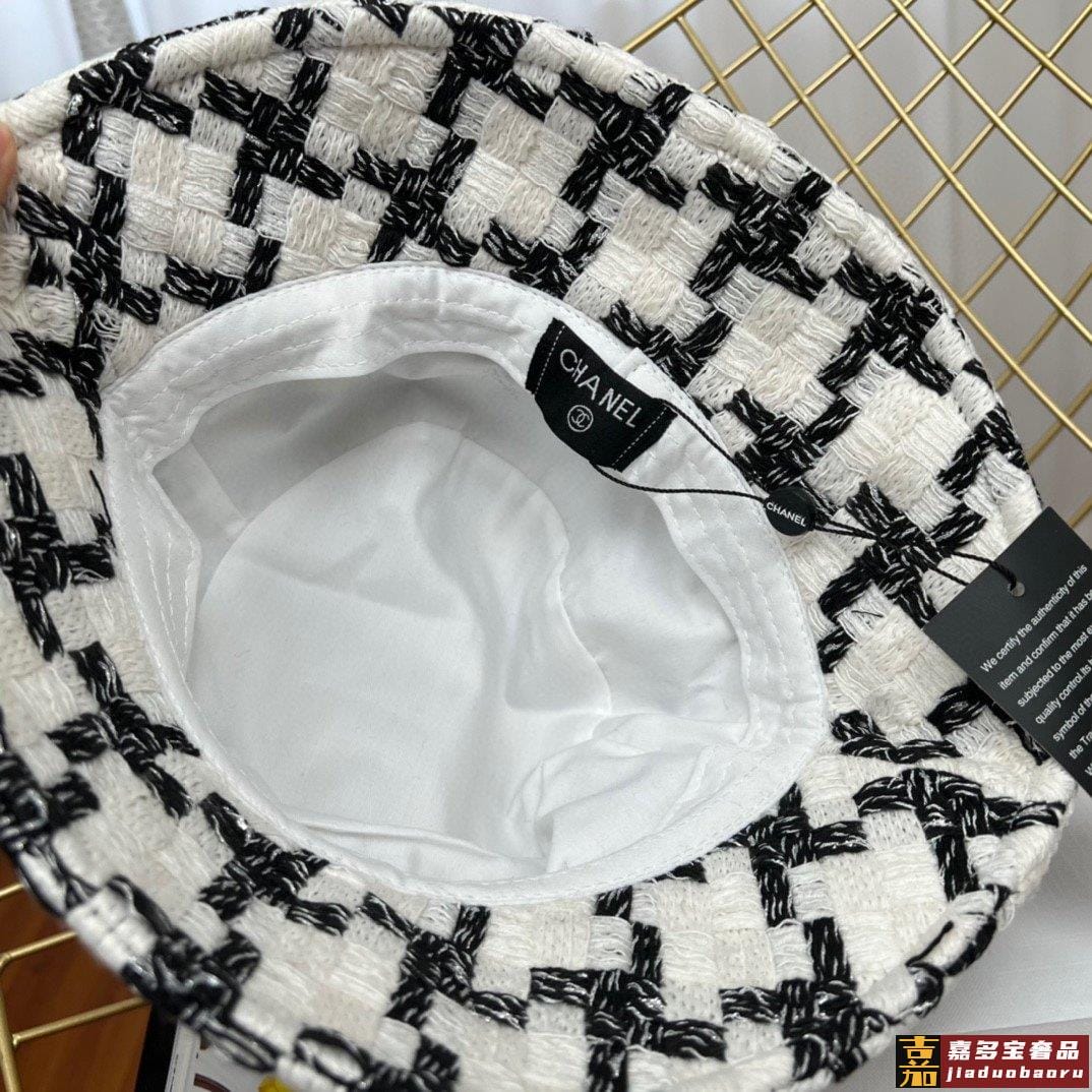 上新香奈儿渔夫帽千鸟格渔夫帽爆款黑白元素原单渔夫款