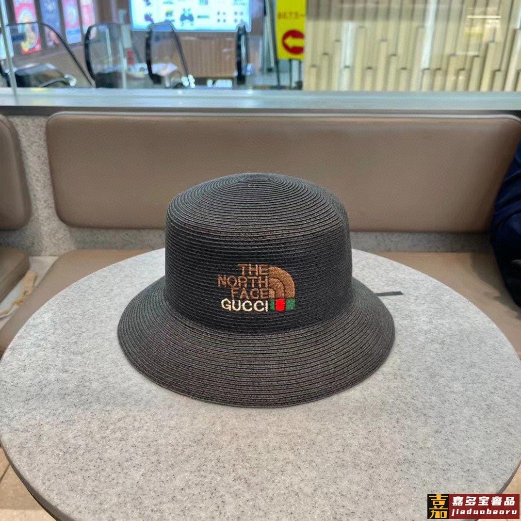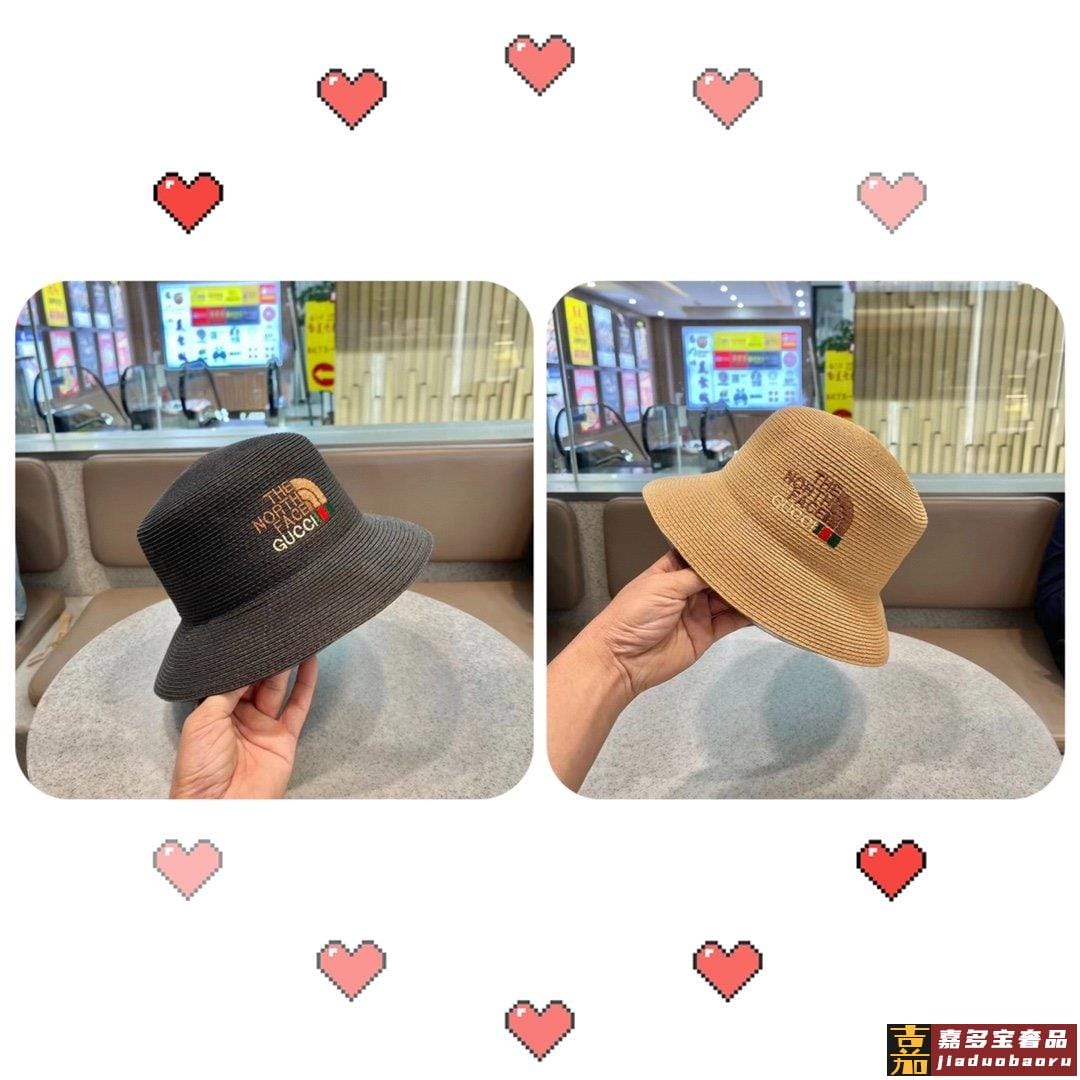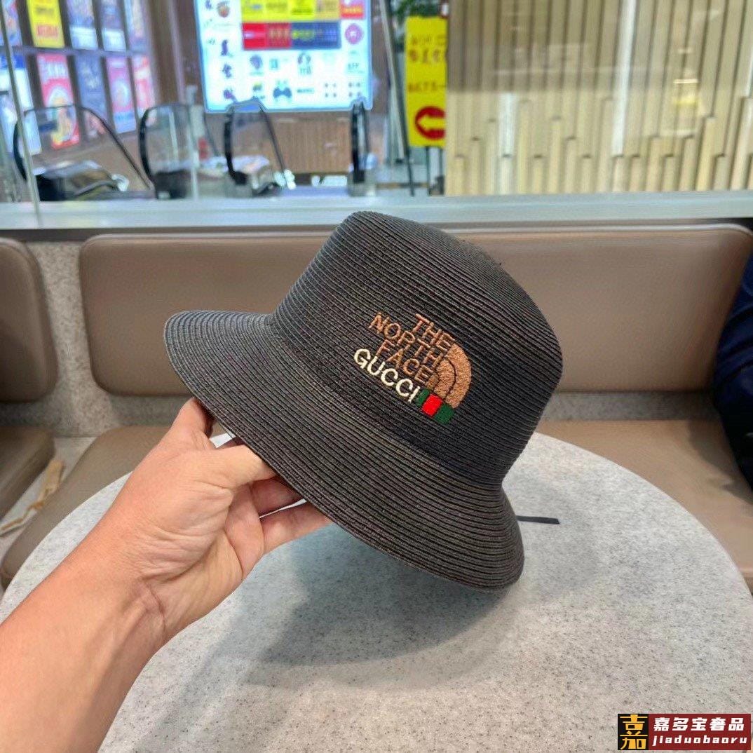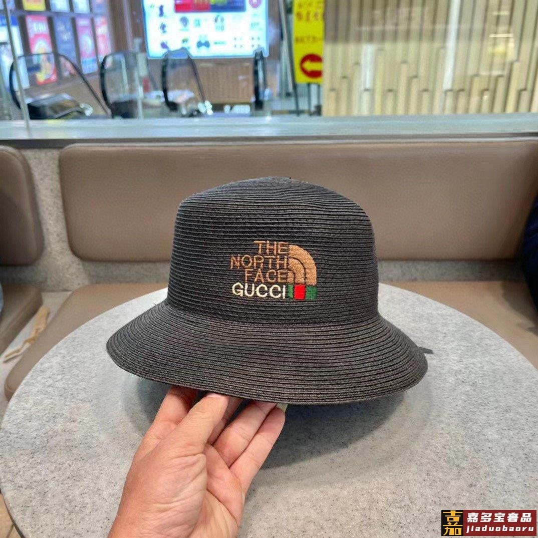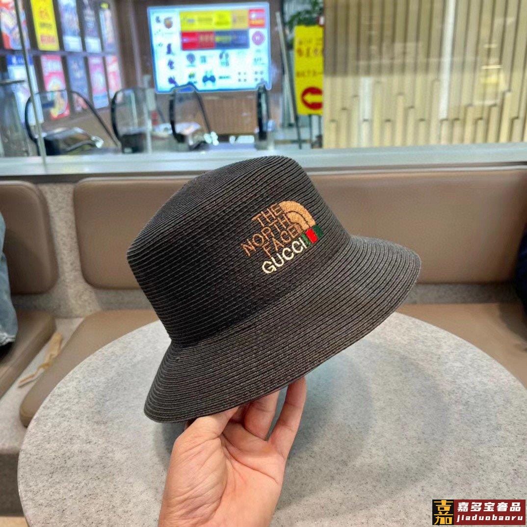 古奇早春新款北面草编遮阳草帽盆帽沙滩风简约大方百搭单品出街首