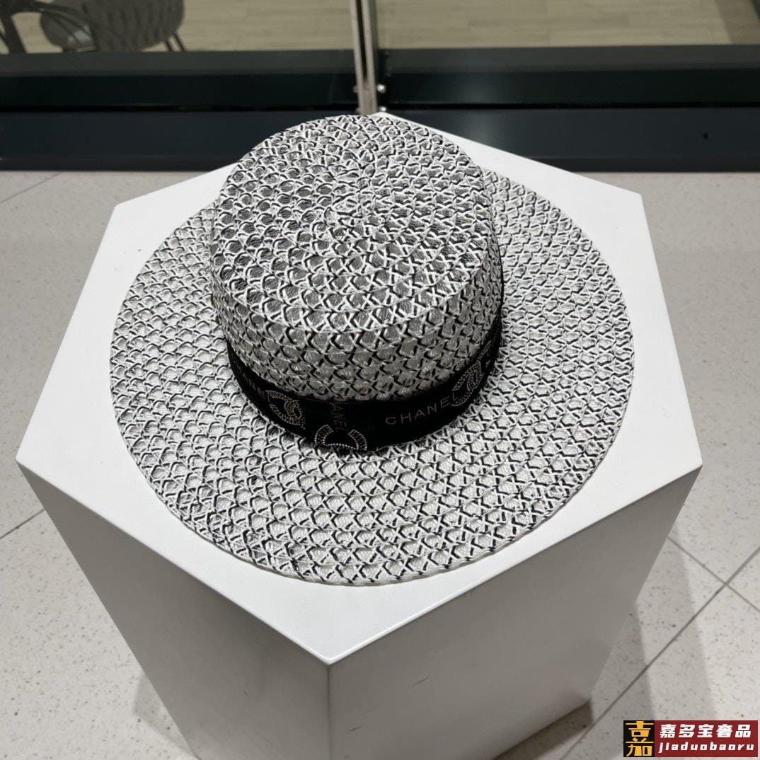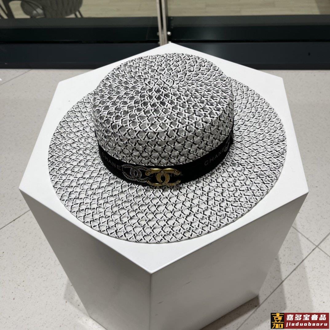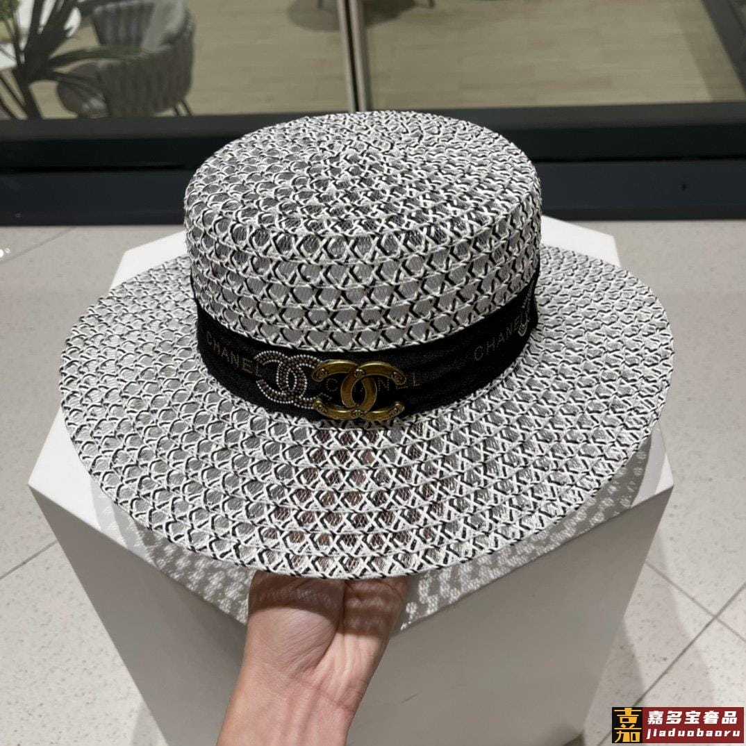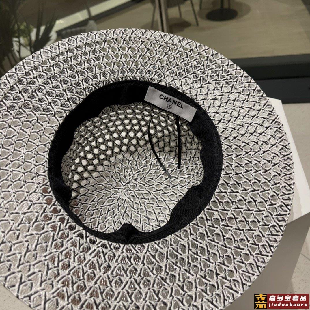 香奈儿新款草编平顶遮阳草帽盆帽沙滩风简约大方百搭单品出街首选