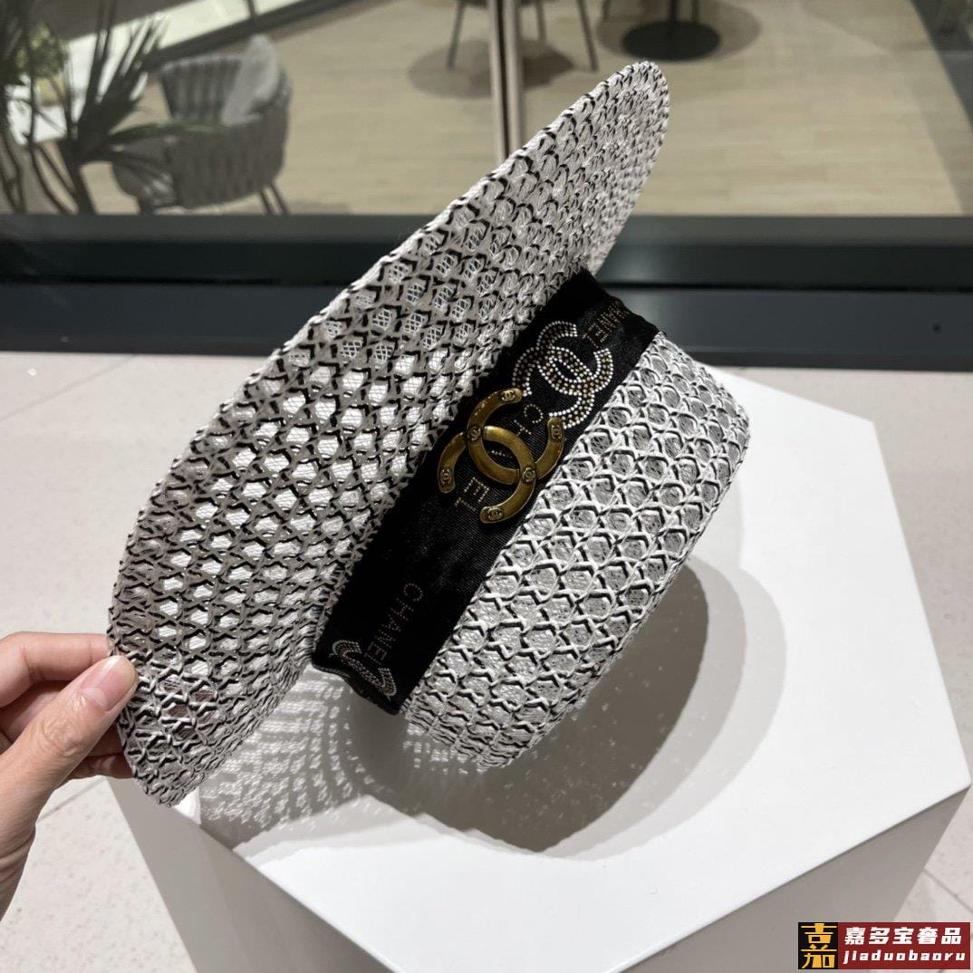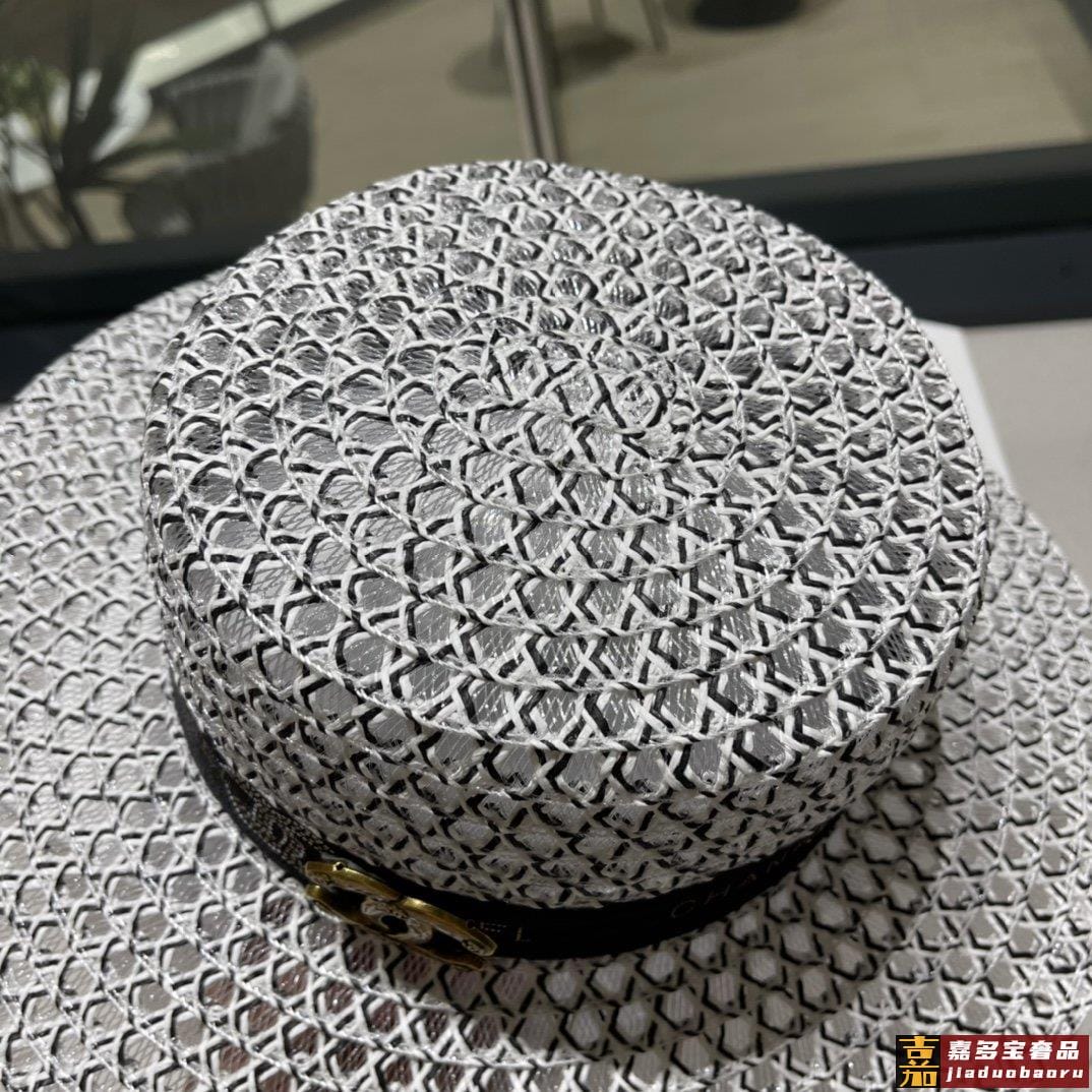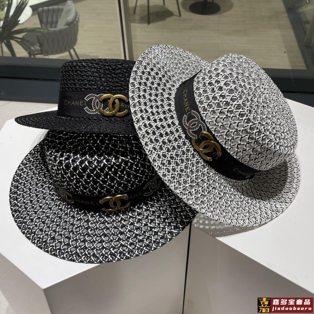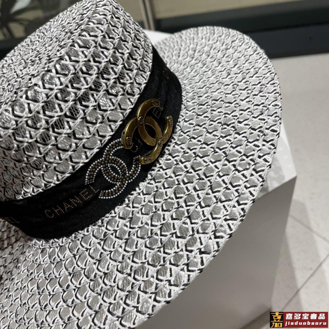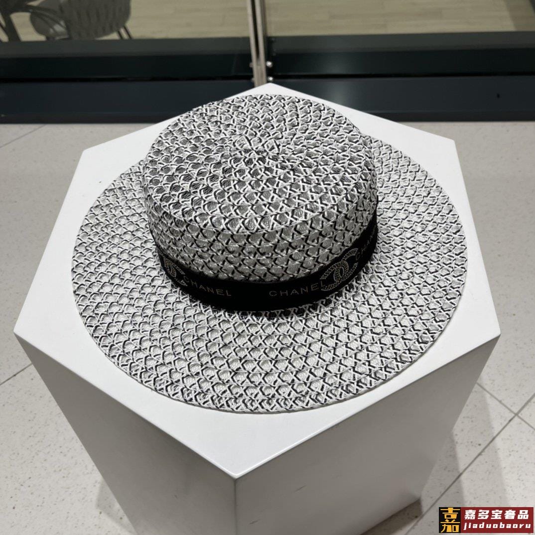 香奈儿新款草编平顶遮阳草帽盆帽沙滩风简约大方百搭单品出街首选