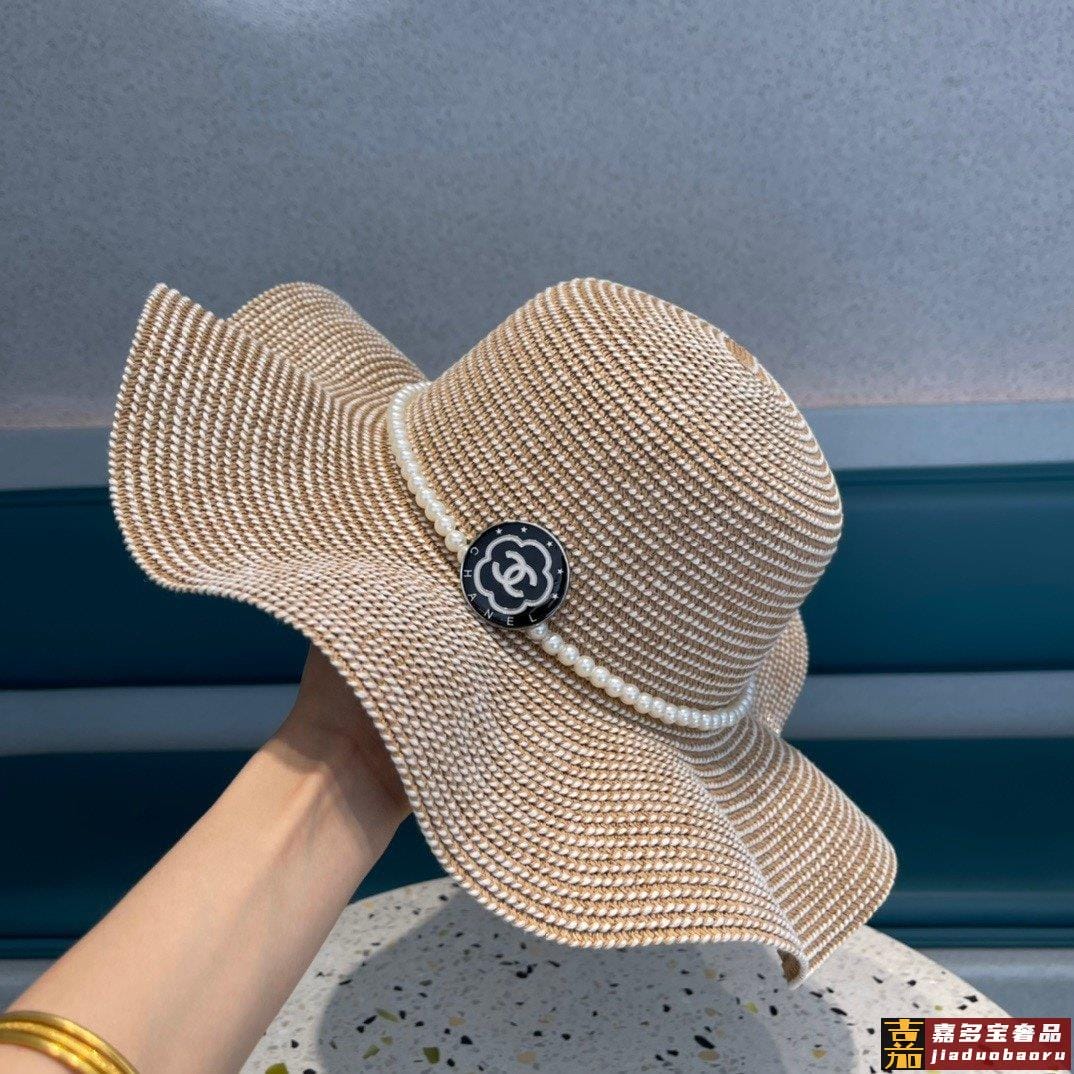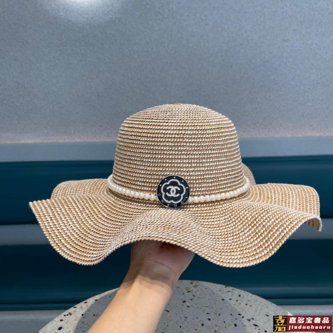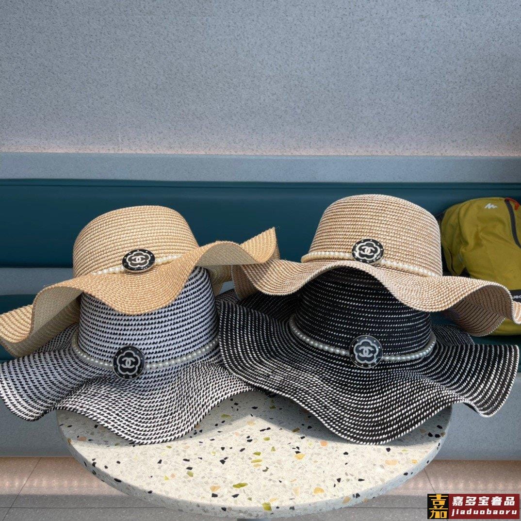 香奈儿夏季新款太阳帽遮阳大草帽波浪边设计风格轻盈可折叠出游携