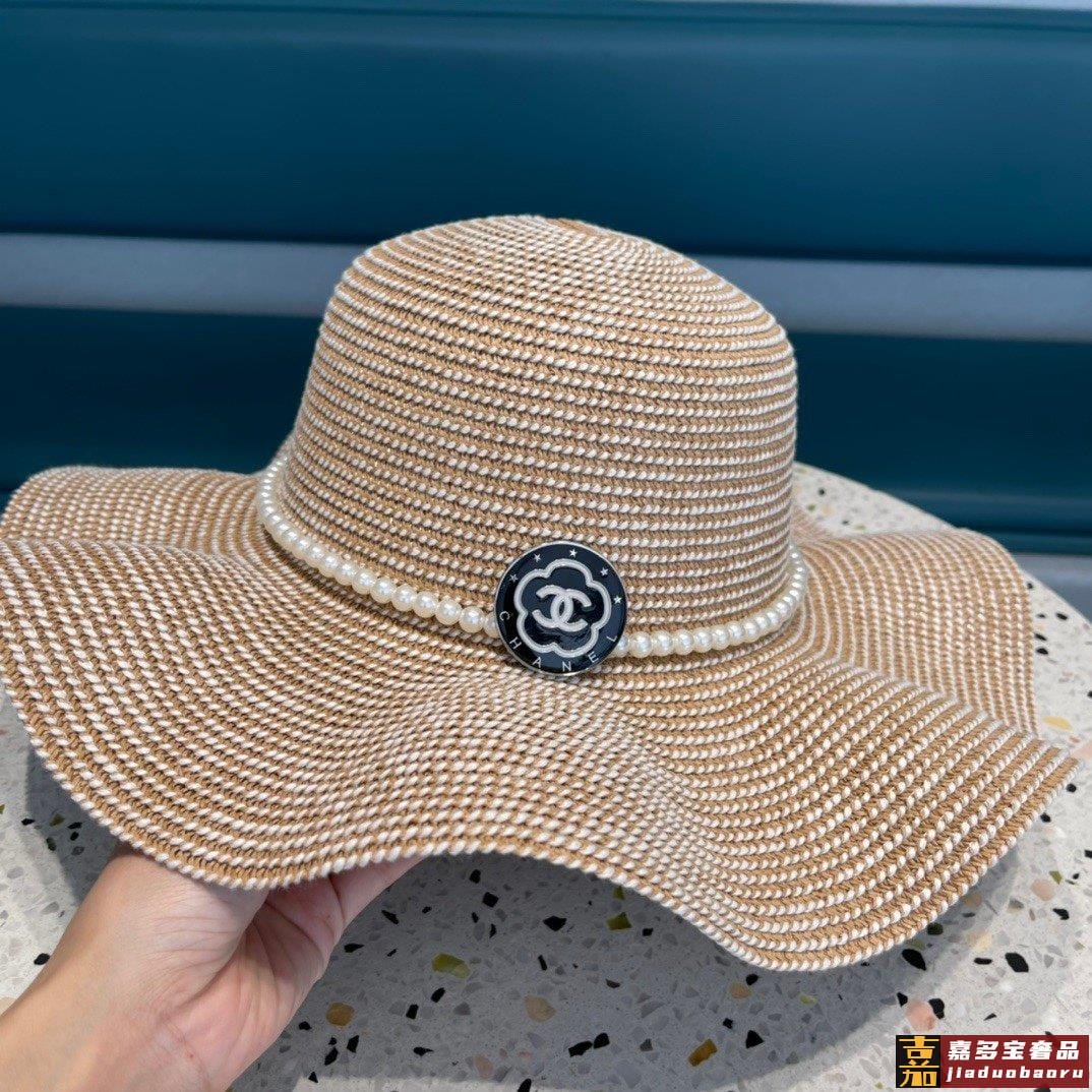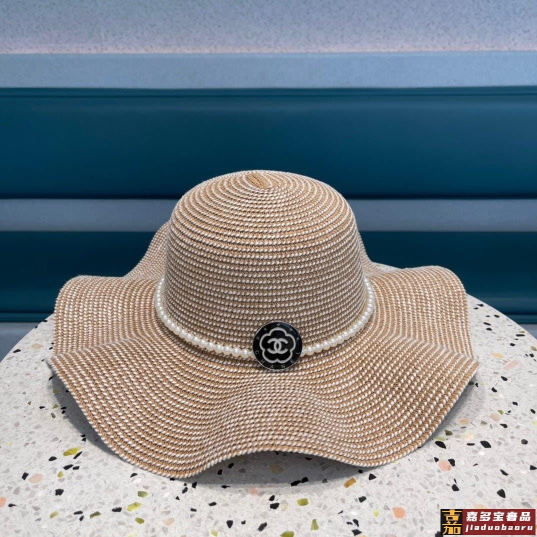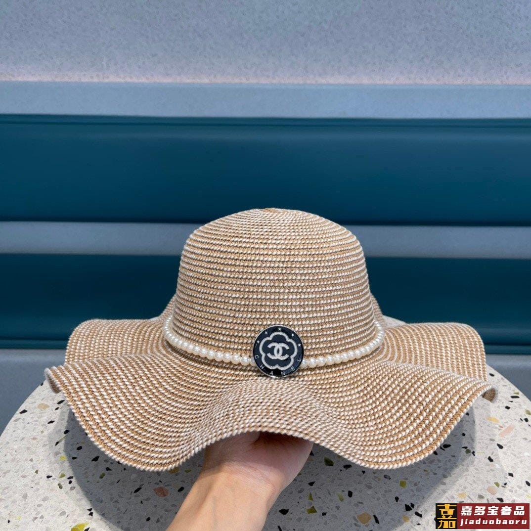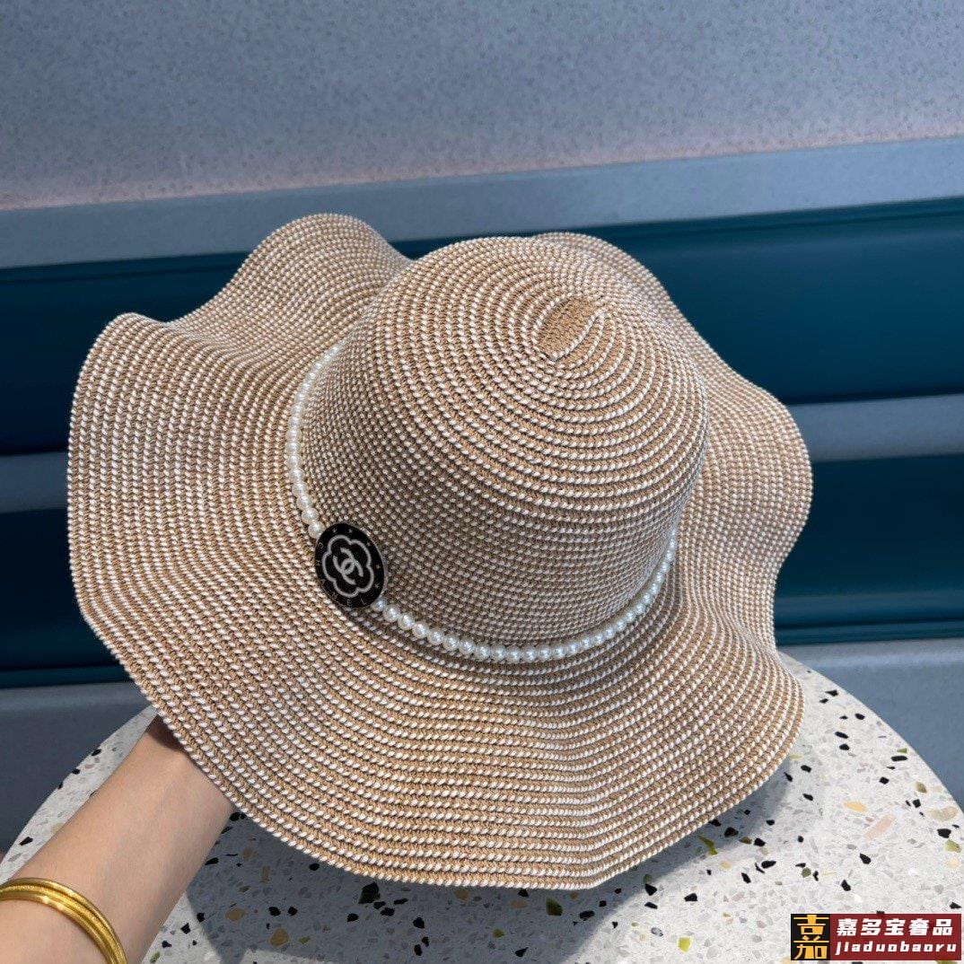 香奈儿夏季新款太阳帽遮阳大草帽波浪边设计风格轻盈可折叠出游携
