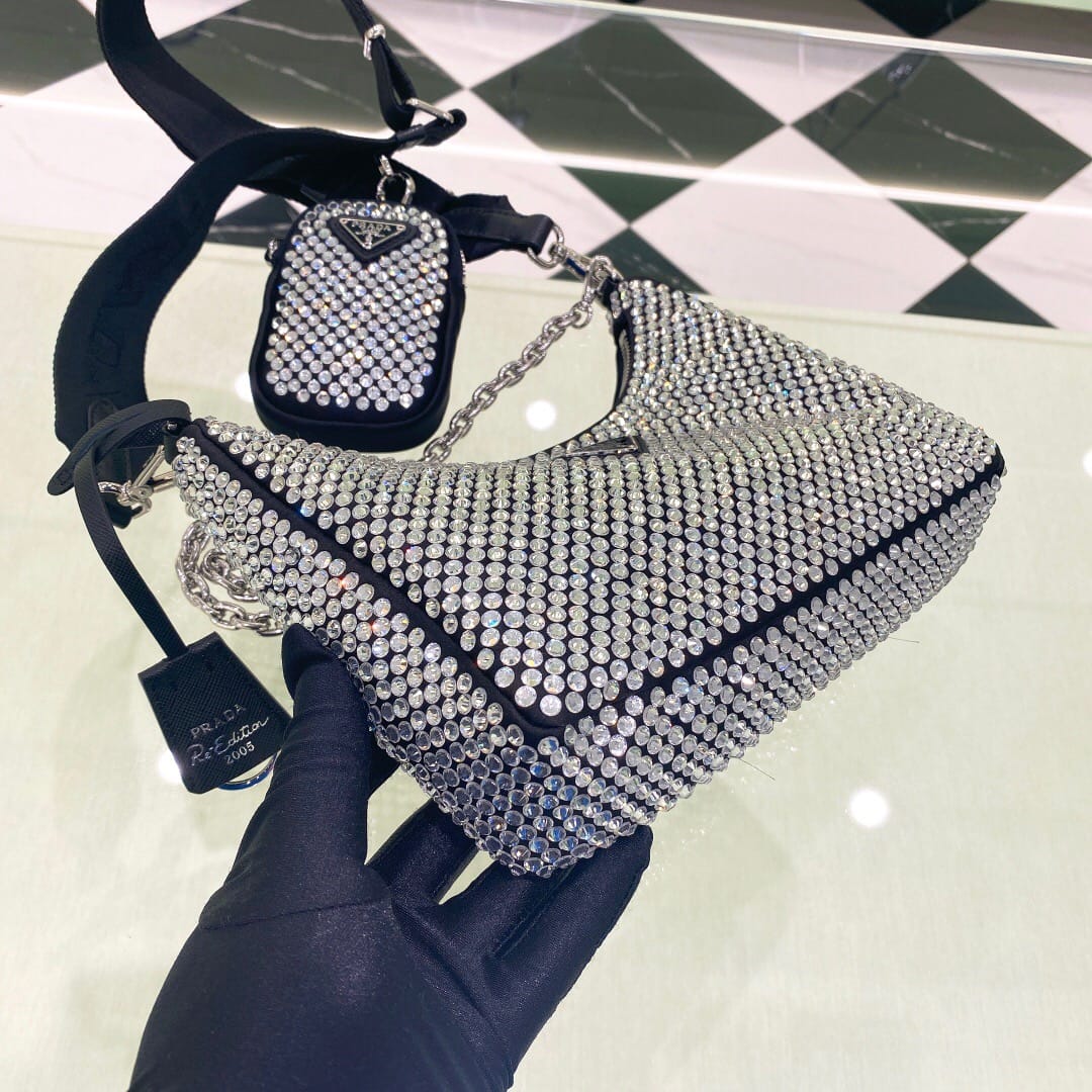 P家?2021秋冬新款Cleo镶钻腋下包,型号1BC169,
