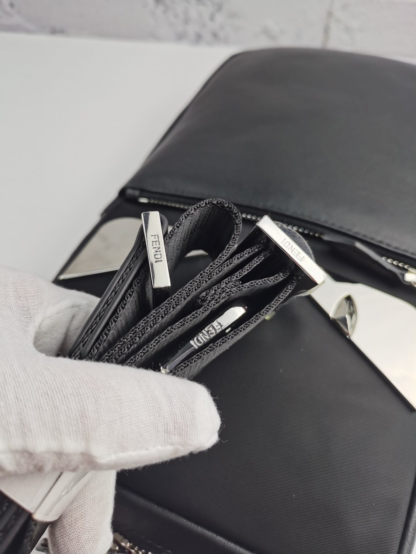 品牌: FENDI 芬迪 款式: 竖款白铁片胸包