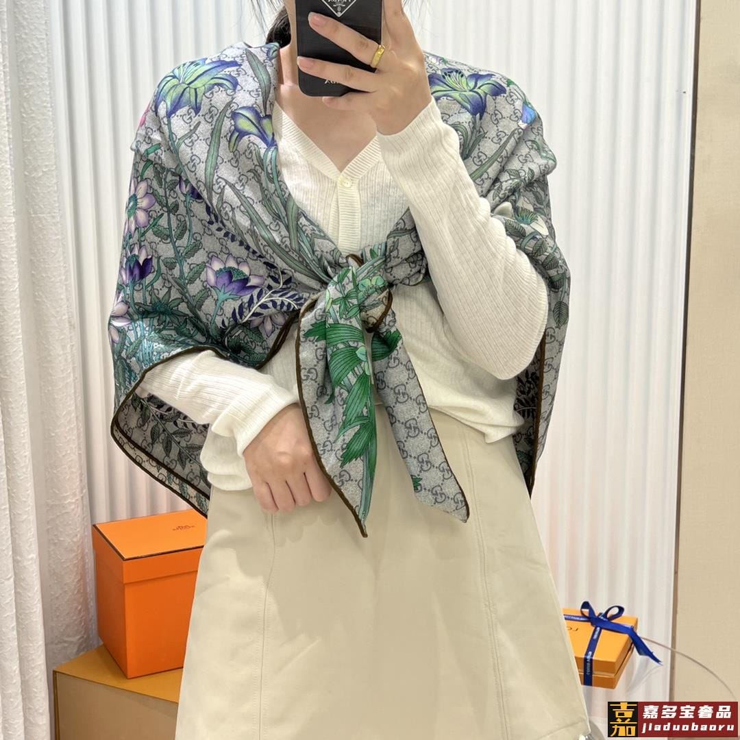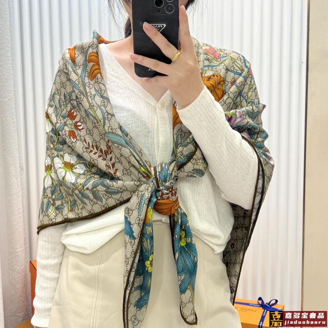 古奇专柜新款缤纷花束羊绒长巾美翻了流泪御用殿堂级极品新款采用