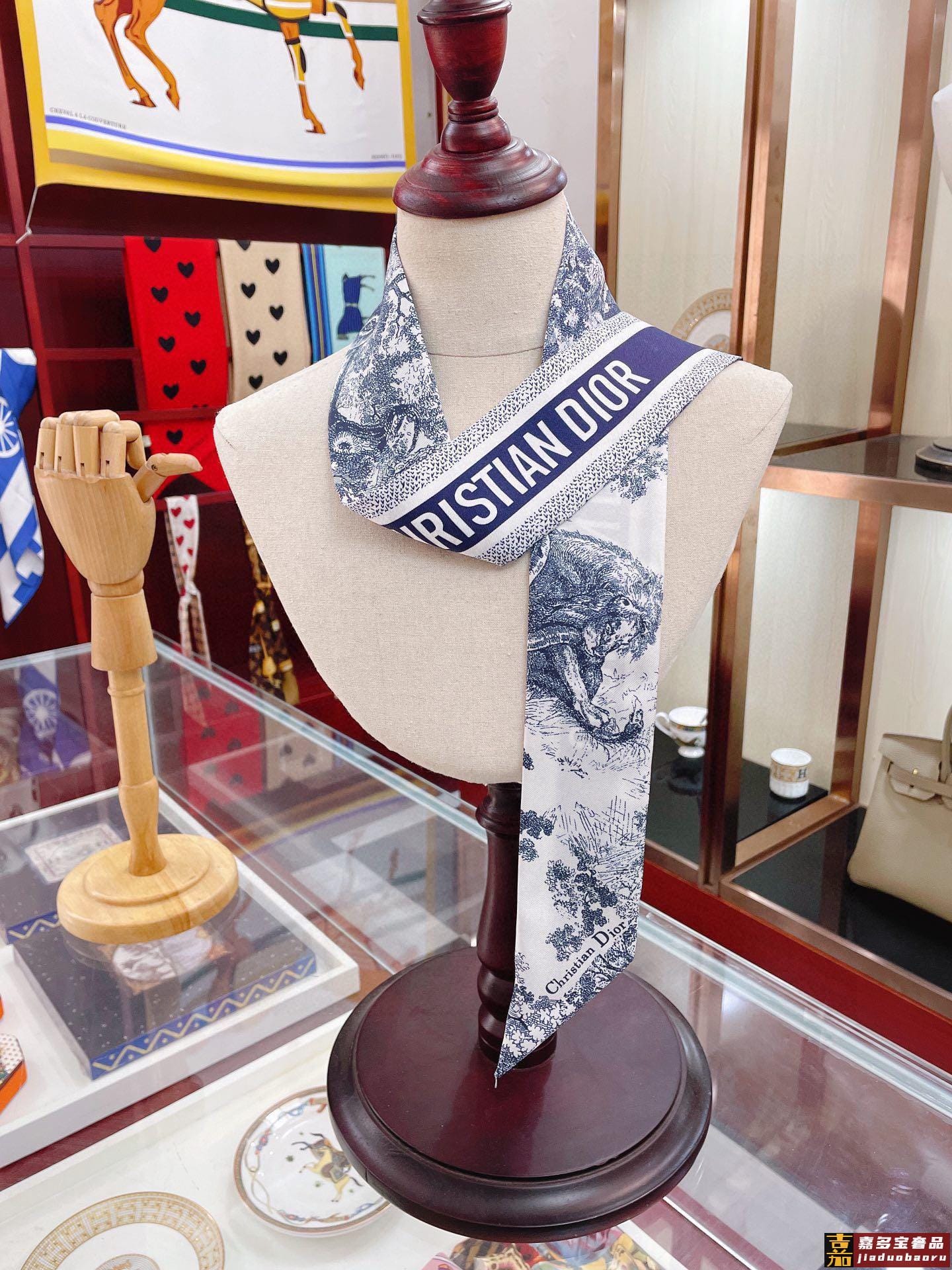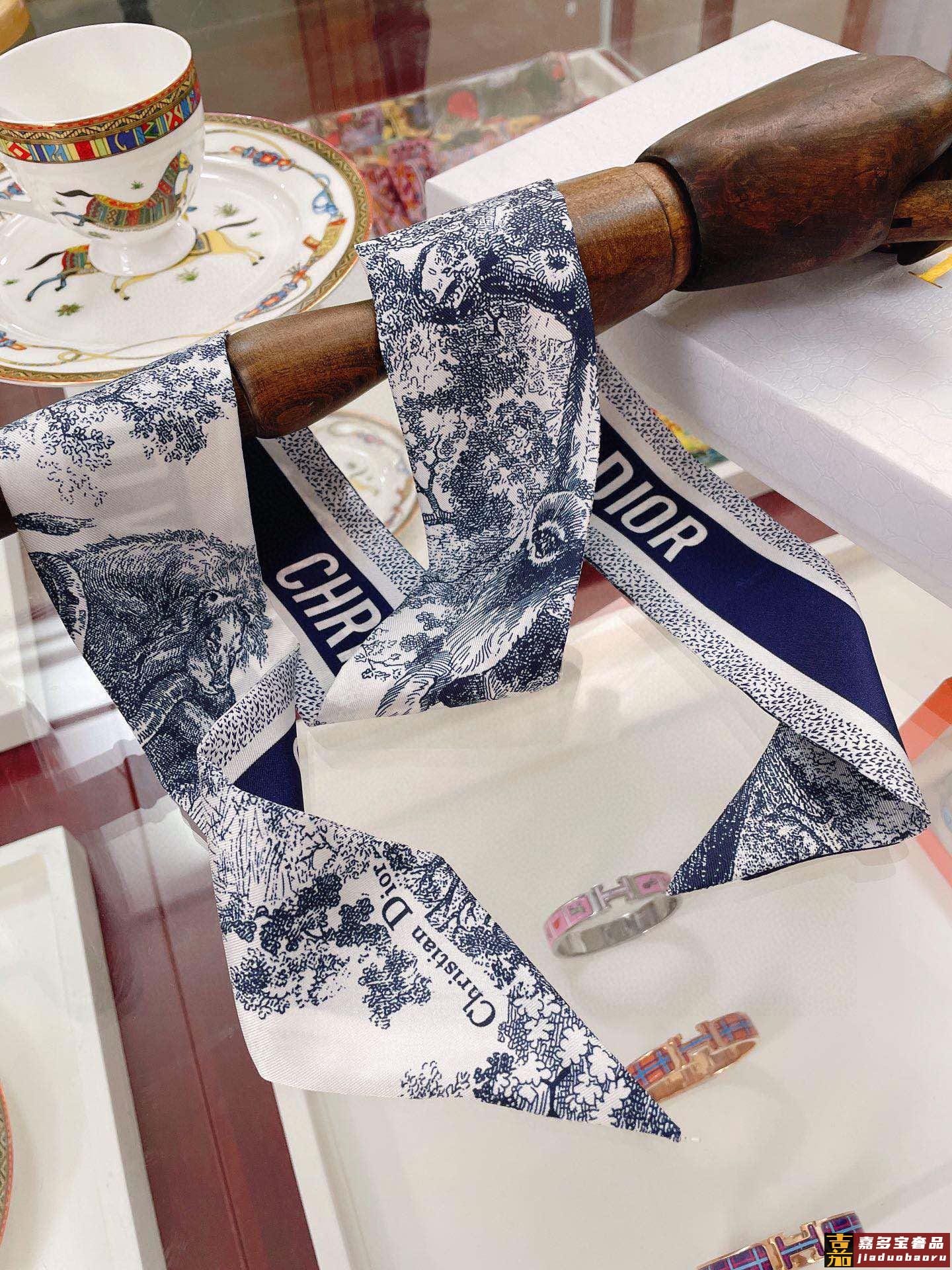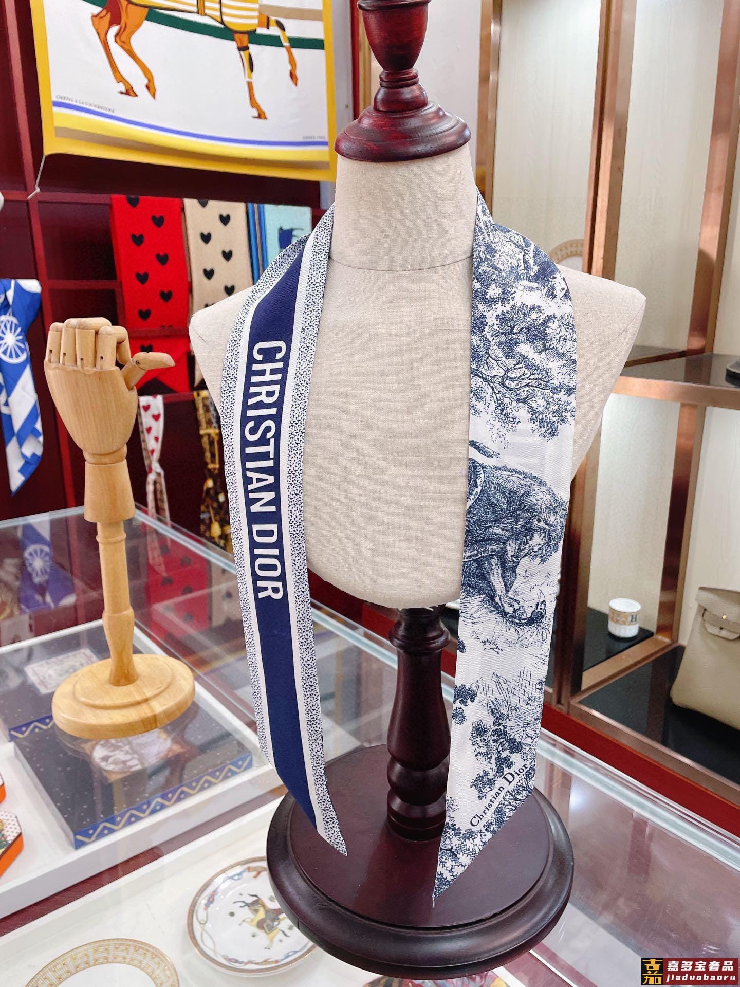 新款这款丝巾饰以印花回溯年推出的经典图案采用海军蓝色桑蚕丝斜