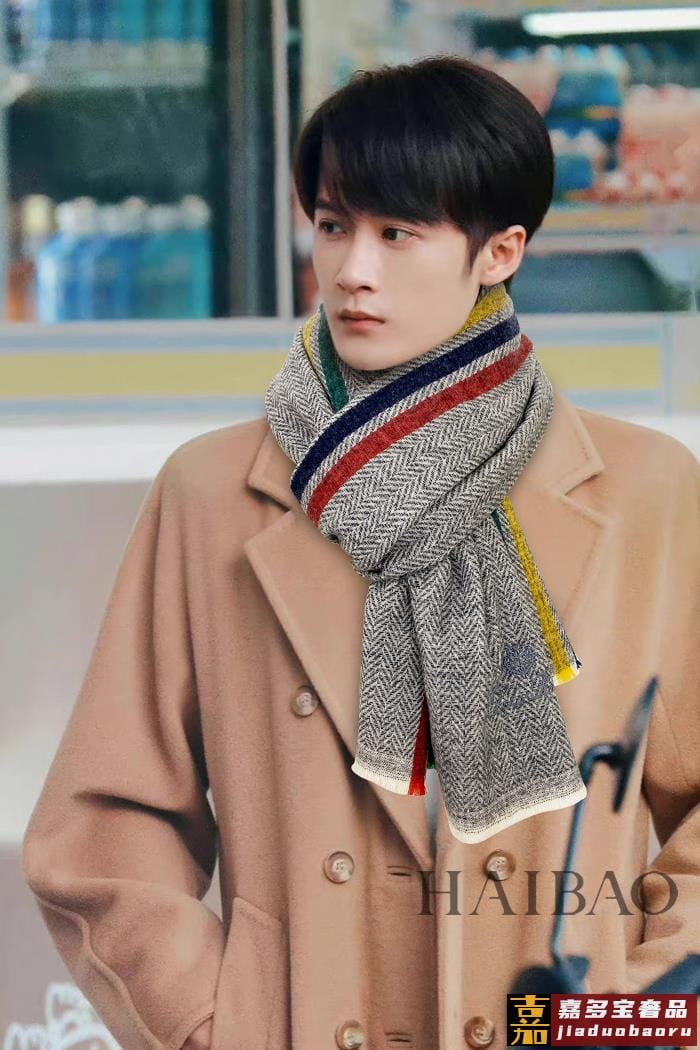家专柜经典新款人字彩条纹长巾中性款从款式到面料都很赞人字纹羊