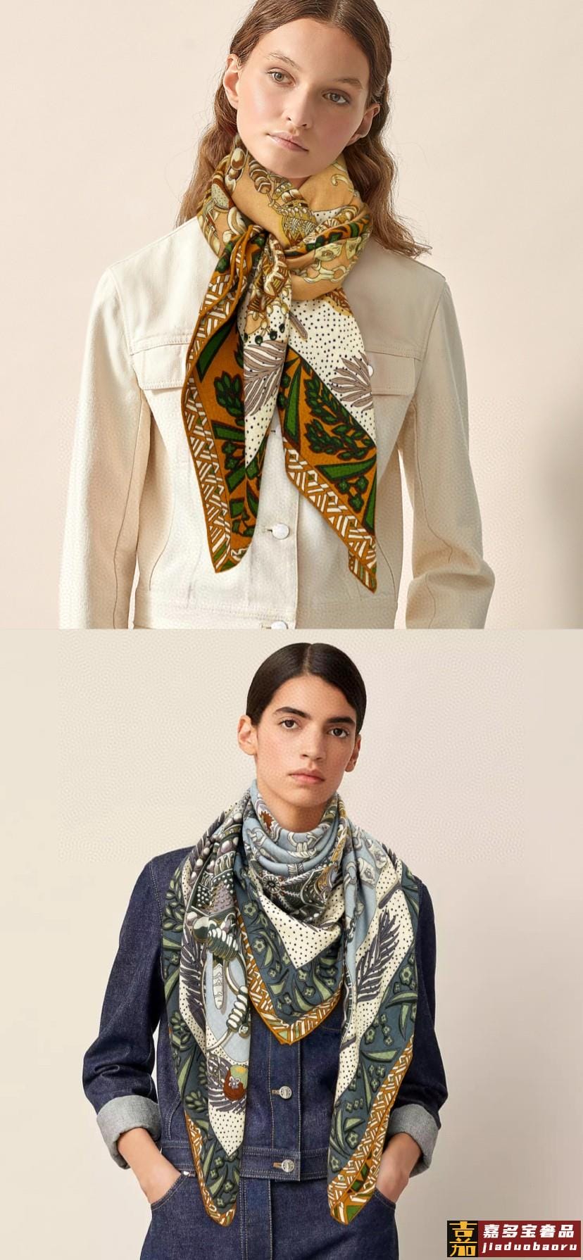 真丝新品专柜同步真心赞驴家编织花纹真丝方巾真丝围巾放大经典图