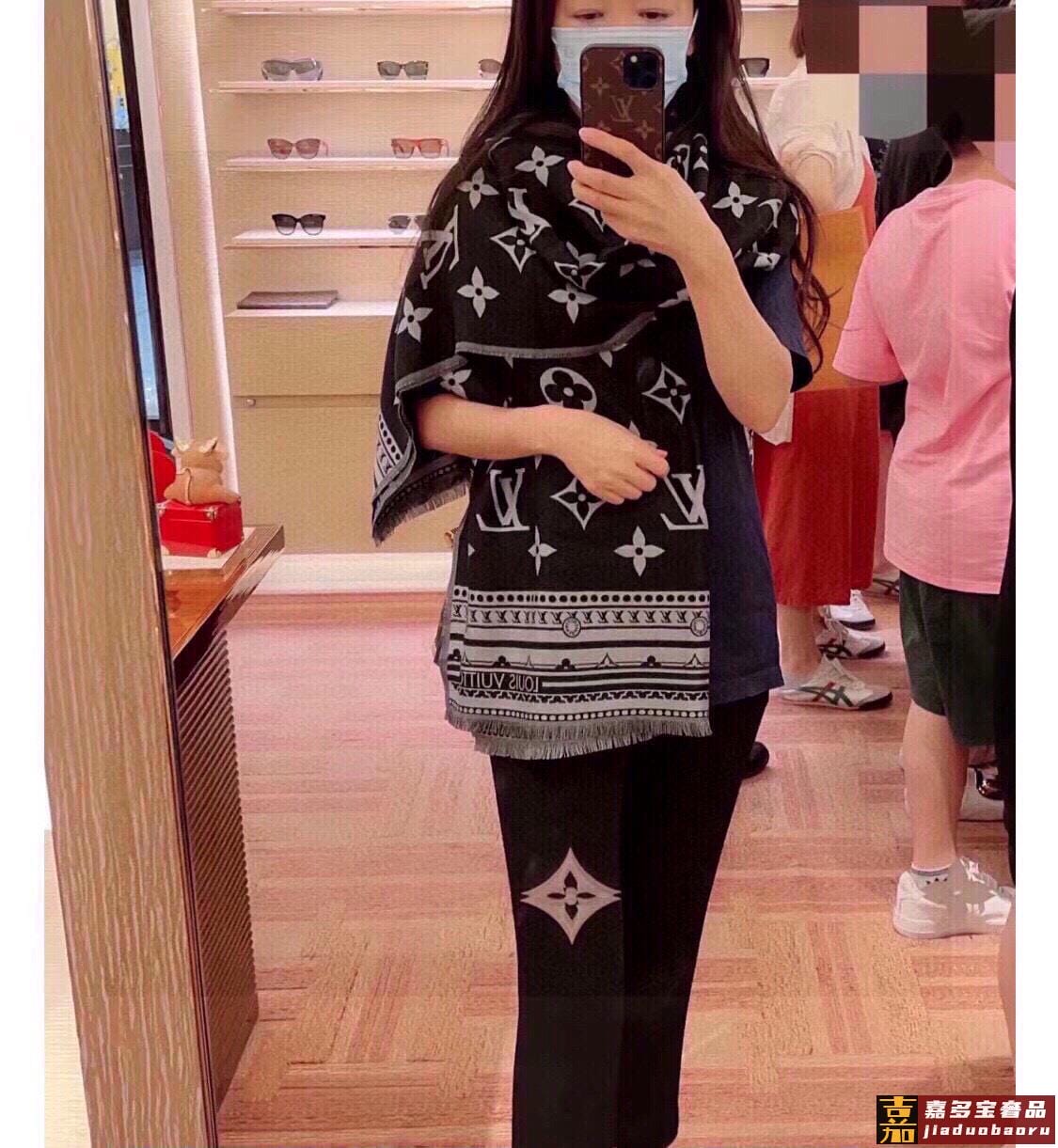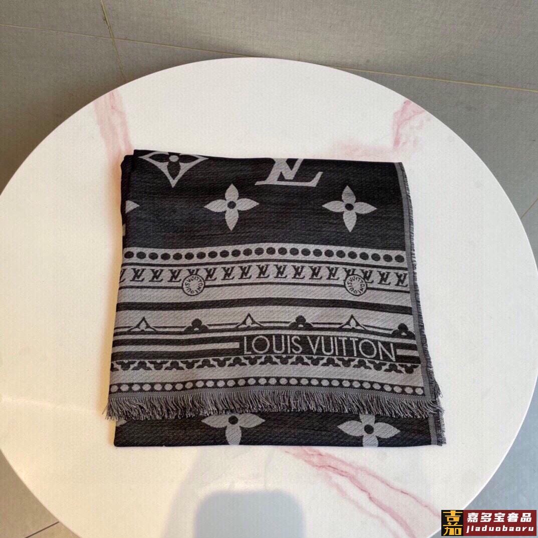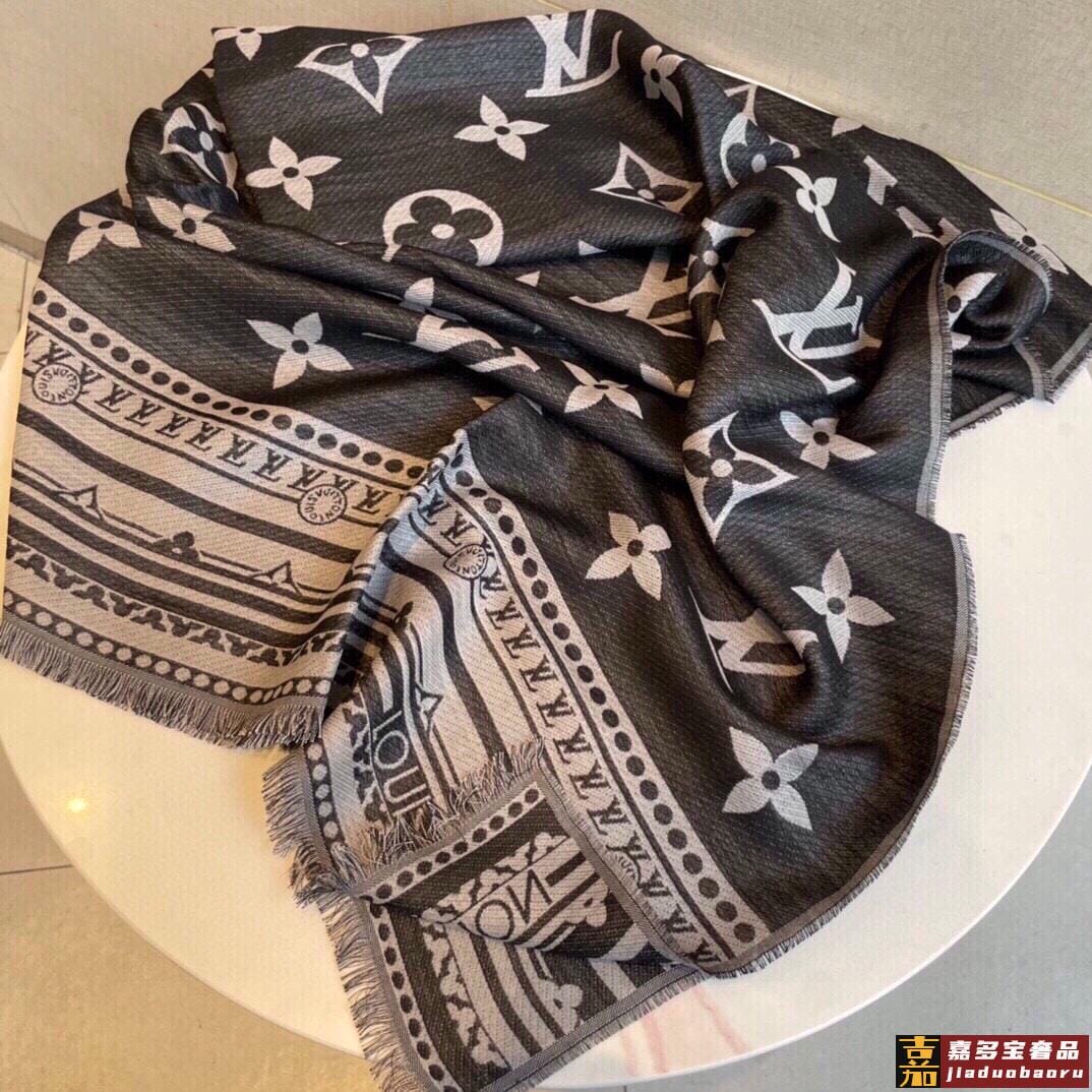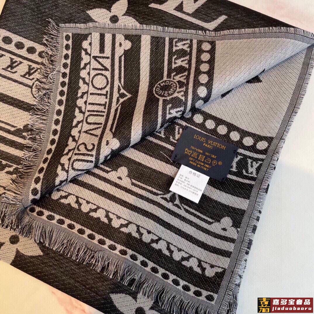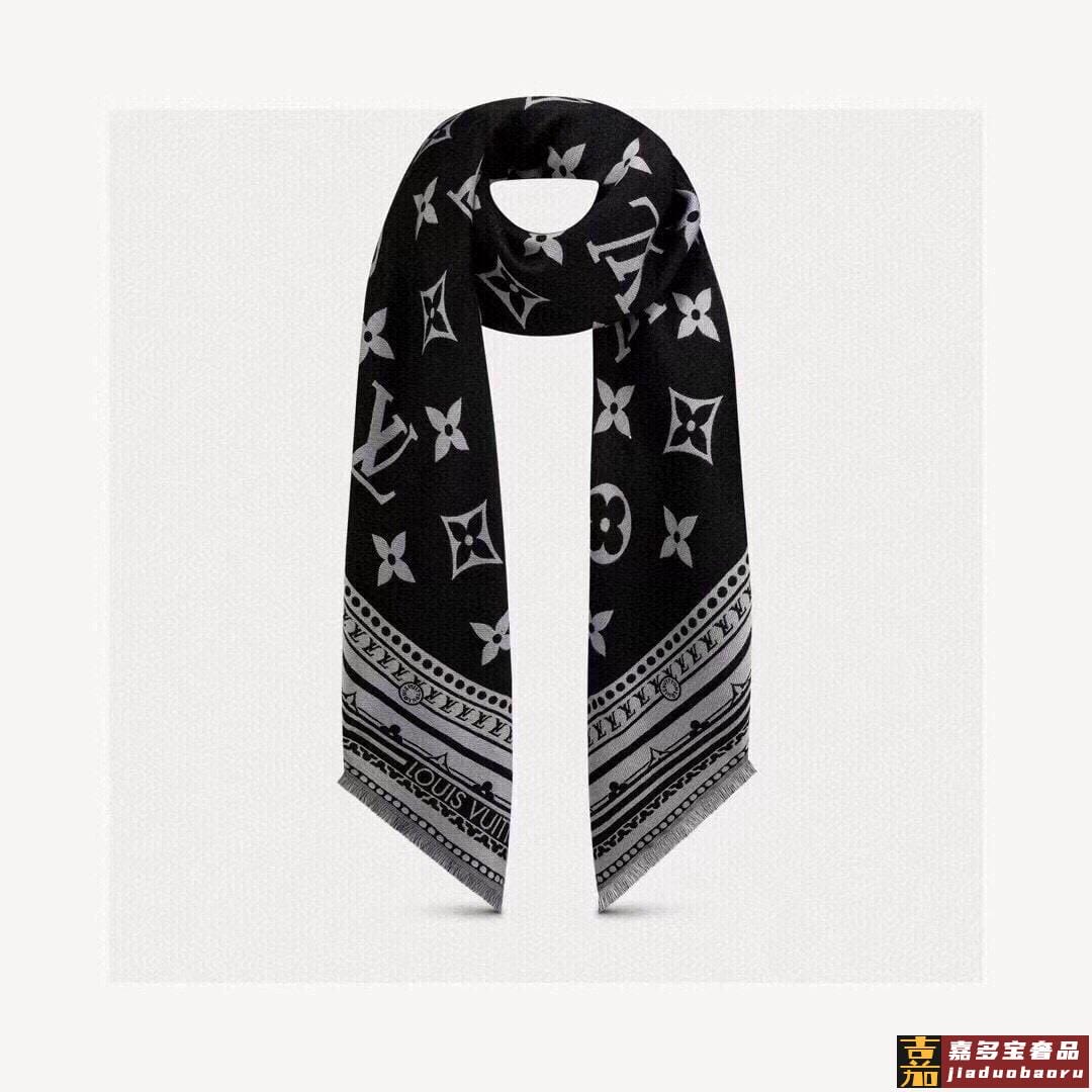 长围巾为元素拼接援引路易威登硬箱设计的繁复饰边图案经由提花工