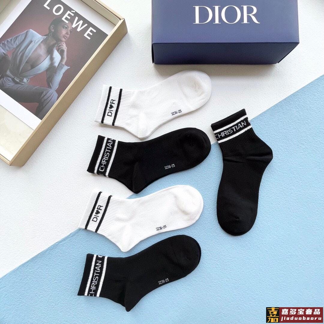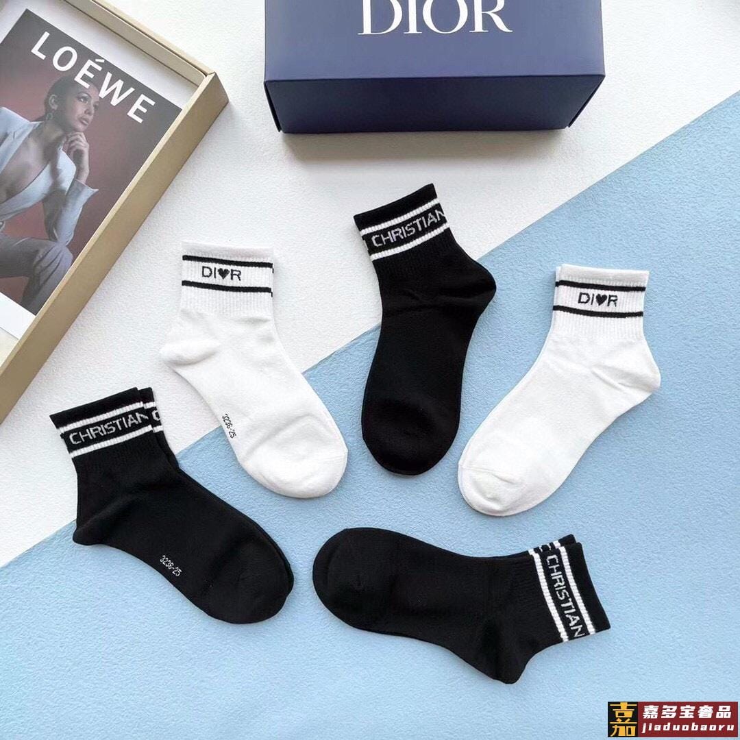 配包装一盒五双欧美大牌迪奥好看到爆炸欧美大牌中筒袜男女款潮人