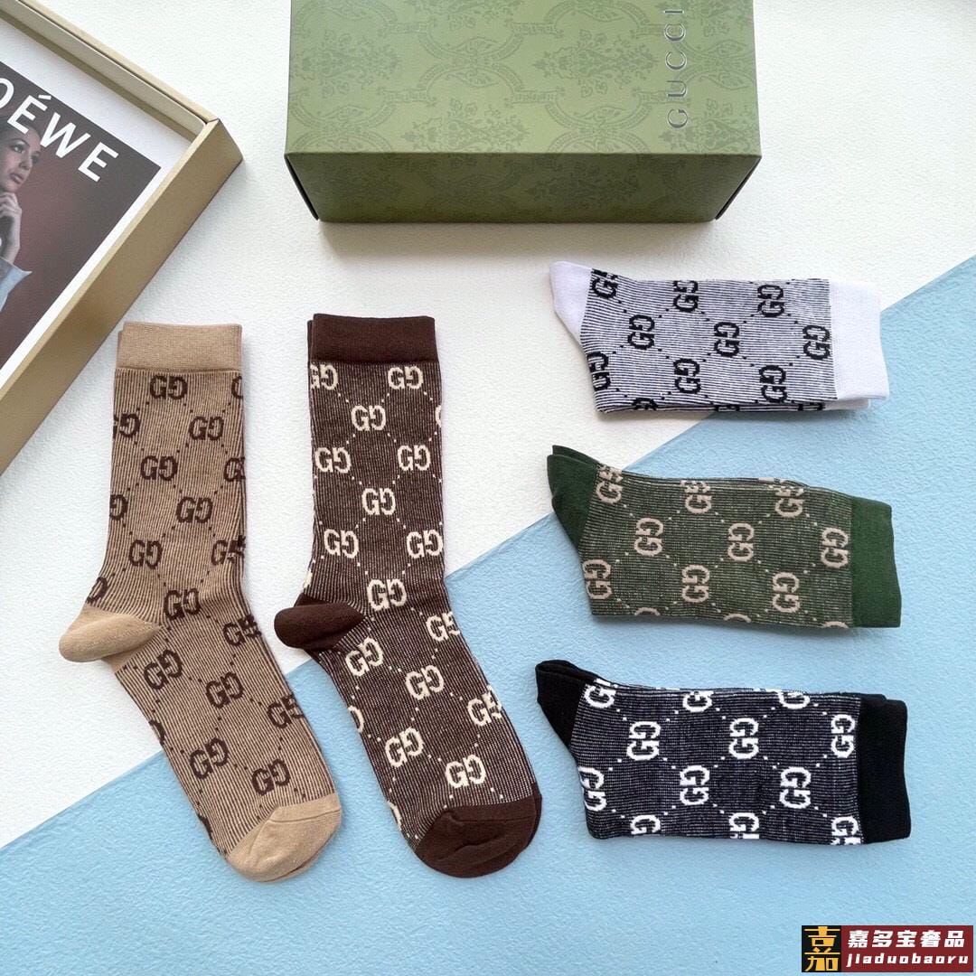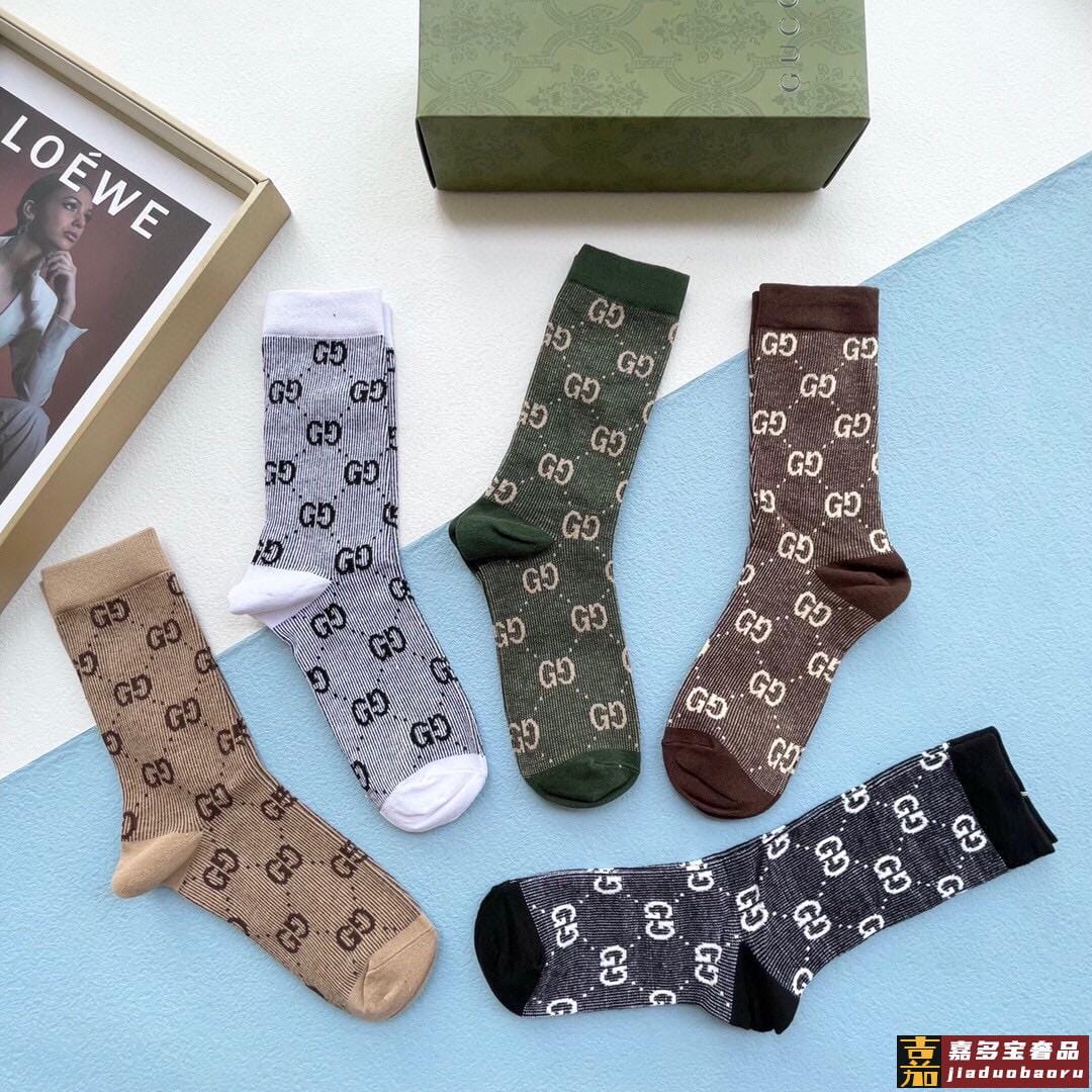 配送包装一盒五双古奇专柜新款男女款中筒袜子专柜同步上新超柔软