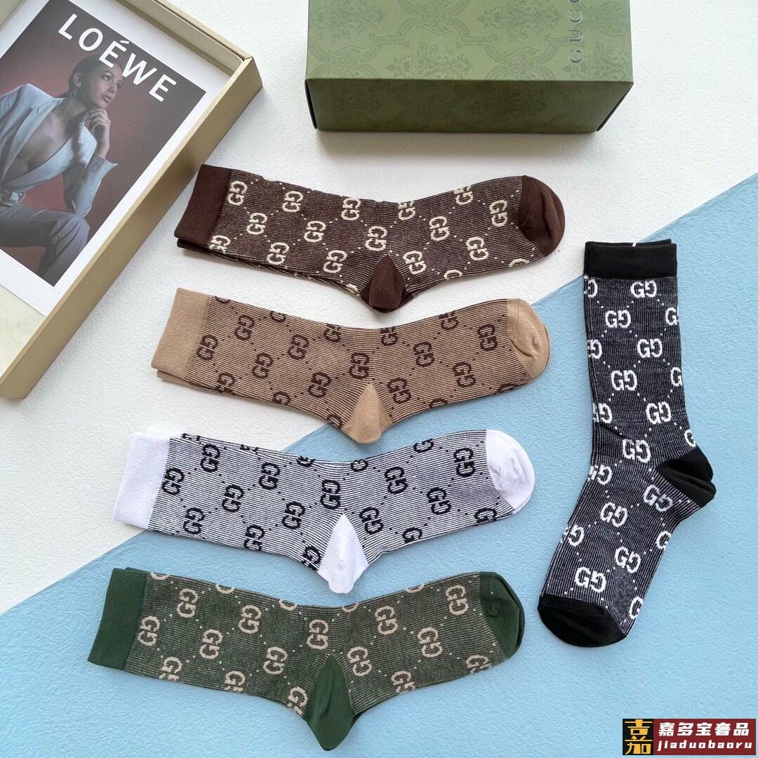 配包装一盒五双古奇网红爆款出货家新品专柜对版袜子纯棉材质织造